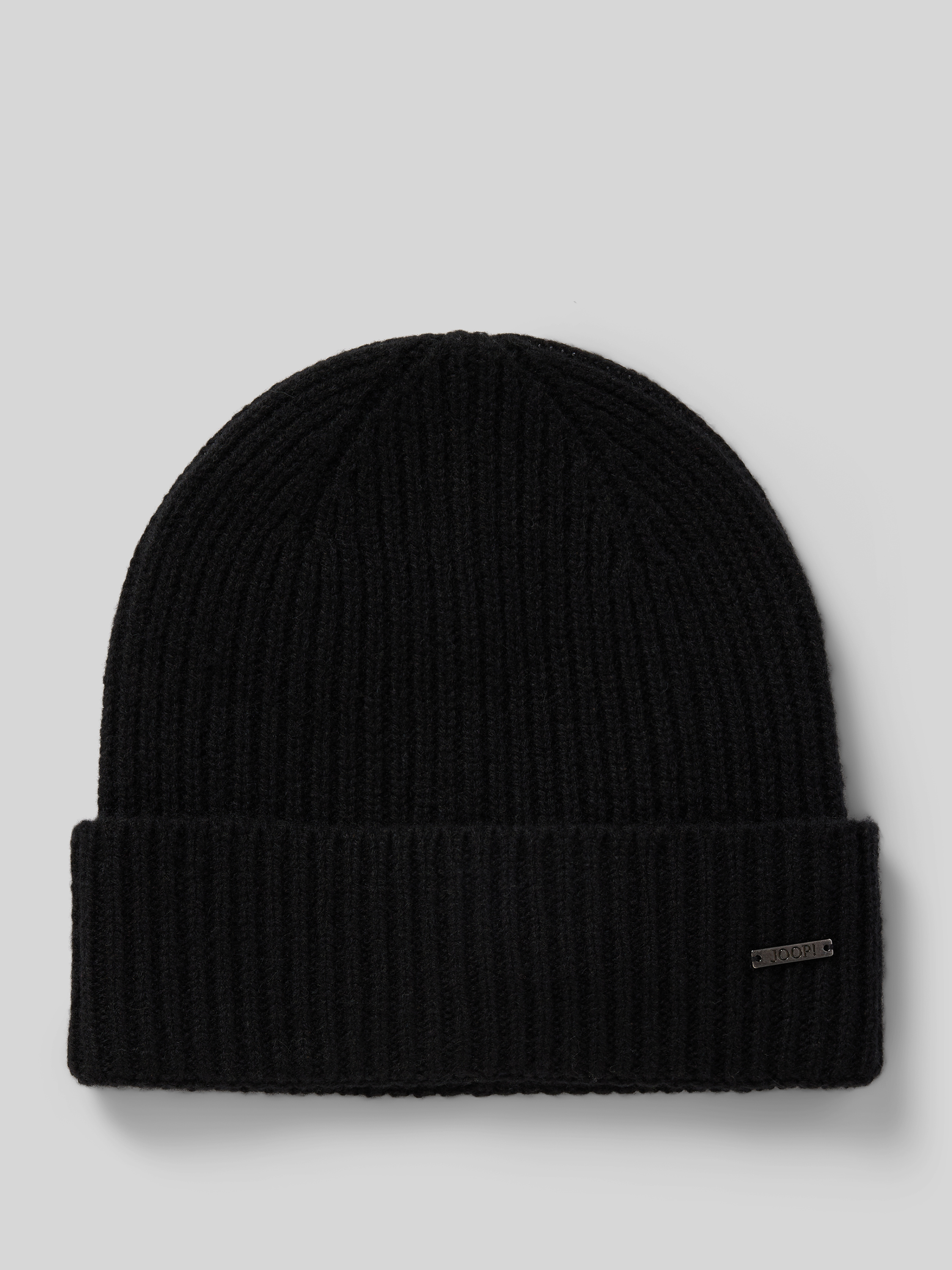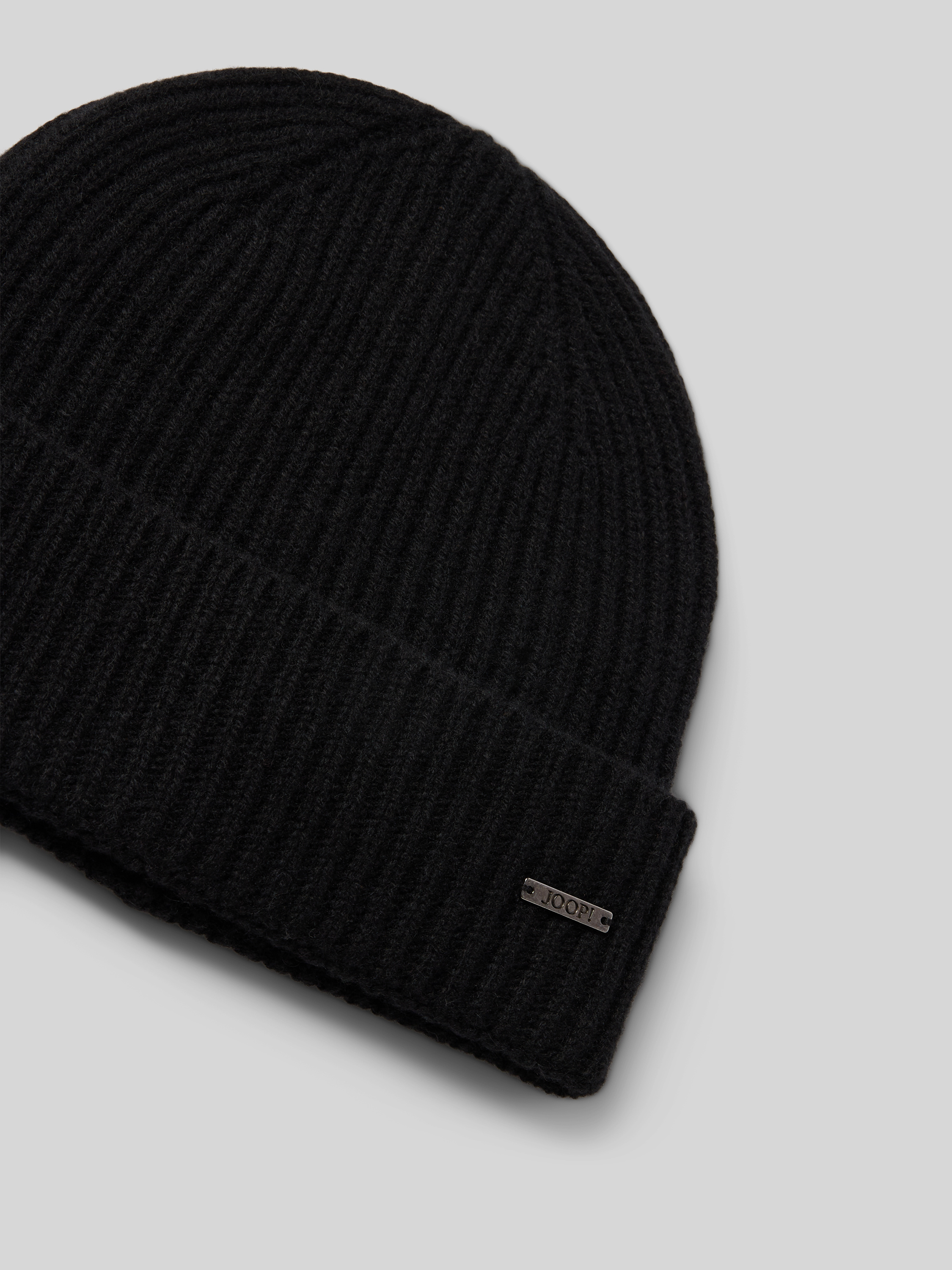 Czapka z dzianiny z kaszmiru z detalem z logo model ‘FENOL’ - czarny