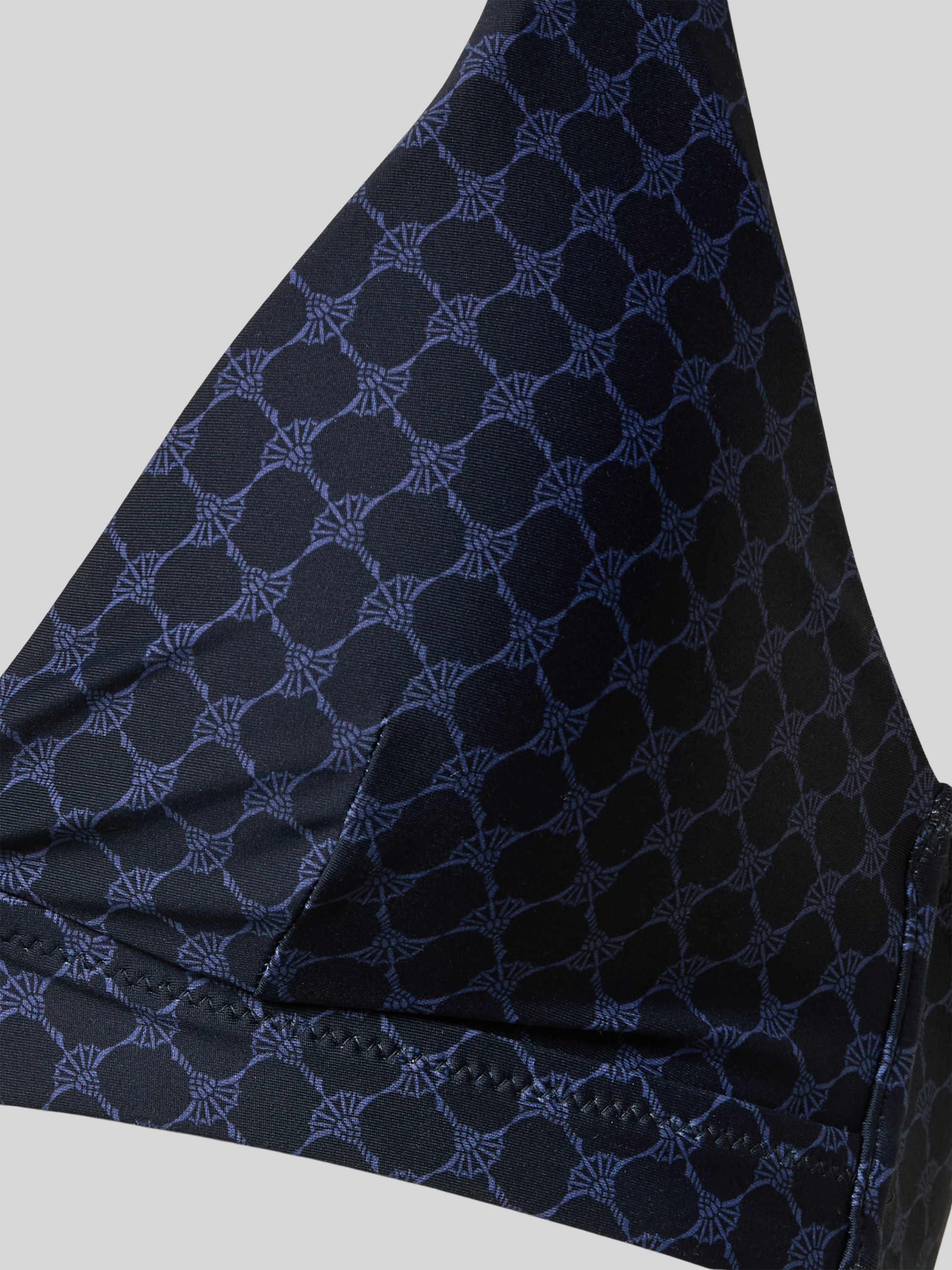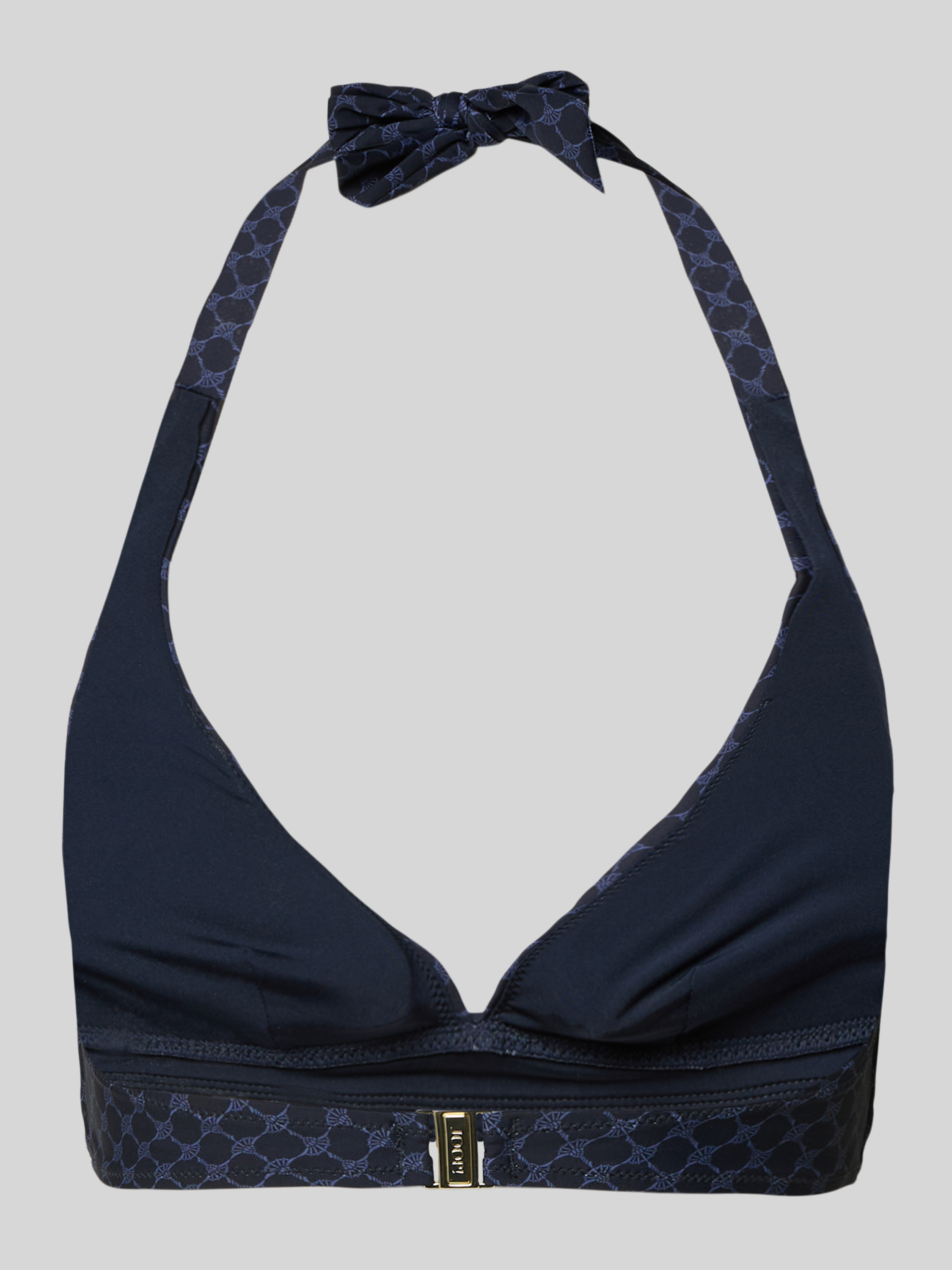 JOOP! CollectionGóra bikini damska JOOP! Collection;Mieszanka materiałów z dodatkiem streczu;Dopasowany krój;Wiązanie na szyi;Trójkątny kształt;Zapięcie na haftkę - ciemnoniebieski