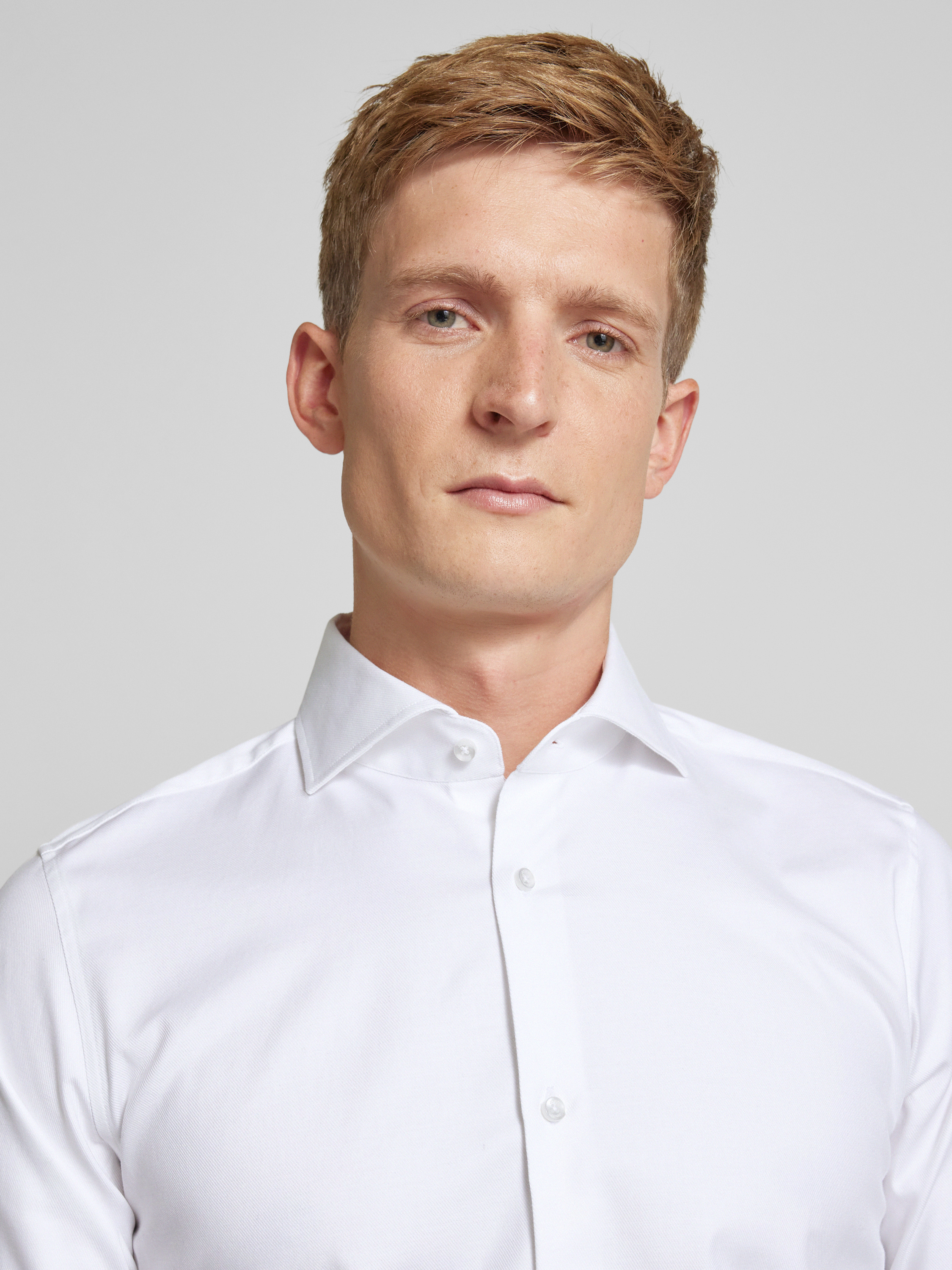 JOOP! CollectionKoszula biznesowa męska JOOP! Collection;Mieszanka bawełny z dodatkiem streczu;Krój slim fit;Model ‘Pares’;Kołnierzyk typu cutaway;Listwa guzikowa na całej długości;Sportowe mankiety;Długość tyłu w rozmiarze 40: 67 cm;Szerokość ramion w rozmiarze 40: 40 cm;Długość rękawa w rozmiarze 40: 64 cm - biały