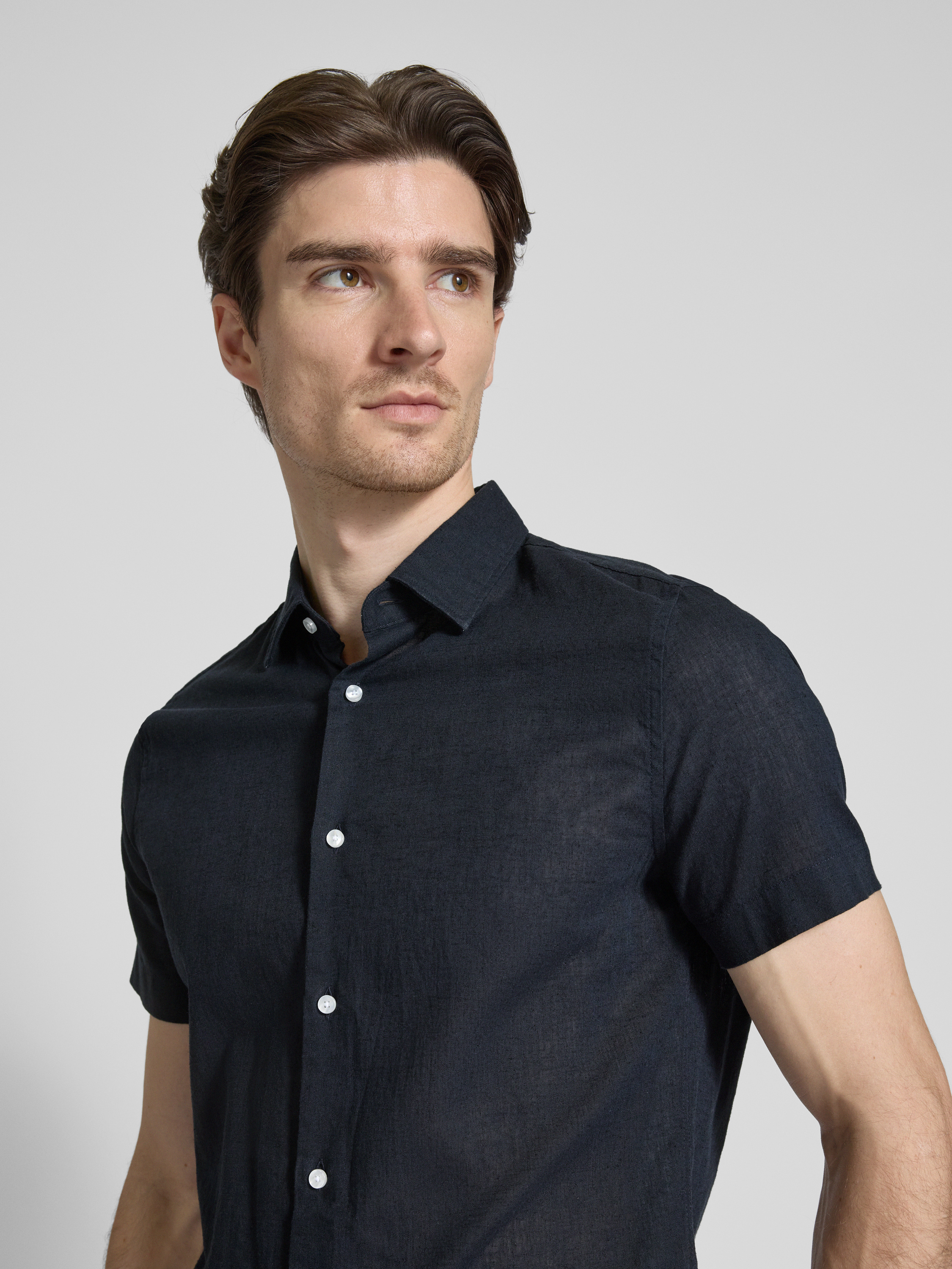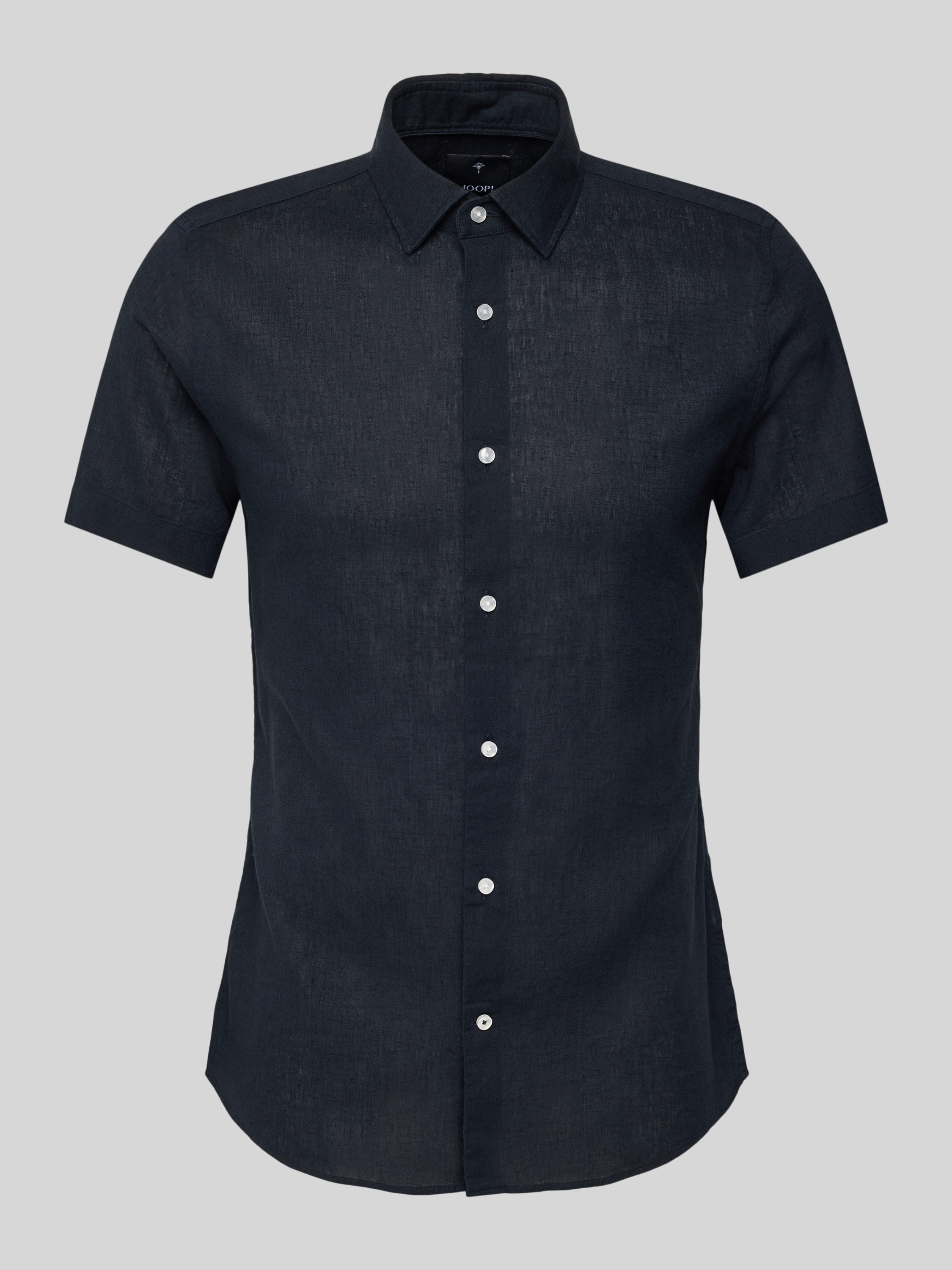 JOOP! CollectionKoszula casualowa męska JOOP! Collection;Mieszanka bawełny i lnu;Krój slim fit;Model ‘Pit’;Kołnierzyk typu kent;Listwa guzikowa;Długość tyłu w rozmiarze 40: 67 cm;Szerokość ramion w rozmiarze 40: 41 cm;Długość rękawa w rozmiarze 40: 22 cm - ciemnoniebieski