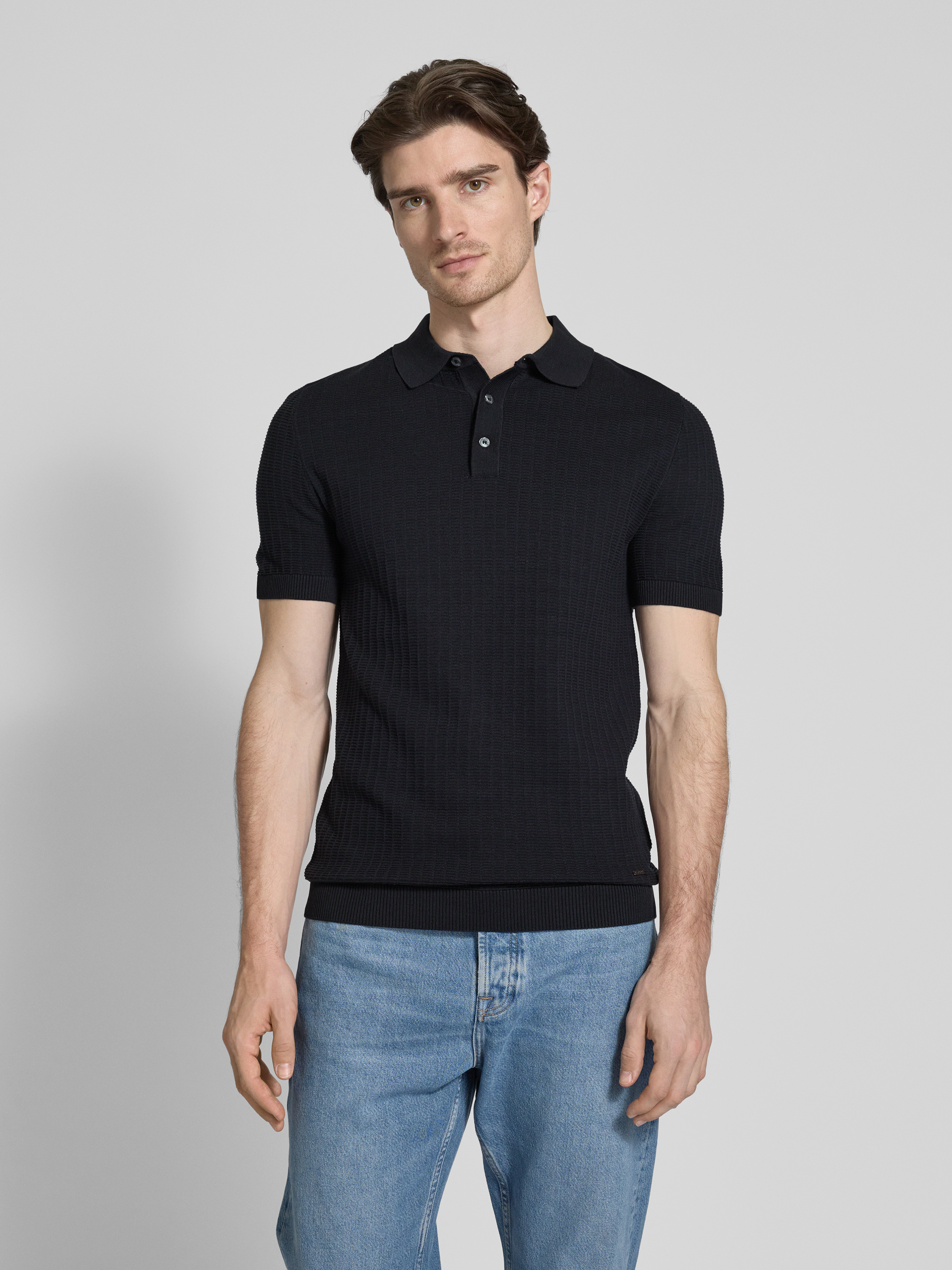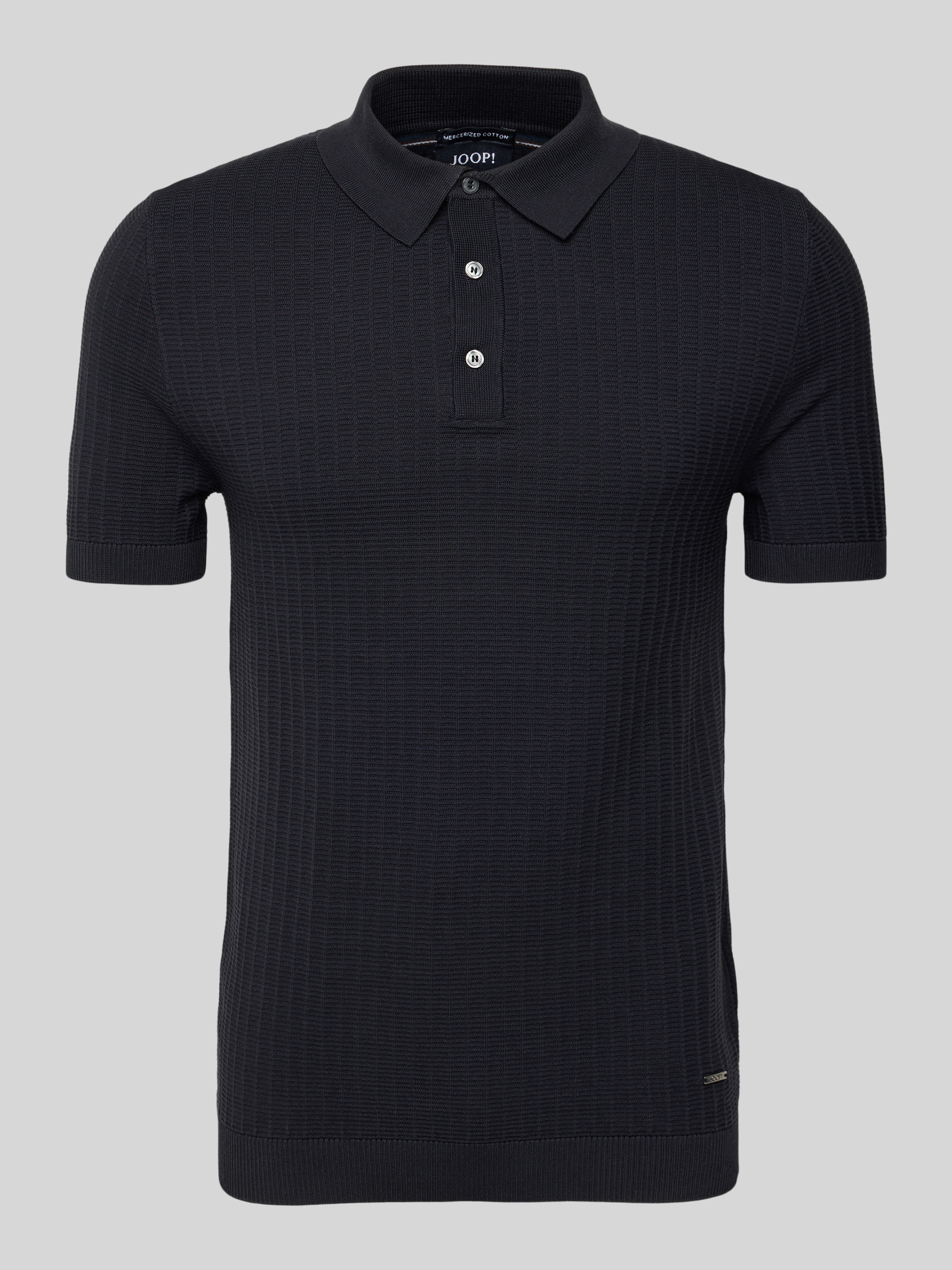 JOOP! CollectionKoszulka polo męska JOOP! Collection;Czysta bawełna;Krój regular fit;Model ‘Mauron’;Kołnierzyk polo z krótką listwą guzikową;Fakturowany wzór;Aplikacja z metką;Prążkowane wykończenia;Długość tyłu w rozmiarze M: 71 cm - granatowy