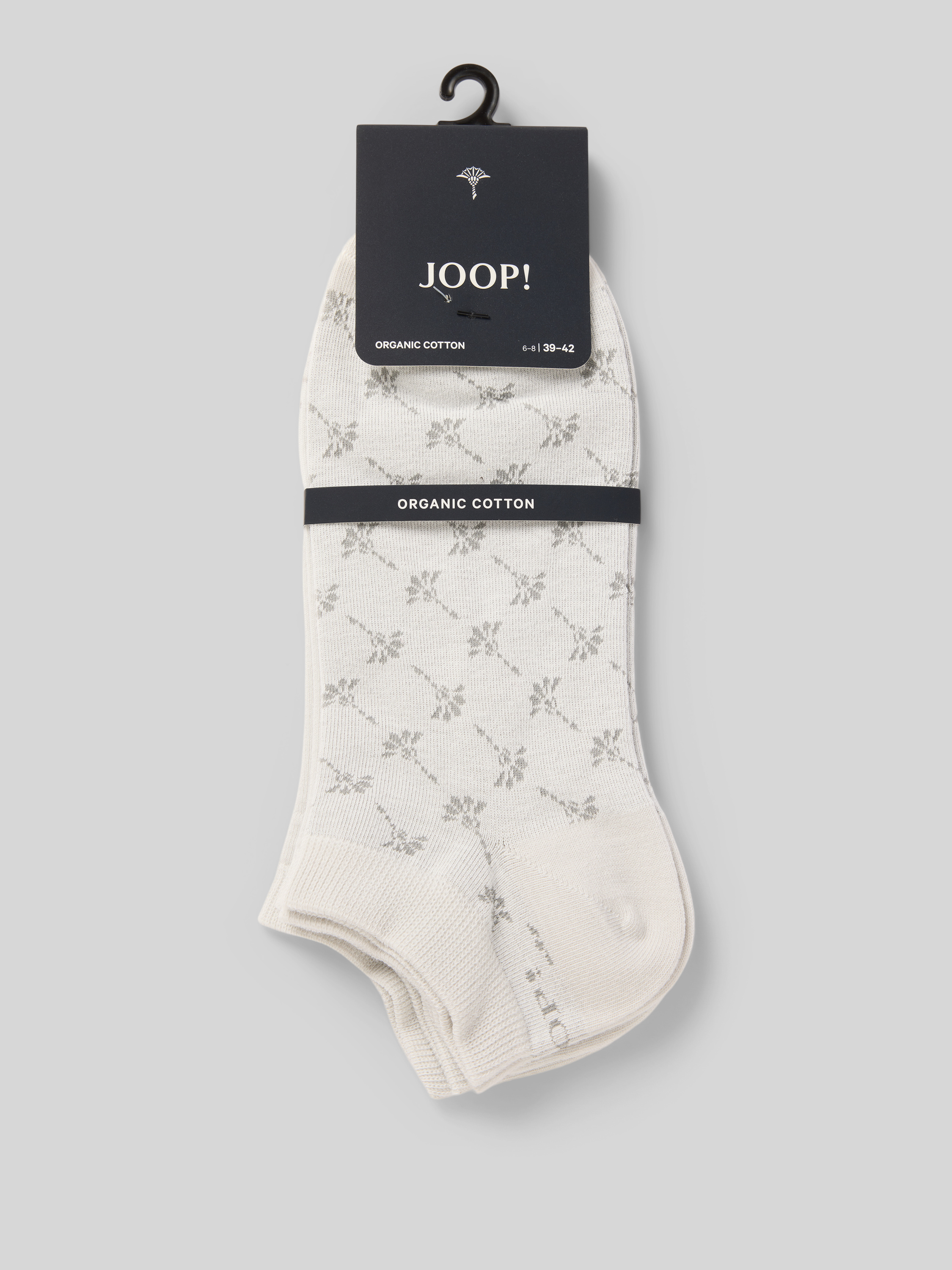 JOOP! CollectionKrótkie skarpety damskie JOOP! Collection;Mieszanka bawełny z dodatkiem streczu;Krój dopasowany do ciała;Detal z logo;Elastyczny pas - jasnoszary