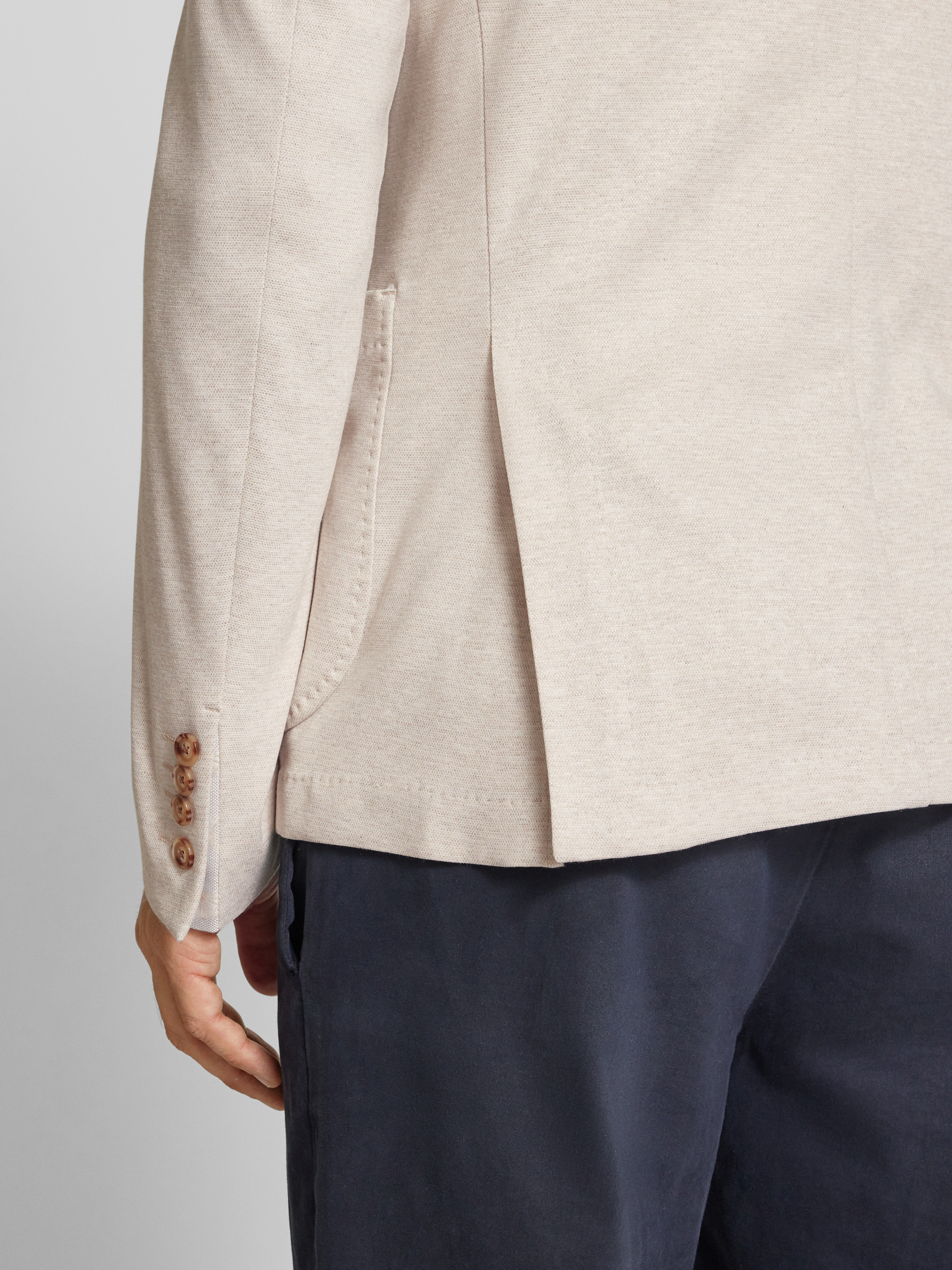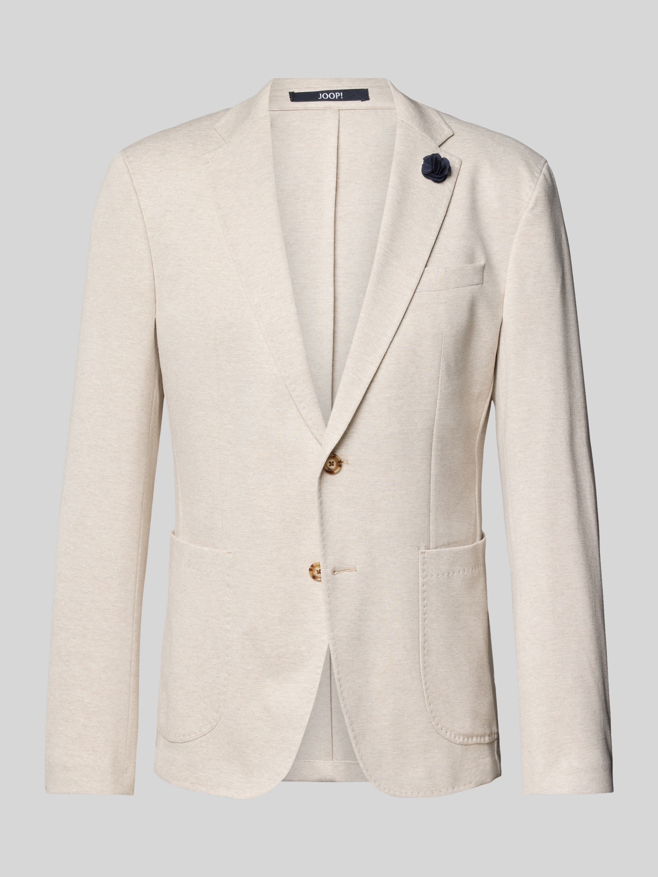 JOOP! CollectionMarynarka na 2 guziki męska JOOP! Collection;Mieszanka wiskozy ze streczem;Krój regular fit;Model ‘Hoverest’;Kołnierz z połami;Kieszeń na piersi;Wpuszczane kieszenie;Długość tyłu w rozmiarze 50: 72 cm;Szerokość ramion w rozmiarze 50: 45 cm;Długość rękawa w rozmiarze 50: 67 cm - beżowy