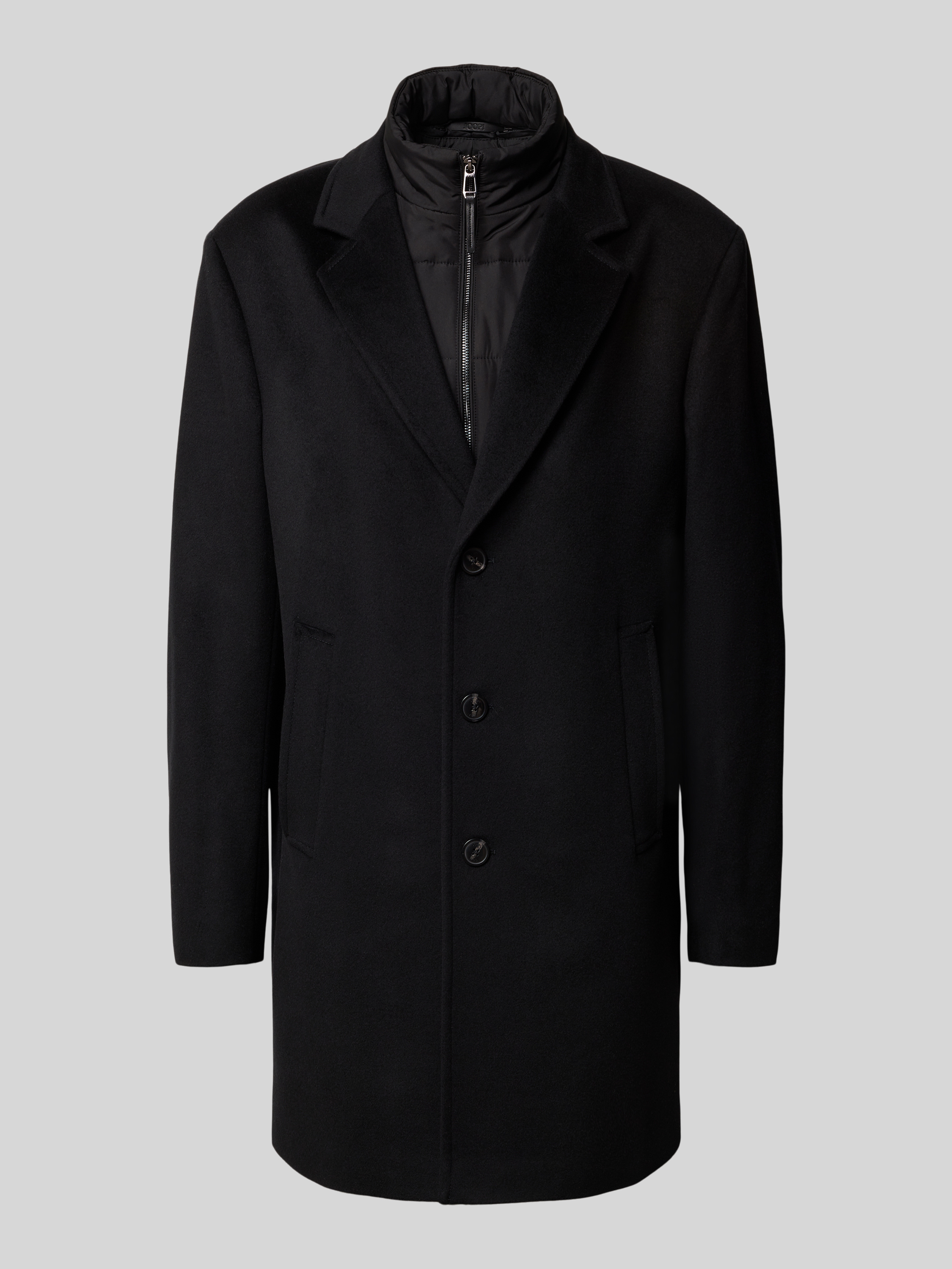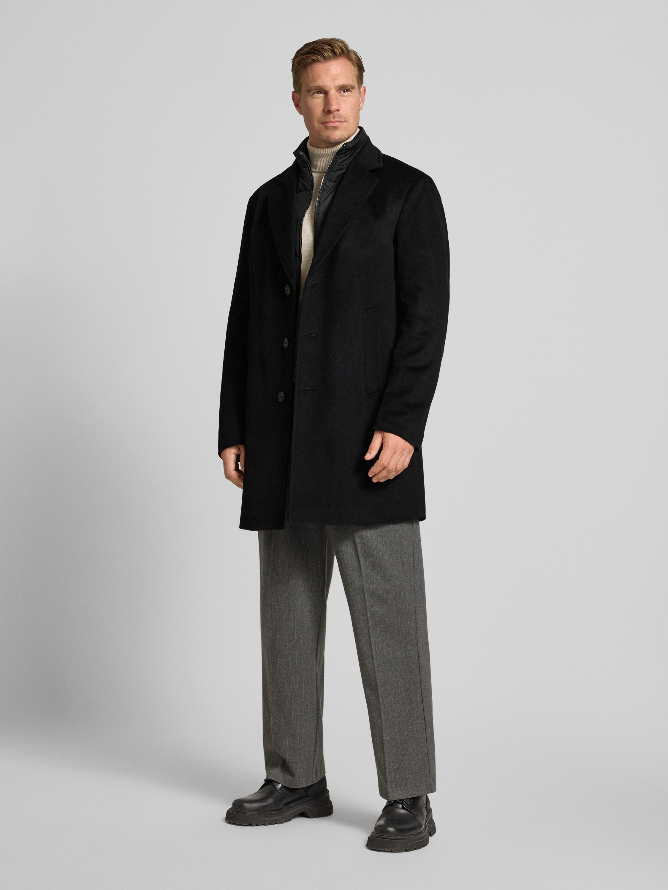 Płaszcz wełniany z efektem dwóch warstw model ‘Morris’ - czarny