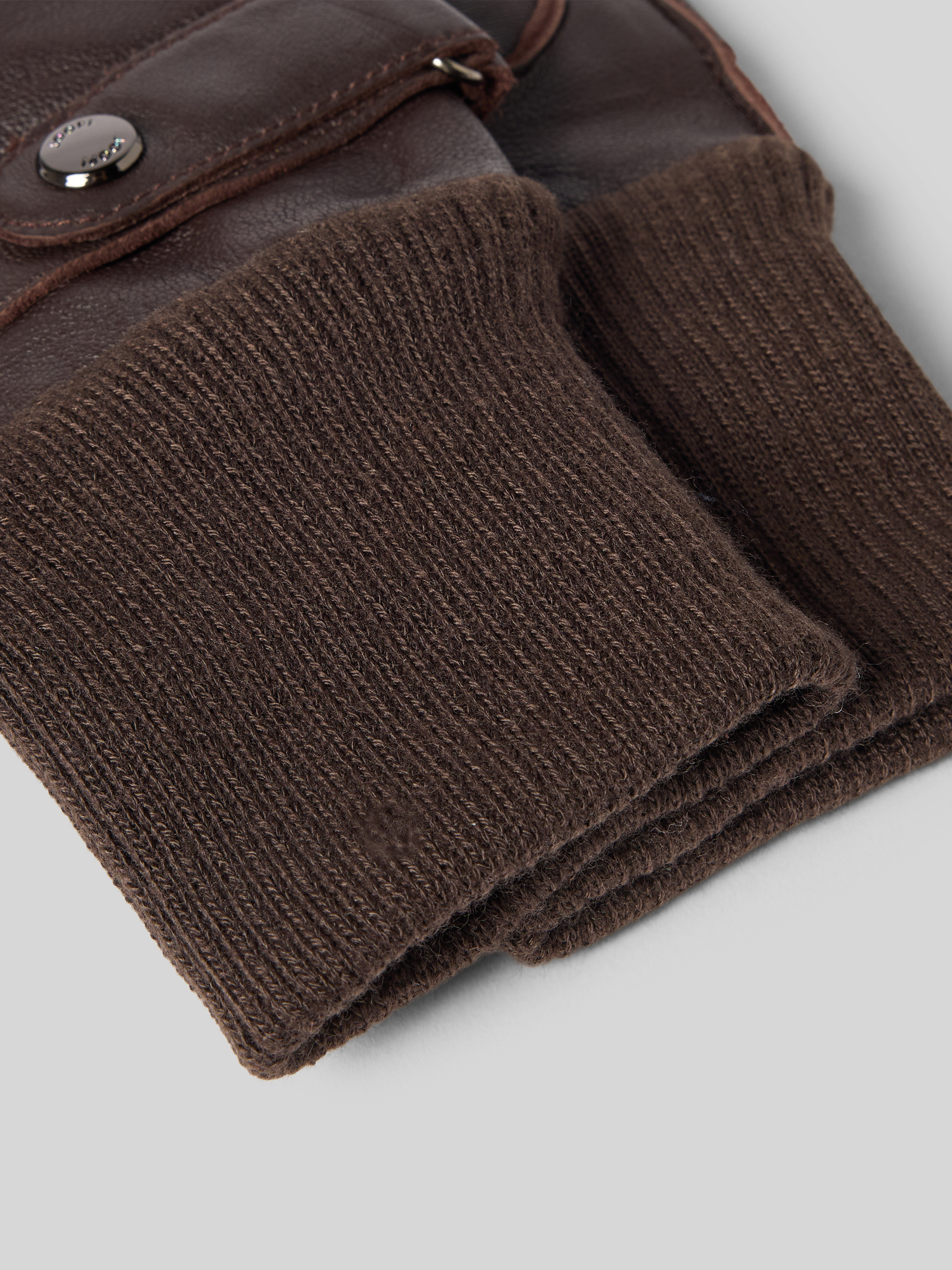 Rękawiczki o kroju regular fit z naturalnej owczej skóry - ciemnobrązowy