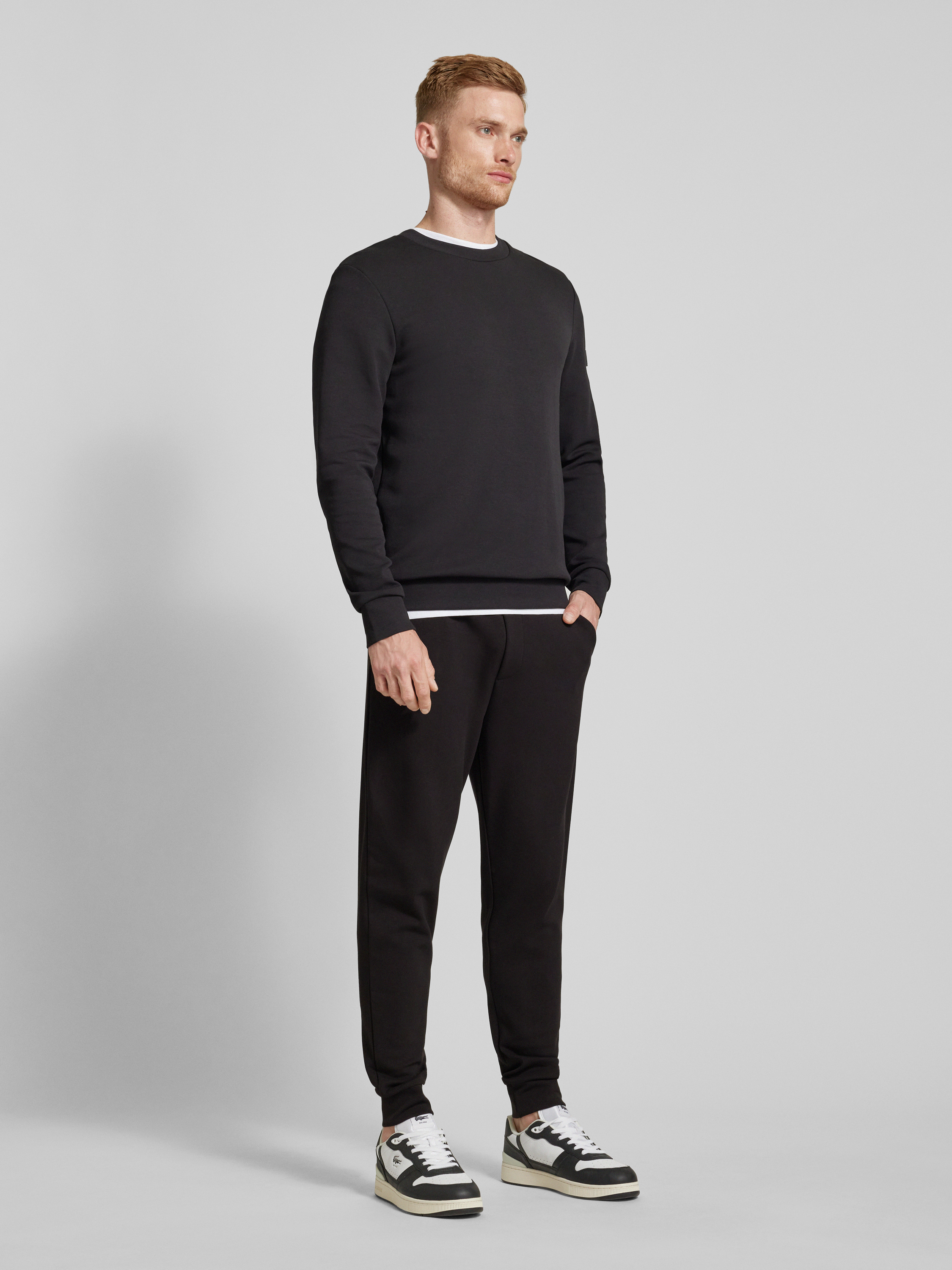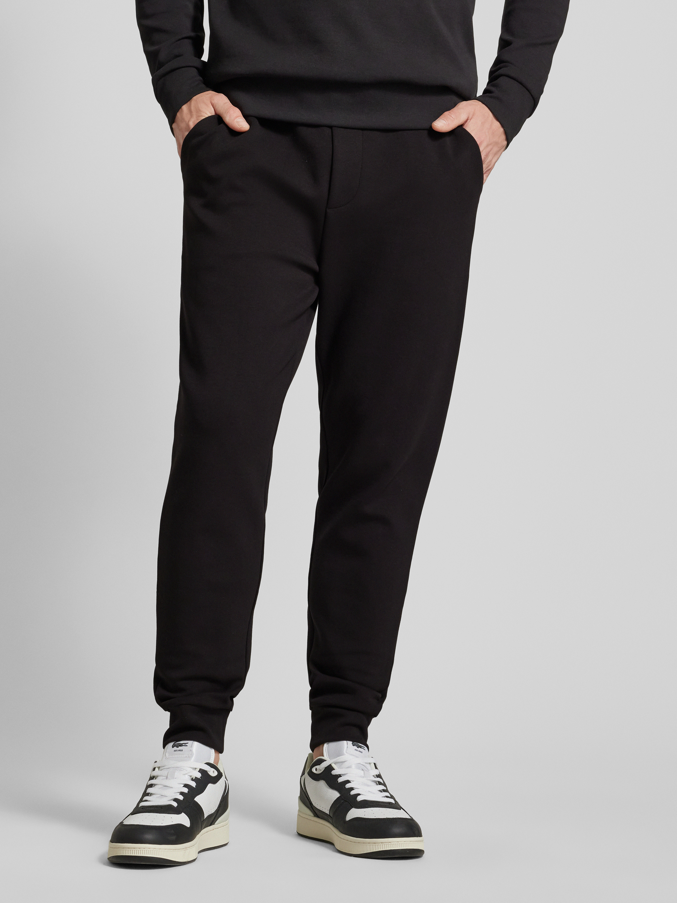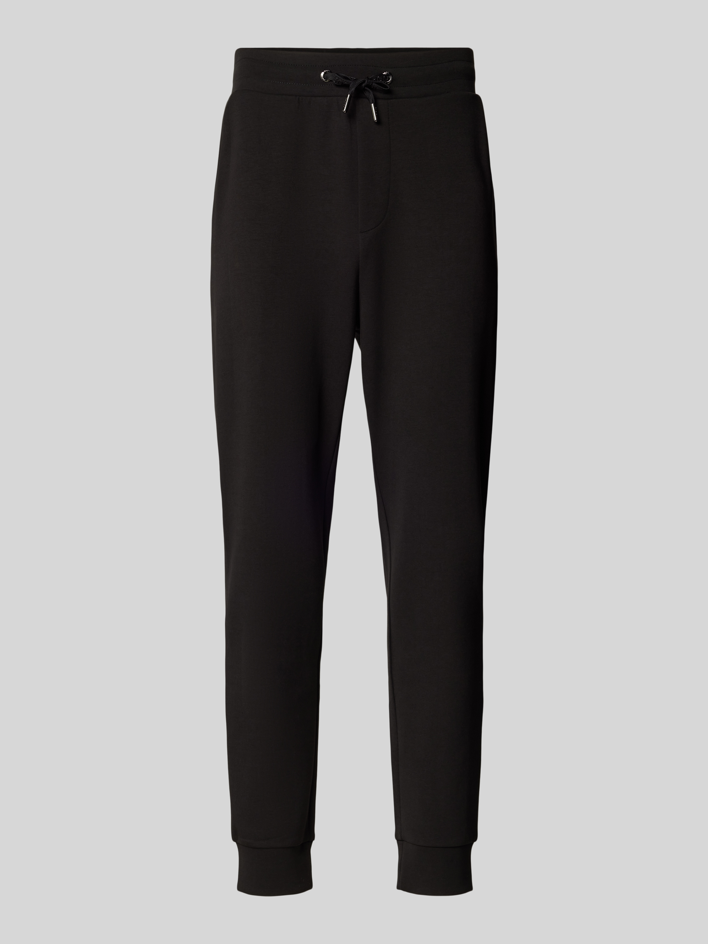 JOOP! CollectionSpodnie dresowe męskie JOOP! Collection;Mieszanka bawełny z dodatkiem streczu;Krój loose fit;Model ‘Stelios’;Elastyczny pas z tunelem;Zaznaczony rozporek;Długość wewnętrzna nogawki w rozmiarze M: 41 cm - czarny