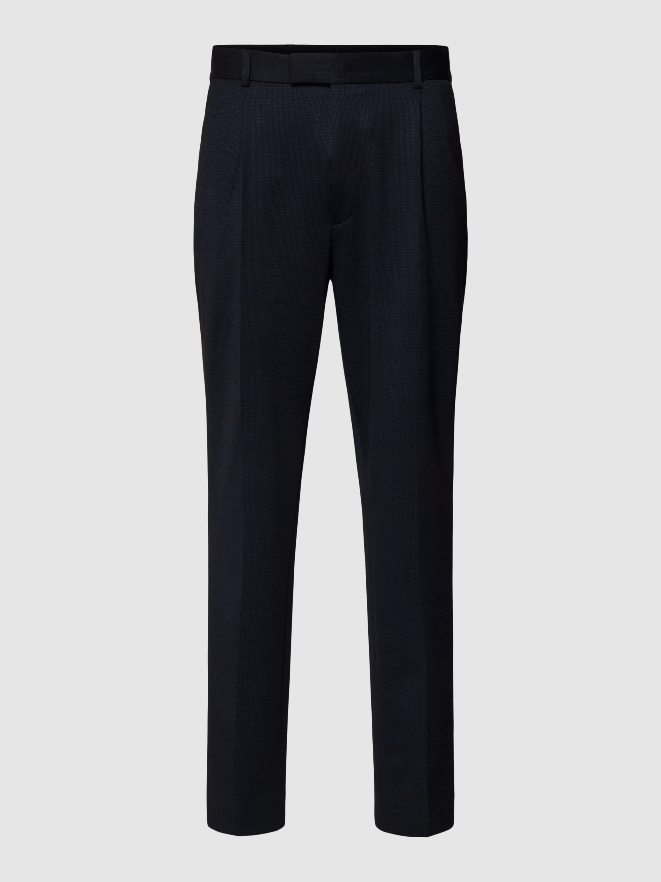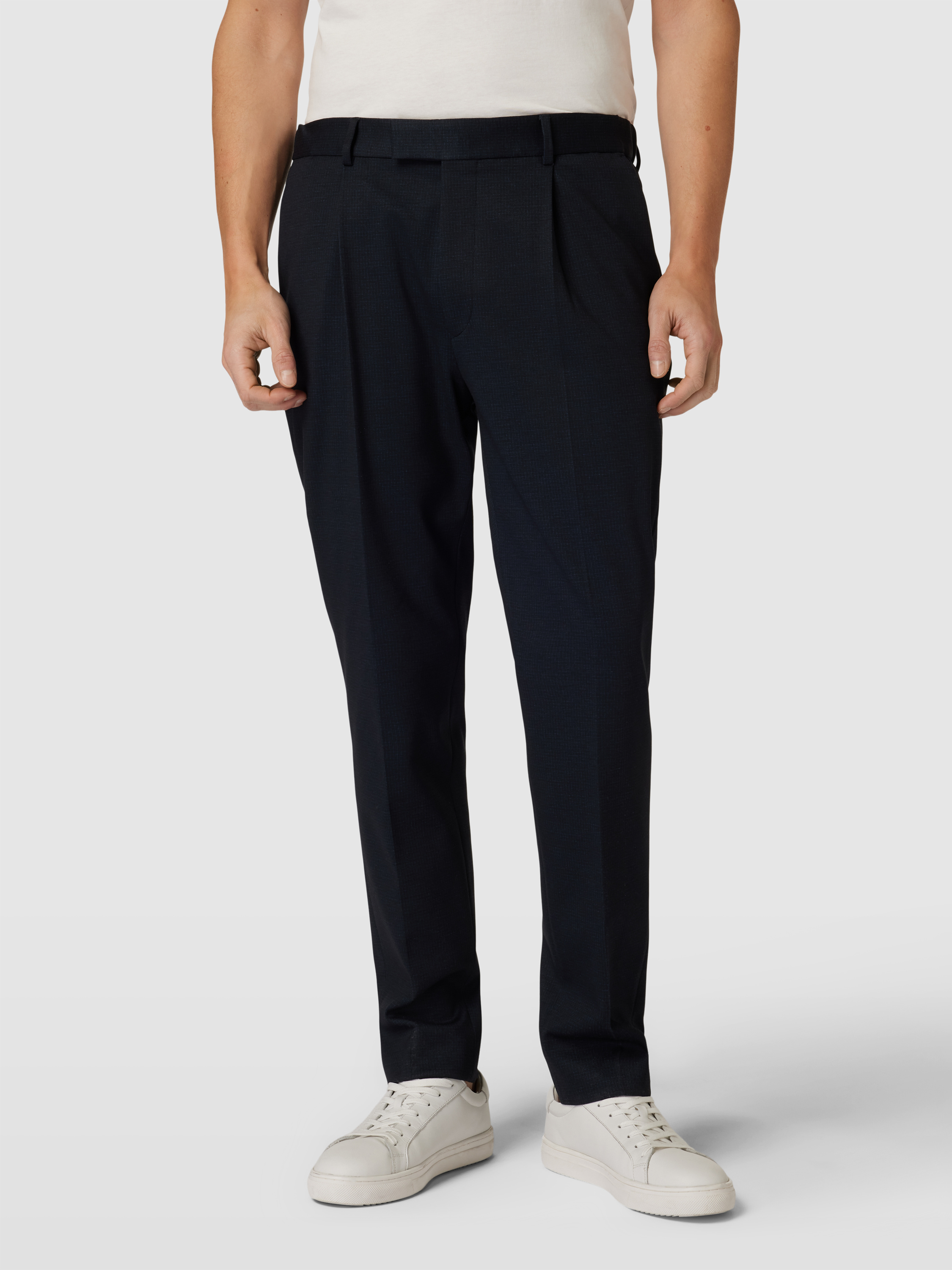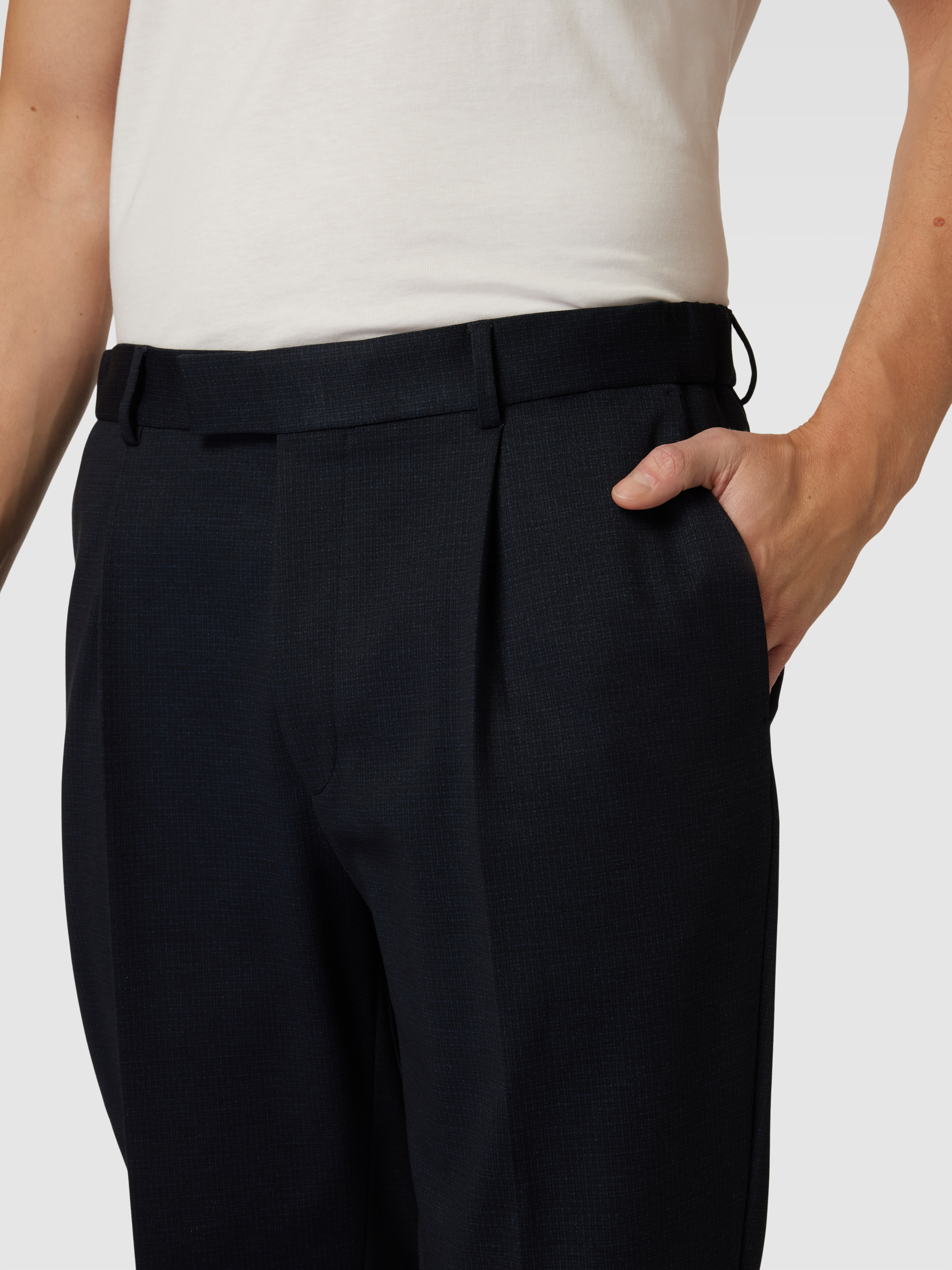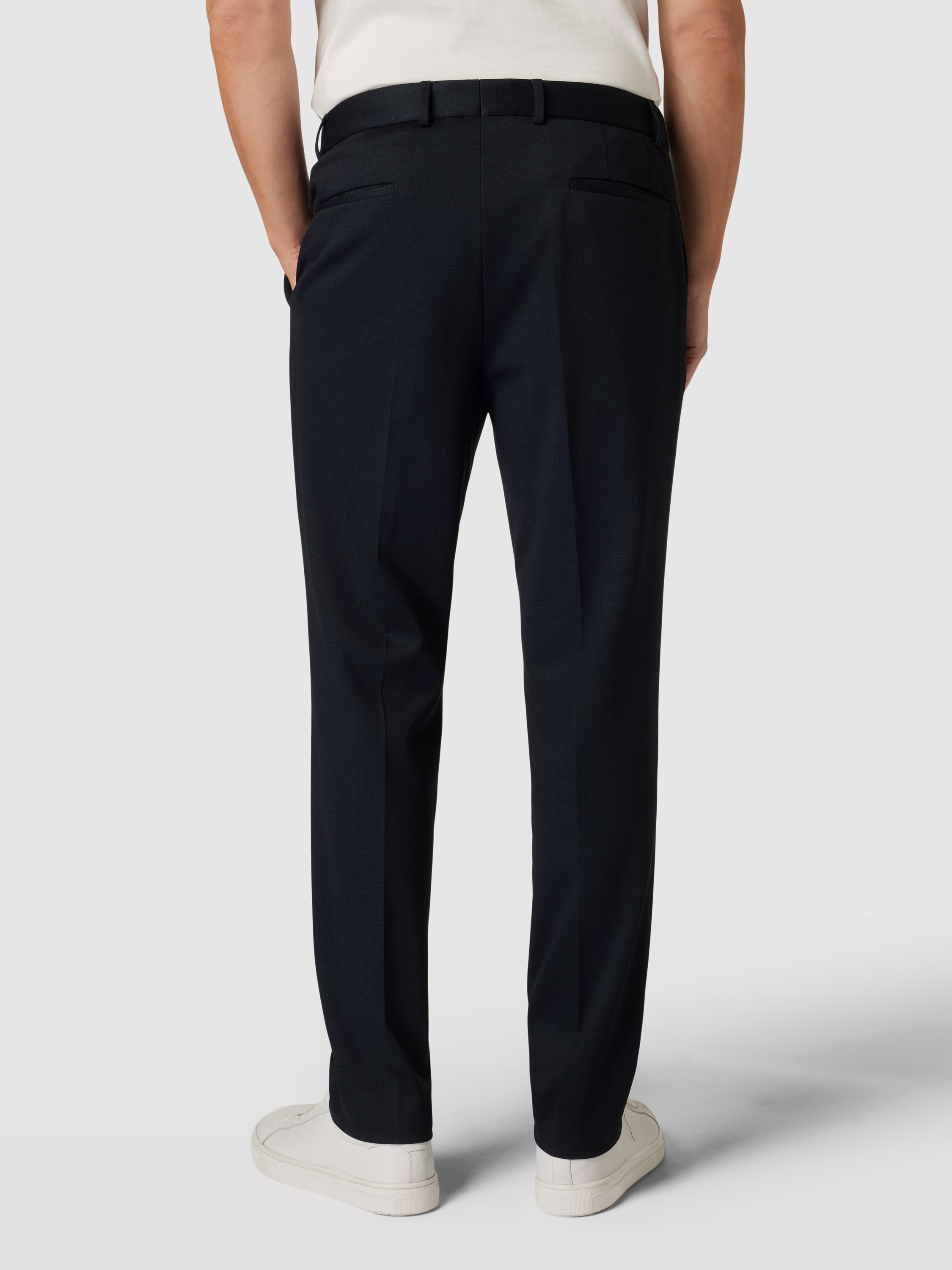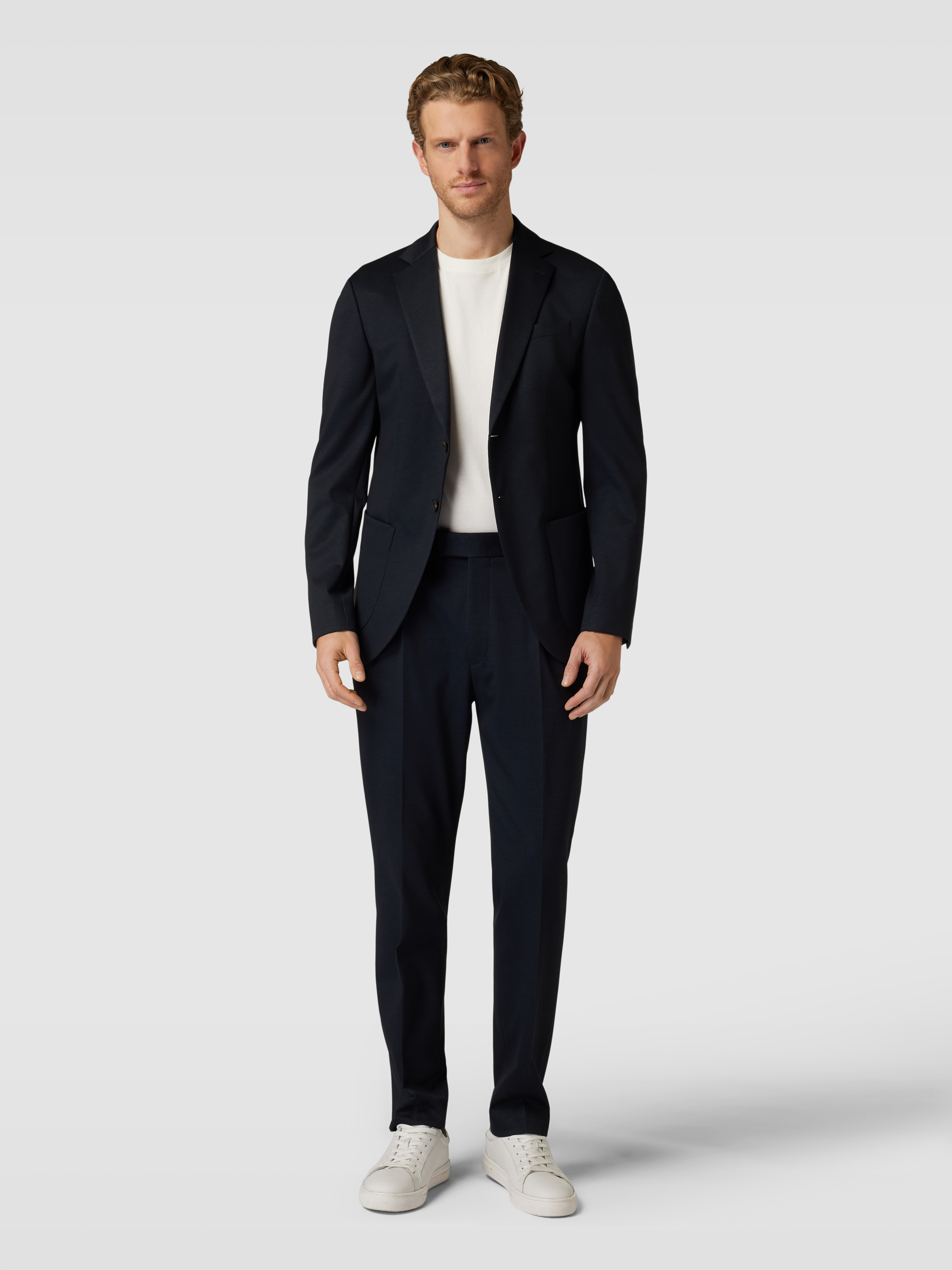 JOOP! CollectionSpodnie materiałowe męskie JOOP! Collection;Mieszanka materiałów z dodatkiem wiskozy;Prosty krój;Model ‘Bird’;Jednolity kolor;Fakturowany wzór;Kanty;Szerokość w pasie w rozmiarze 50: 46 cm;Długość wewnętrzna nogawki w rozmiarze 50: 77 cm - granatowy