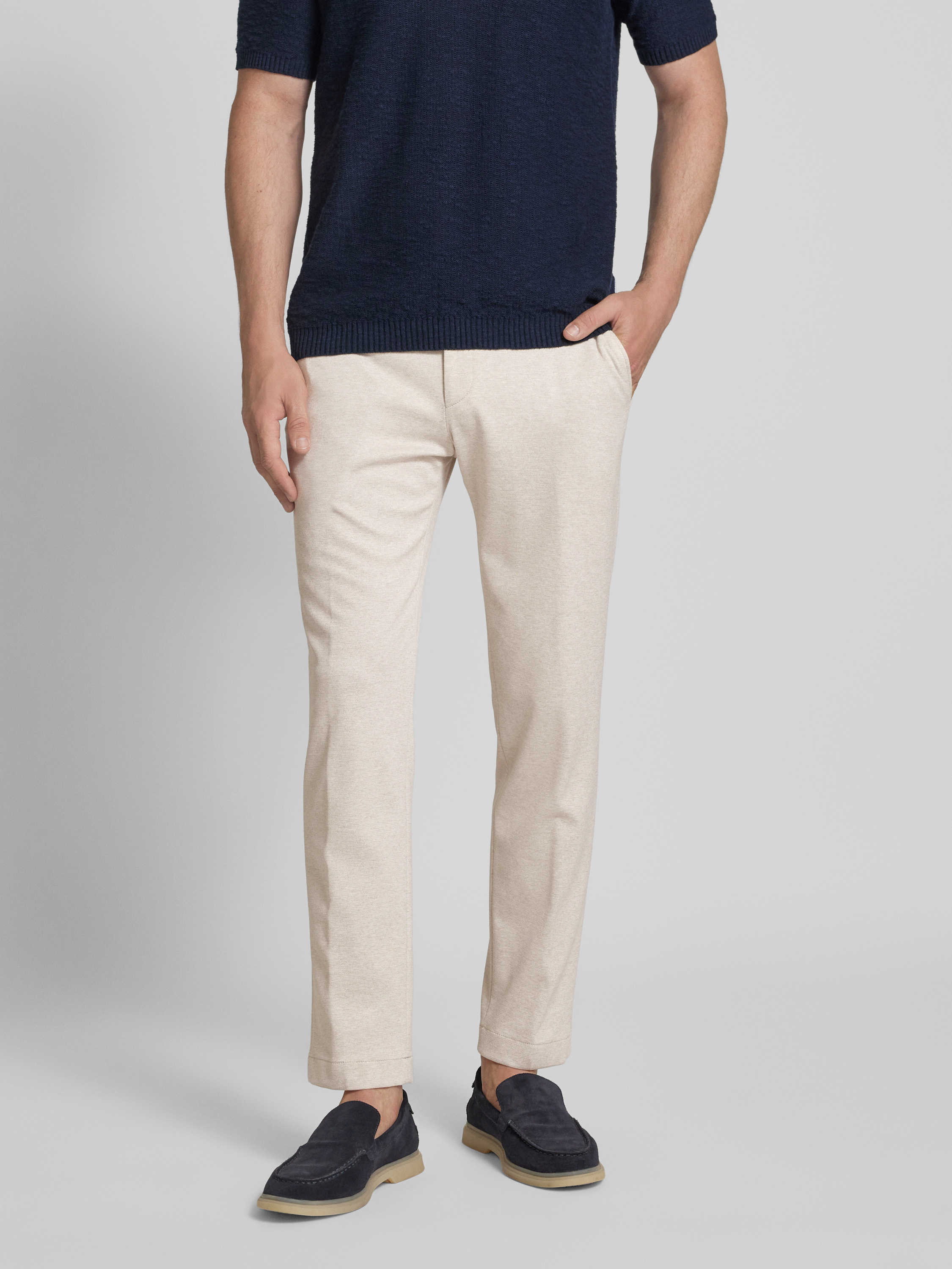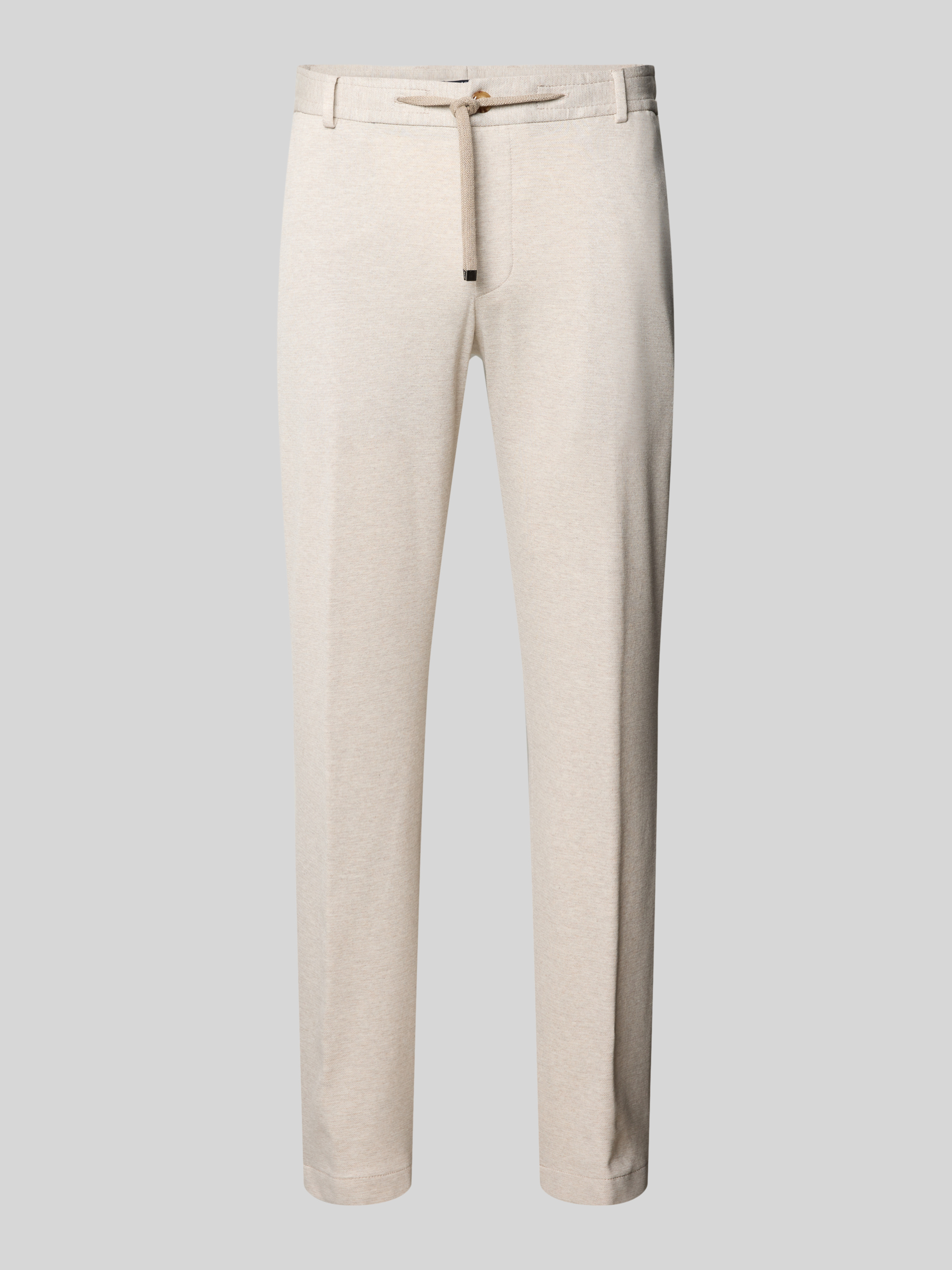 JOOP! CollectionSpodnie męskie JOOP! Collection;Mieszanka wiskozy ze streczem;Krój slim fit;Model ‘Sake’;Elastyczny pas;Tunel;Szerokość w pasie w rozmiarze 50: 43 cm;Długość wewnętrzna nogawki w rozmiarze 50: 80 cm - beżowy