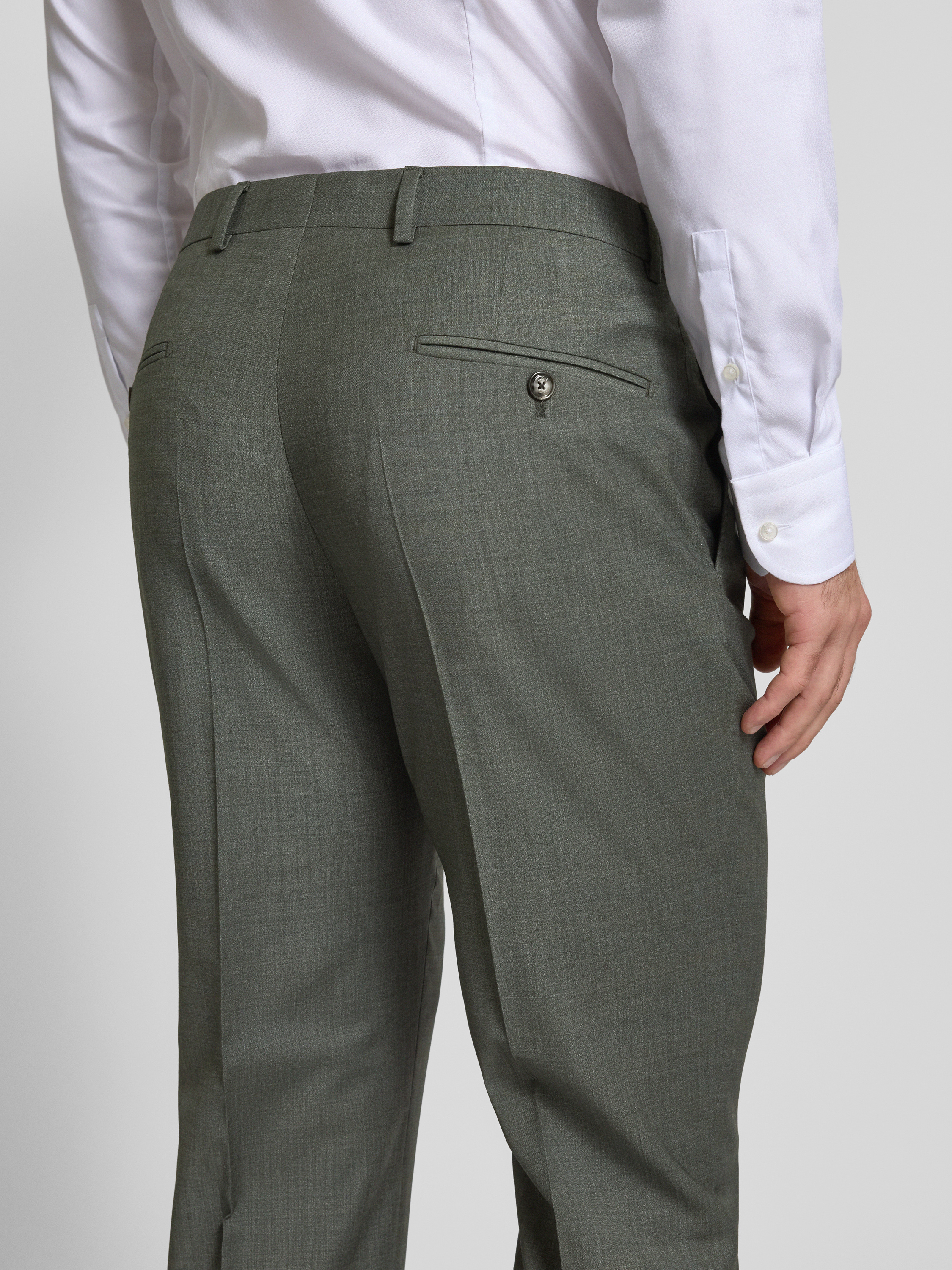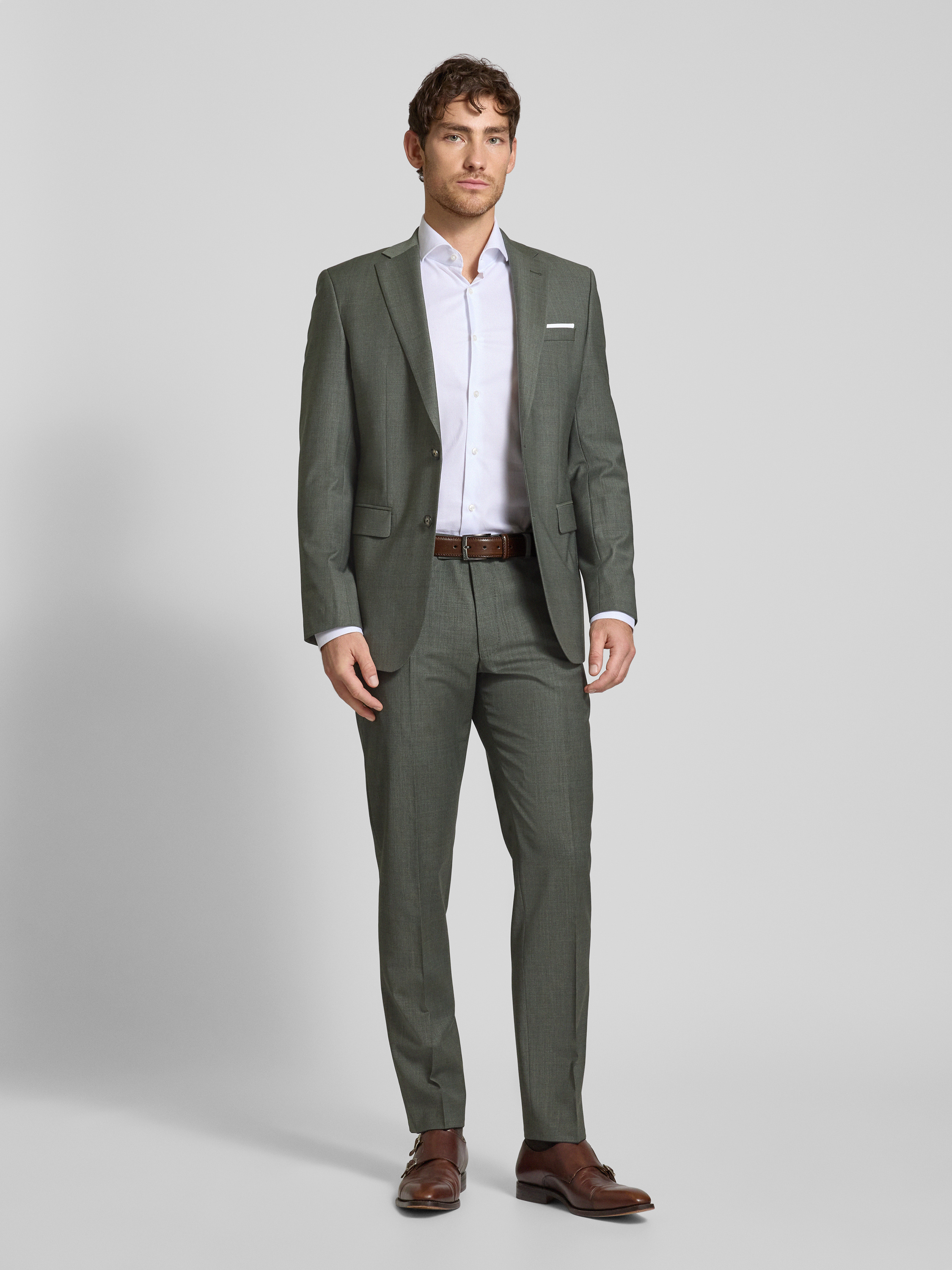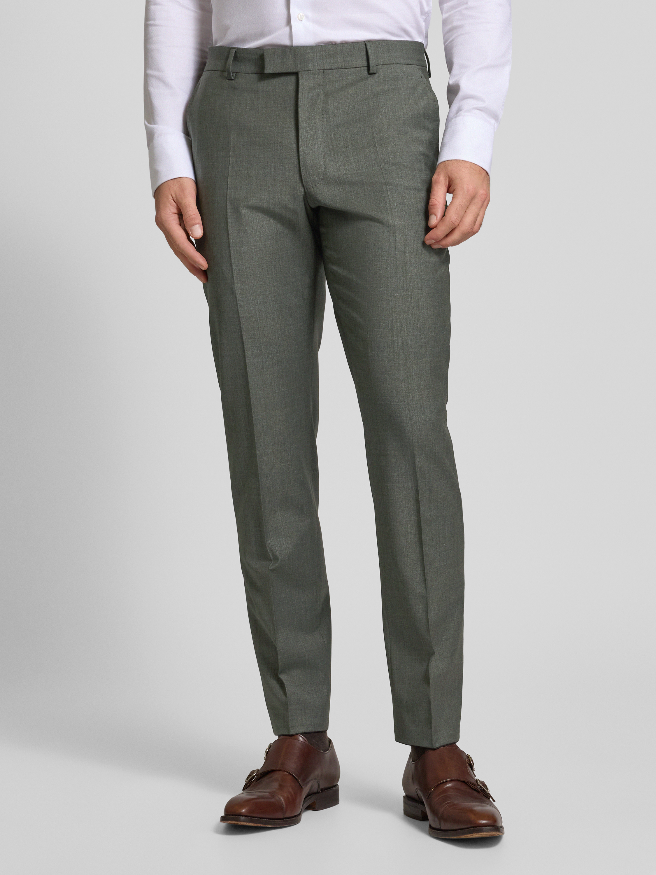 JOOP! CollectionSpodnie od garnituru męskie JOOP! Collection;Mieszanka materiałów z dodatkiem wełny;Krój modern fit;Model ‘Brad’;Zapięcie na haftkę i zamek błyskawiczny;Wpuszczane kieszenie w stylu francuskim;Kanty;Szlufki;Szerokość w pasie w rozmiarze 50: 35 cm;Długość wewnętrzna nogawki w rozmiarze 50: 80 cm - ciemnozielony