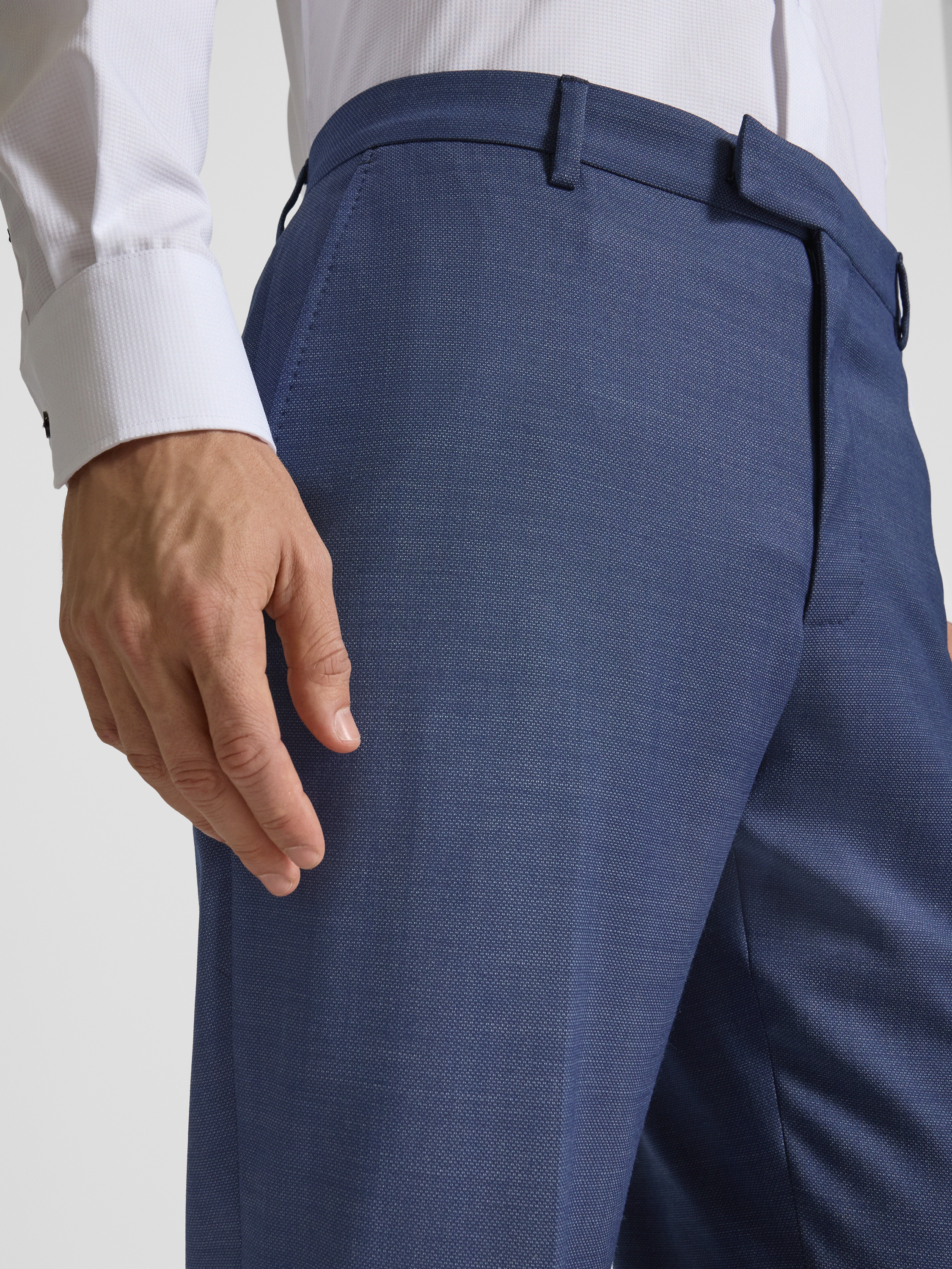 JOOP! CollectionSpodnie od garnituru męskie JOOP! Collection;Mieszanka materiałów z dodatkiem wełny;Krój modern fit;Model ‘Brad’;Zapięcie na haftkę i zamek błyskawiczny;Wpuszczane kieszenie w stylu francuskim;Kanty;Szlufki;Szerokość w pasie w rozmiarze 50: 43 cm;Długość wewnętrzna nogawki w rozmiarze 50: 79 cm - królewski niebieski