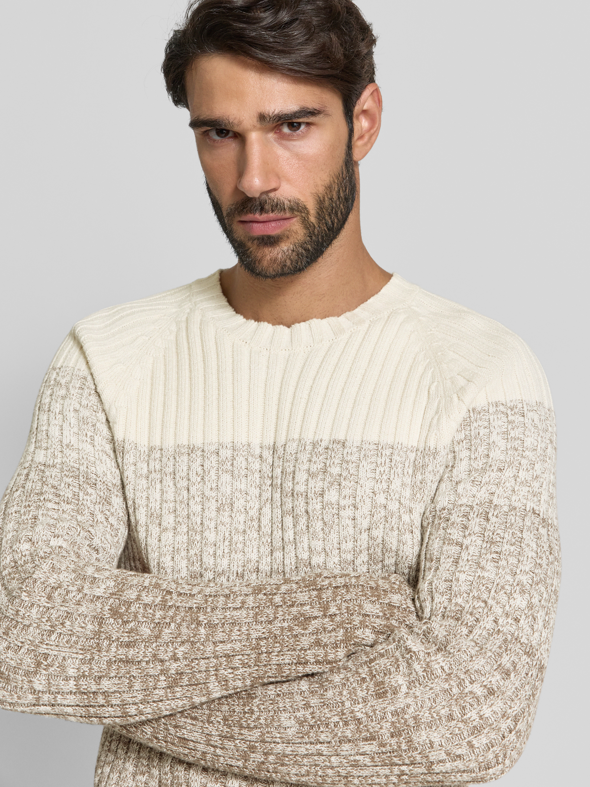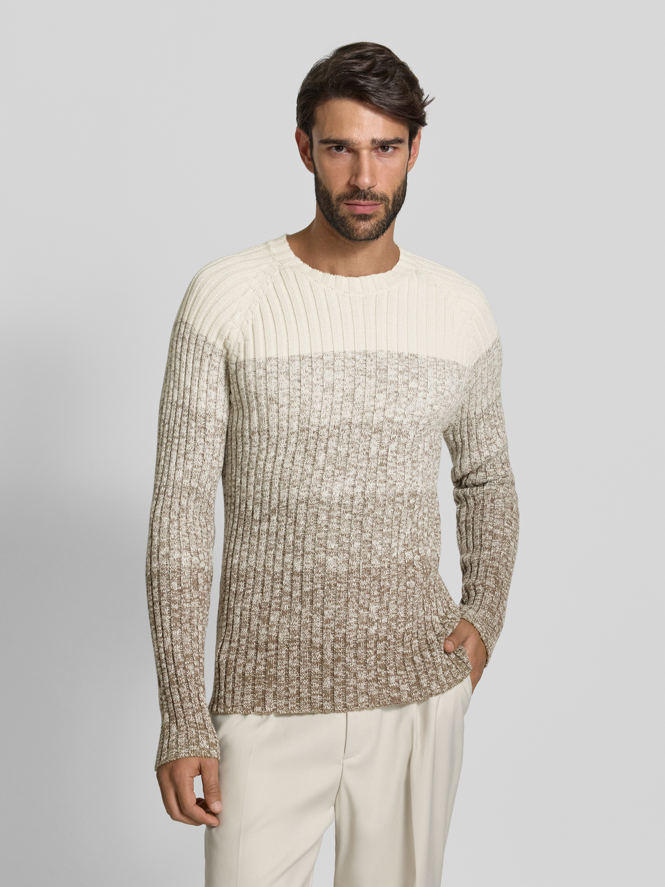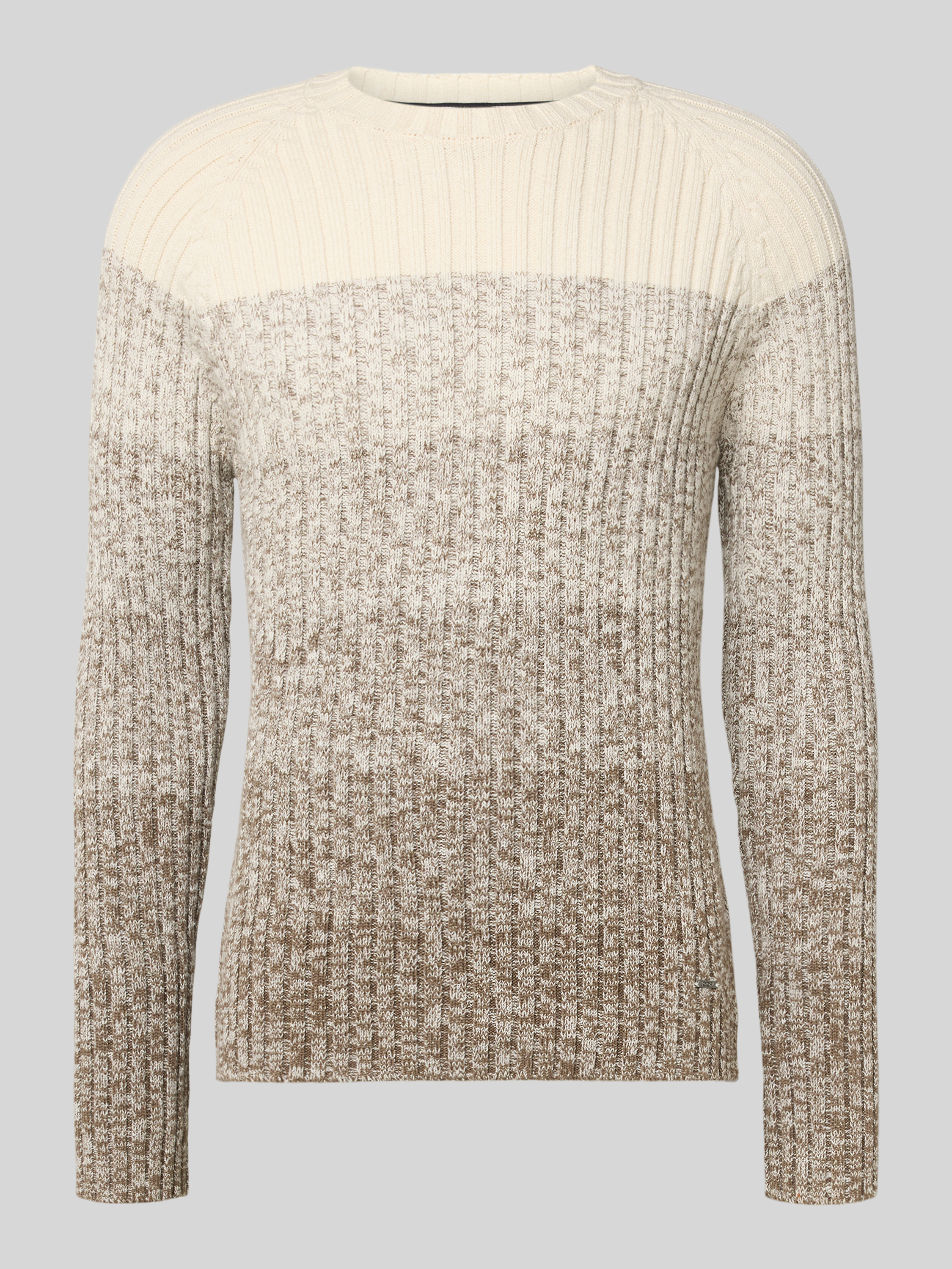 Sweter o kroju slim fit z efektem dzianiny model ‘Maximilio’ - beżowy