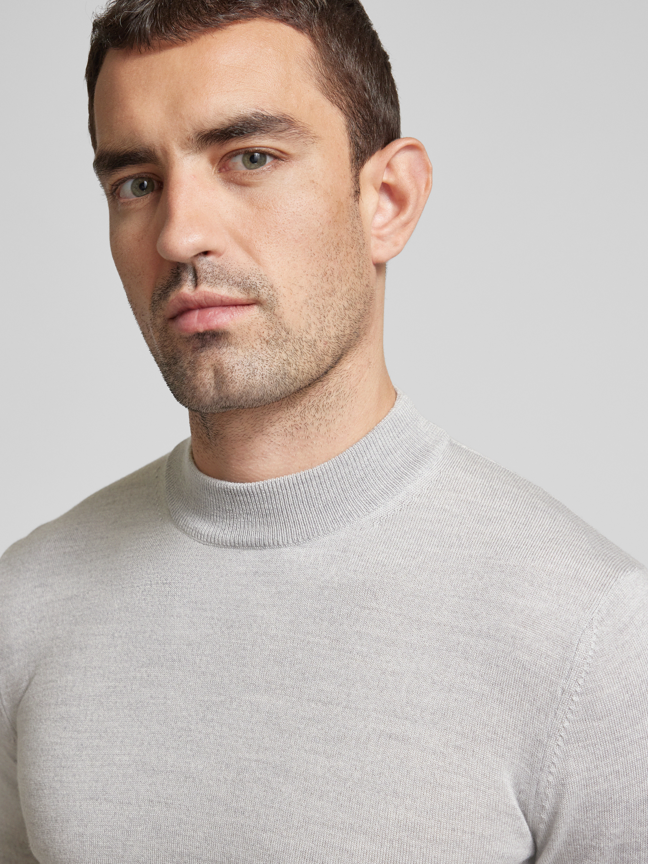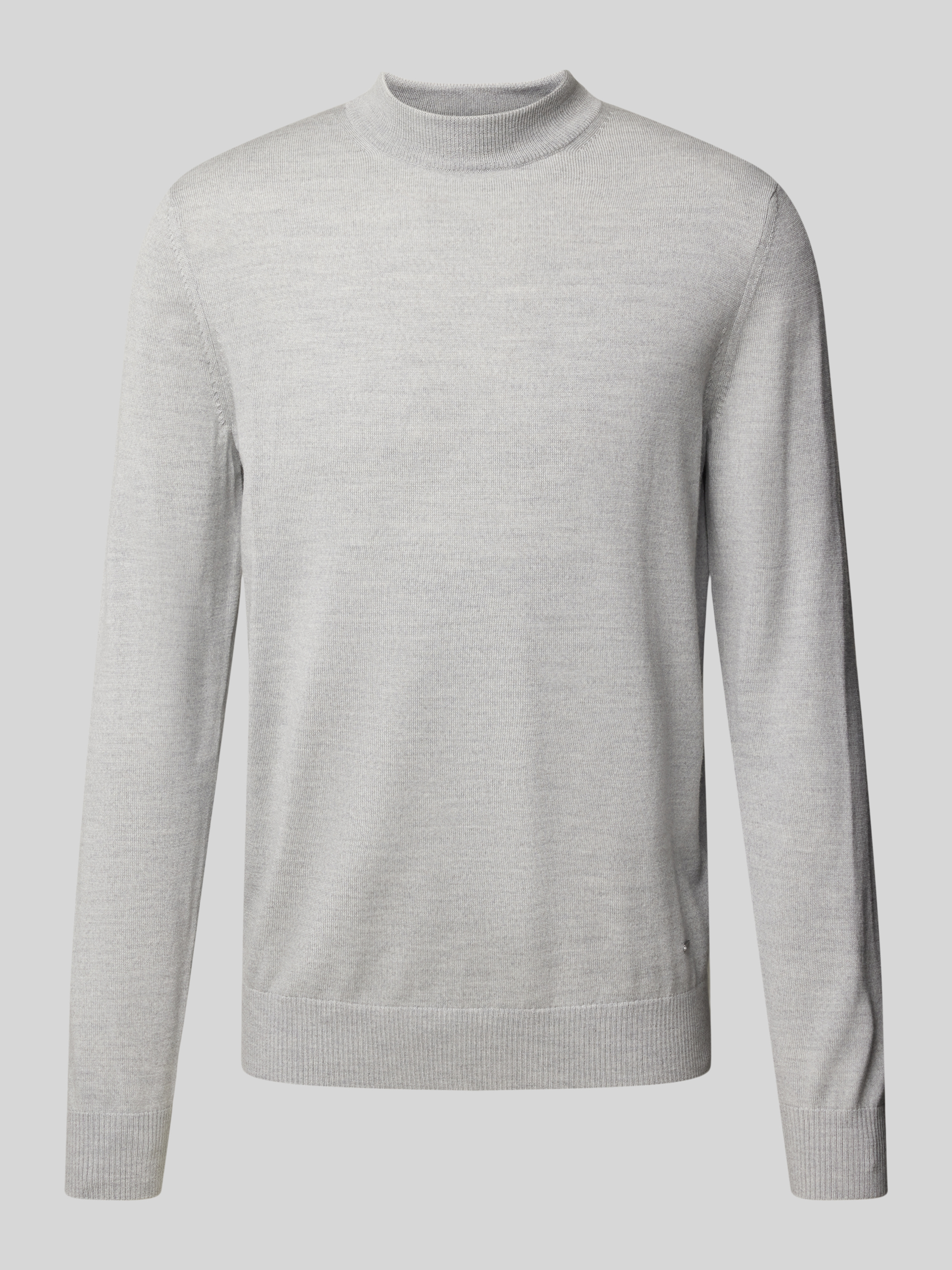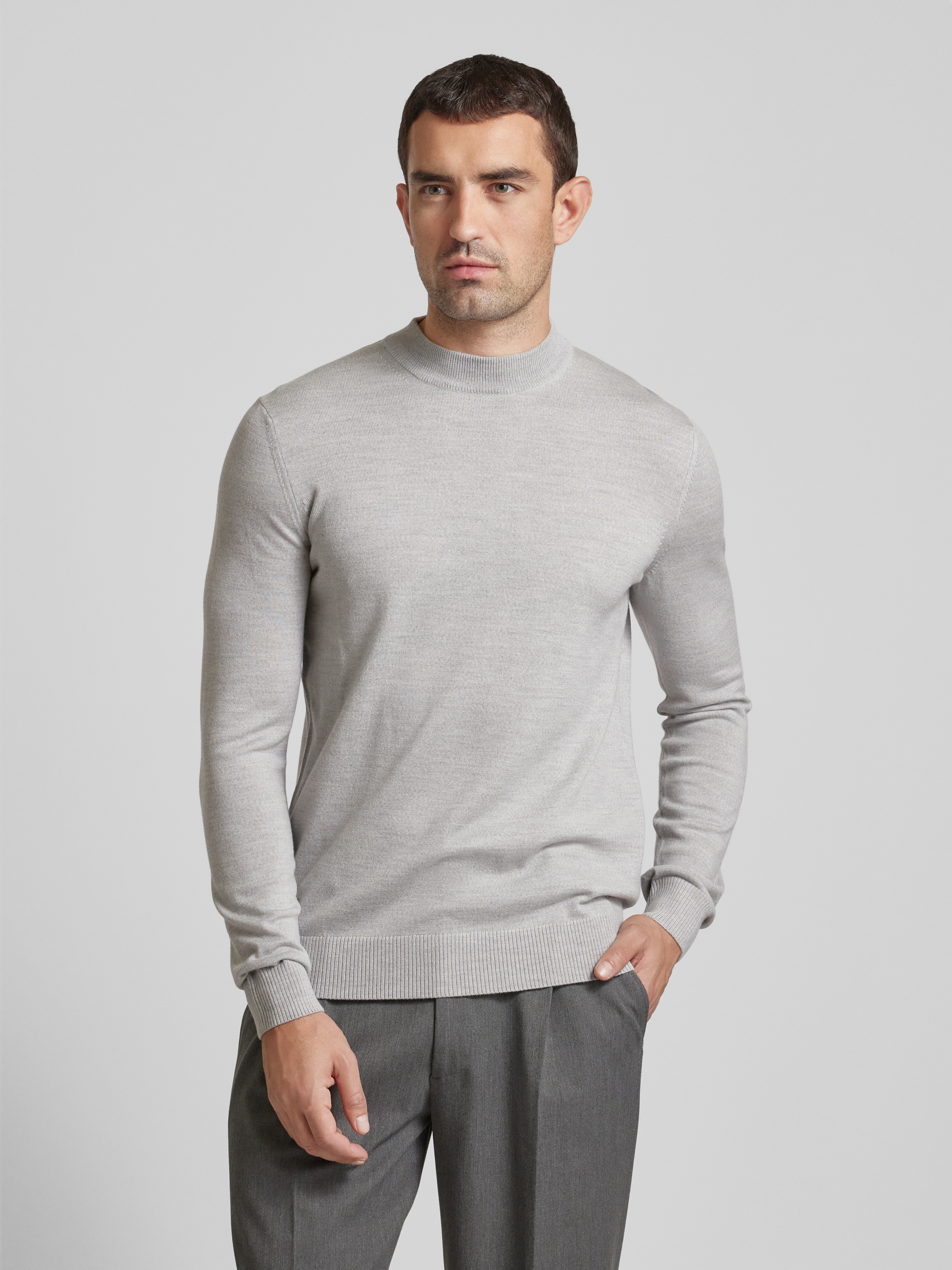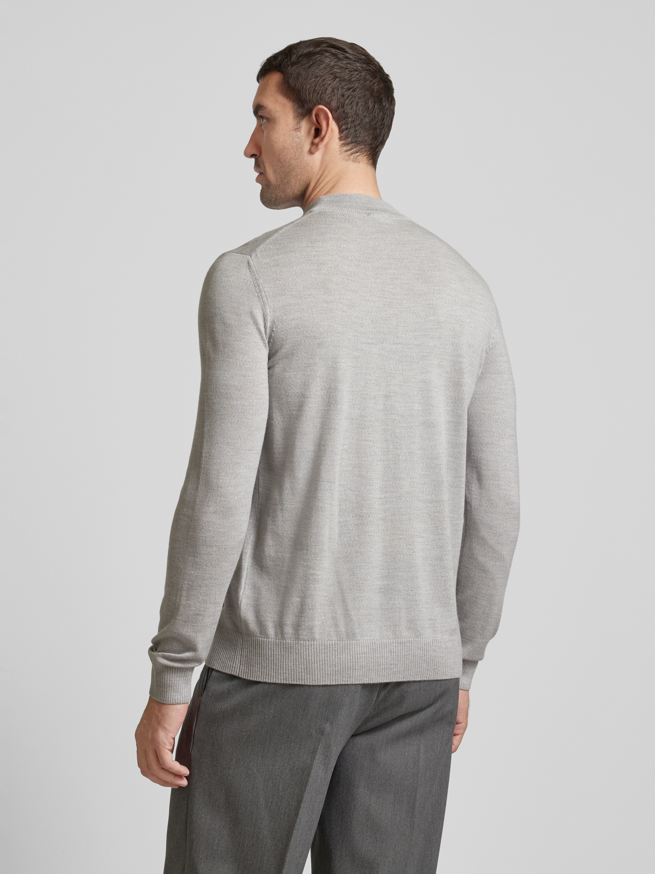 JOOP! CollectionSweter z dzianiny męski JOOP! Collection;Czysta żywa wełna;Dopasowany krój;Model ‘Davide’;Stójka;Prążkowane wykończenia;Długość tyłu w rozmiarze M: 71 cm;Długość rękawa w rozmiarze M: 70 cm - jasnoszary