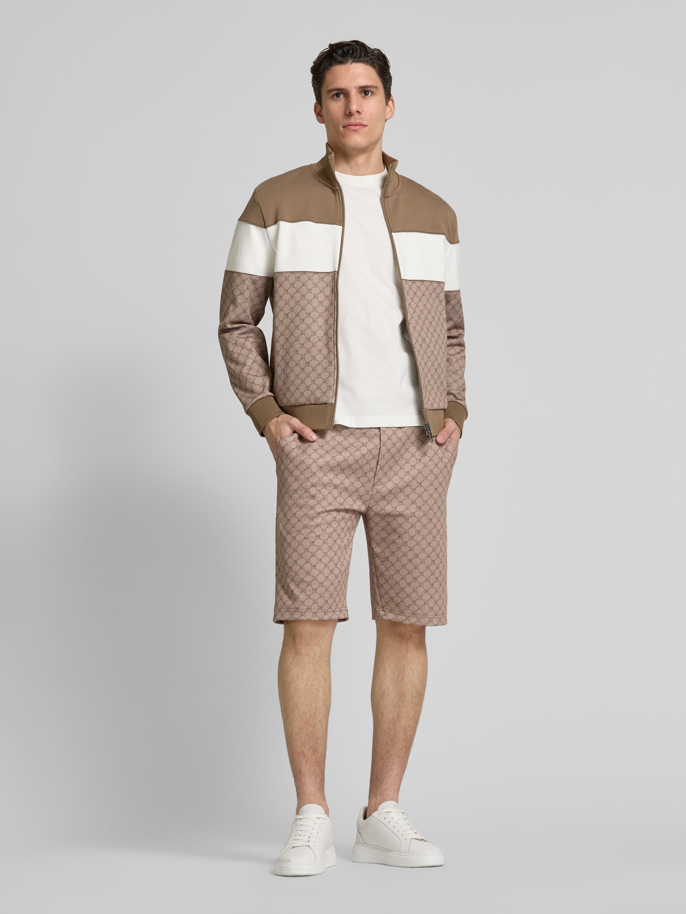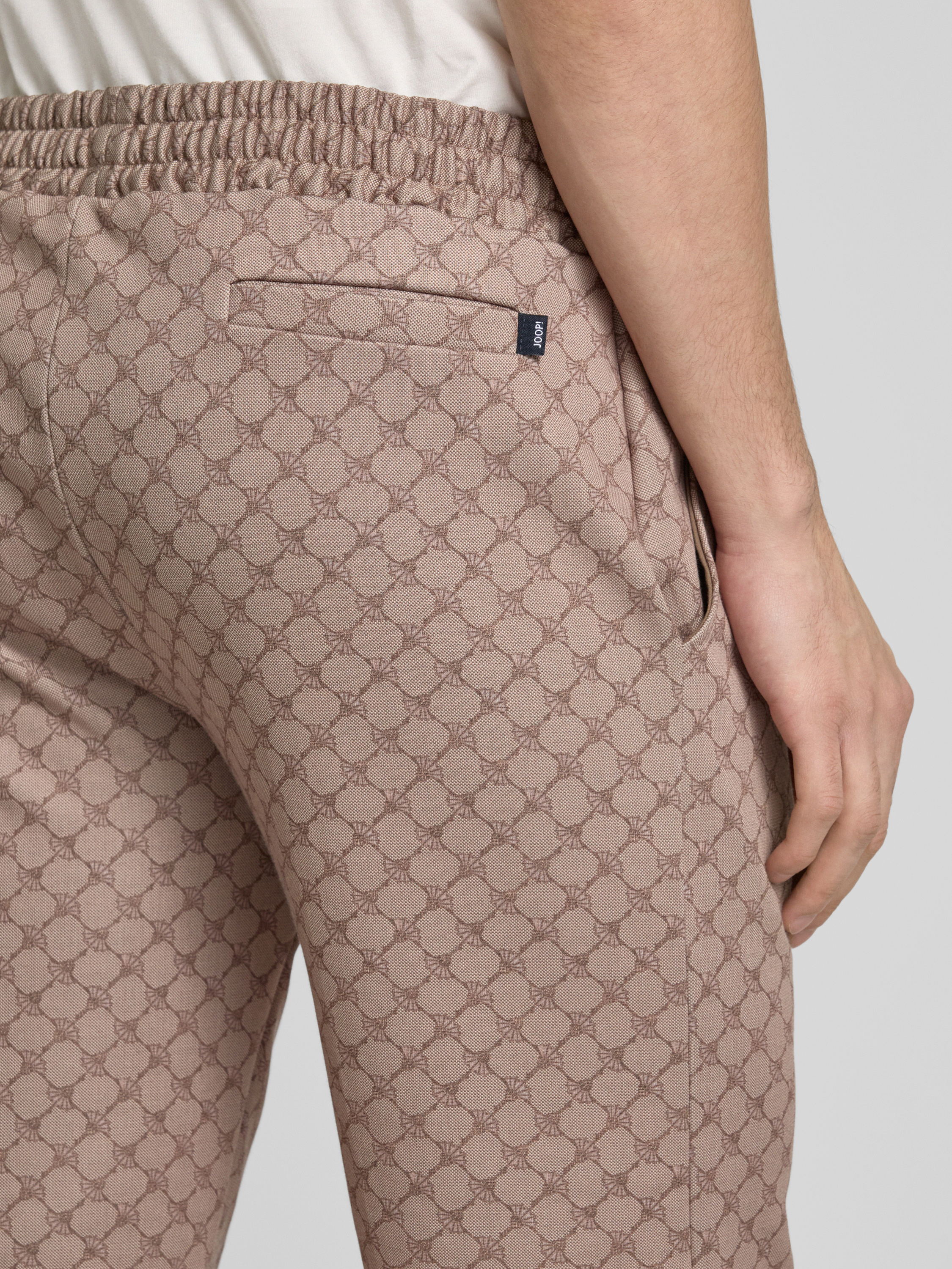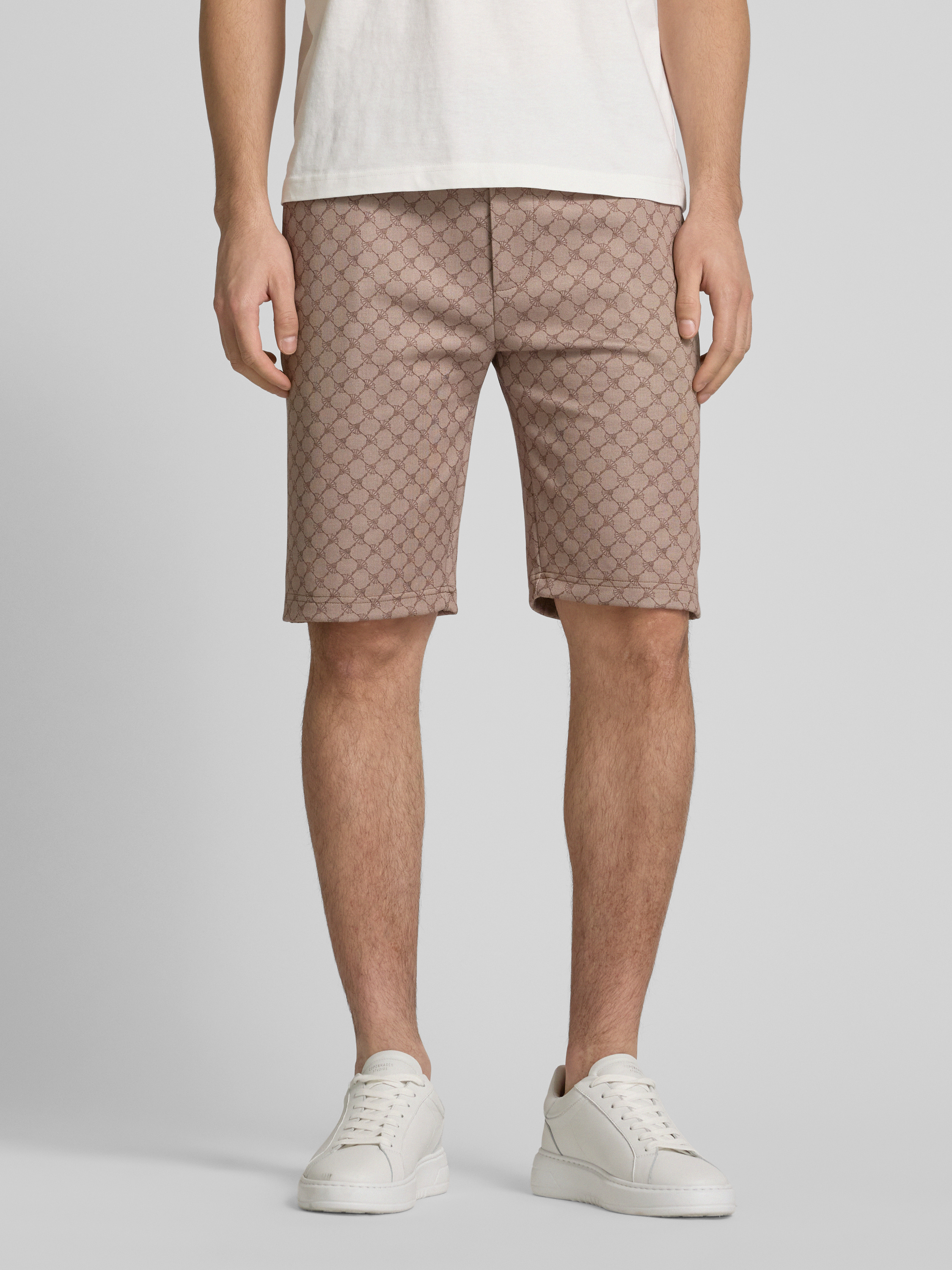 JOOP! CollectionSzorty męskie JOOP! Collection;Czysta bawełna;Krój regular fit;Model ‘Basil’;Elastyczny pas z tunelem;Wpuszczane kieszenie;Zaznaczony rozporek;Szerokość w pasie w rozmiarze M: 48 cm;Długość wewnętrzna nogawki w rozmiarze M: 27 cm - jasnobrązowy