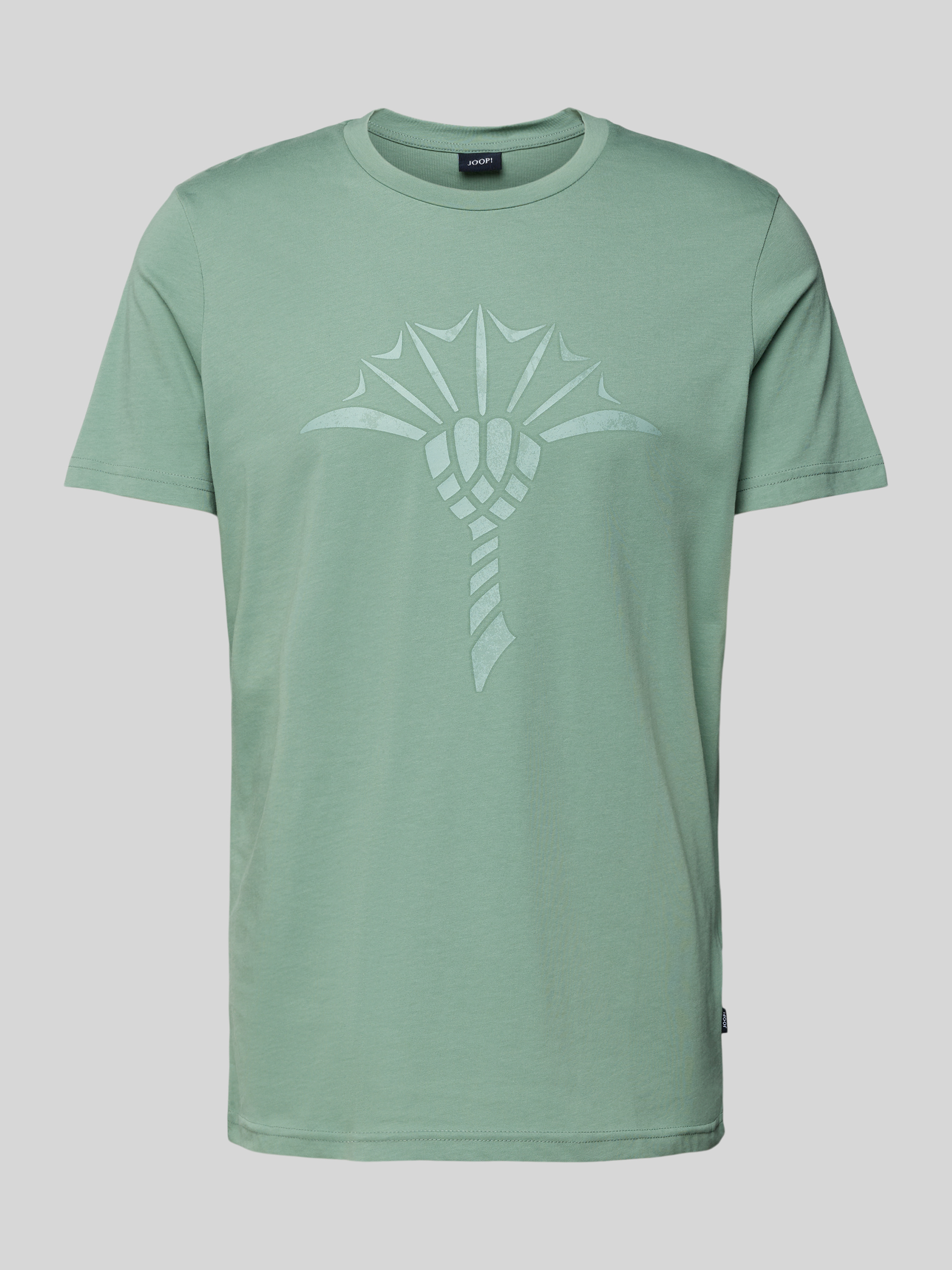 JOOP! CollectionT-shirt męski JOOP! Collection;Czysta bawełna;Krój regular fit;Okrągły dekolt z prążkowanego ściągacza;Nadruk z motywem;Długość tyłu w rozmiarze M: 70 cm - limonkowy