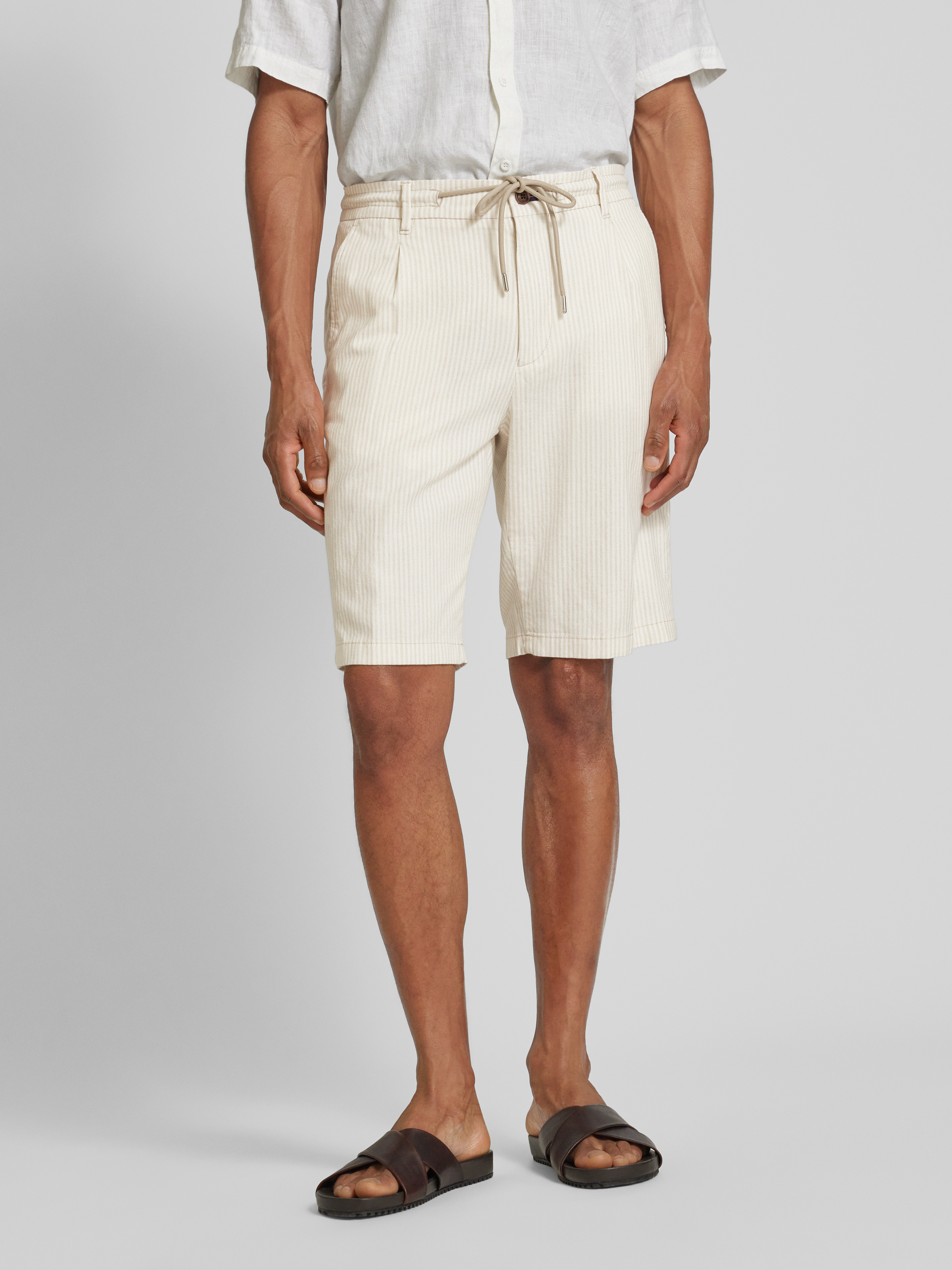 Bermudy o kroju regular fit z wiązanym paskiem model ‘RUBY’ - beżowy