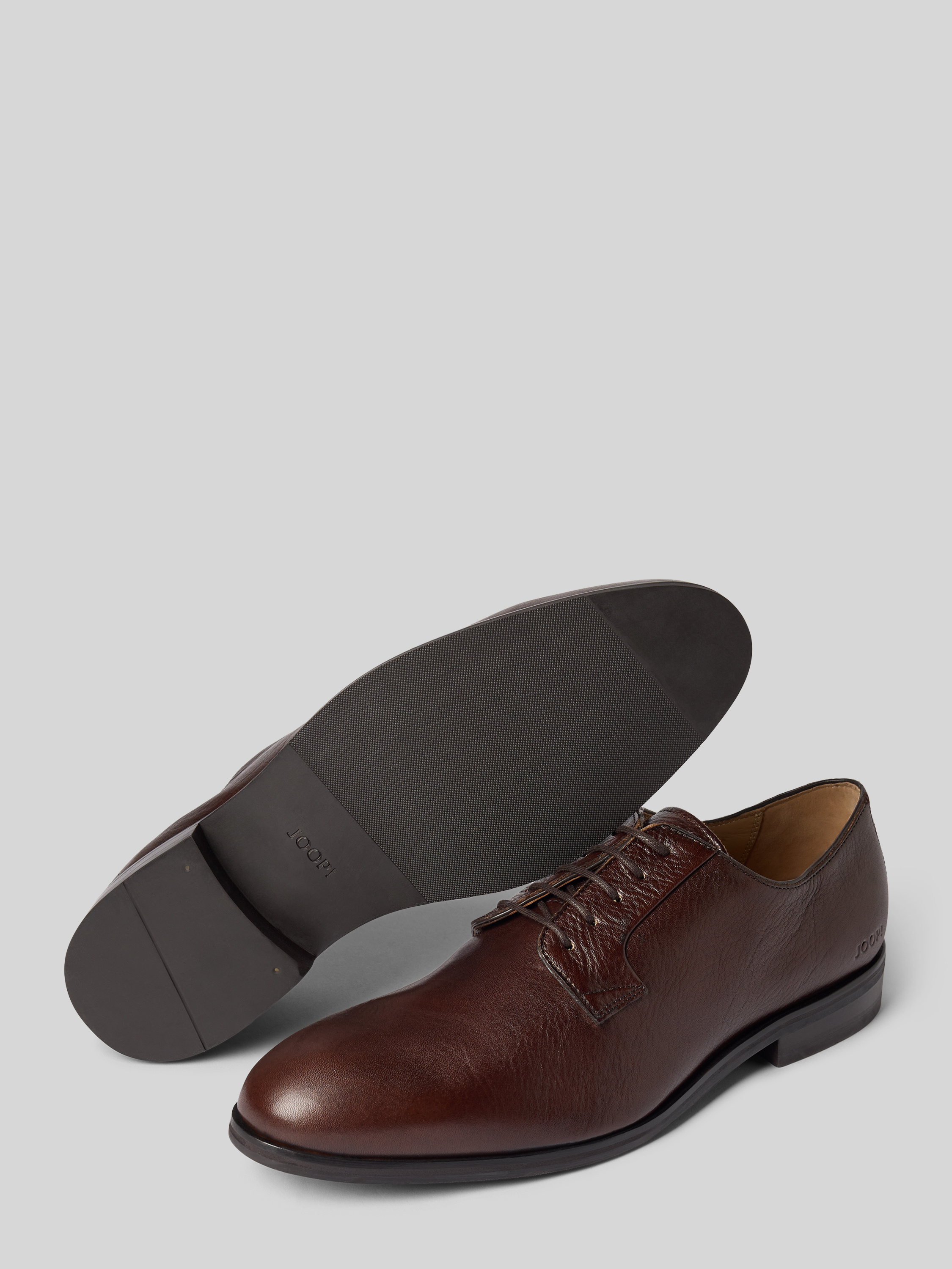 Buty derby ze skóry ze sznurowaniem i detalem z logo - ciemnobrązowy