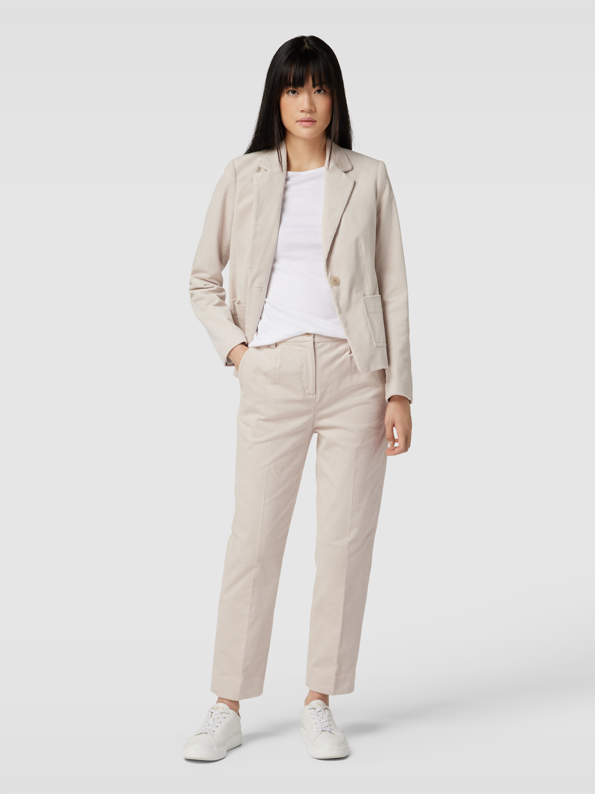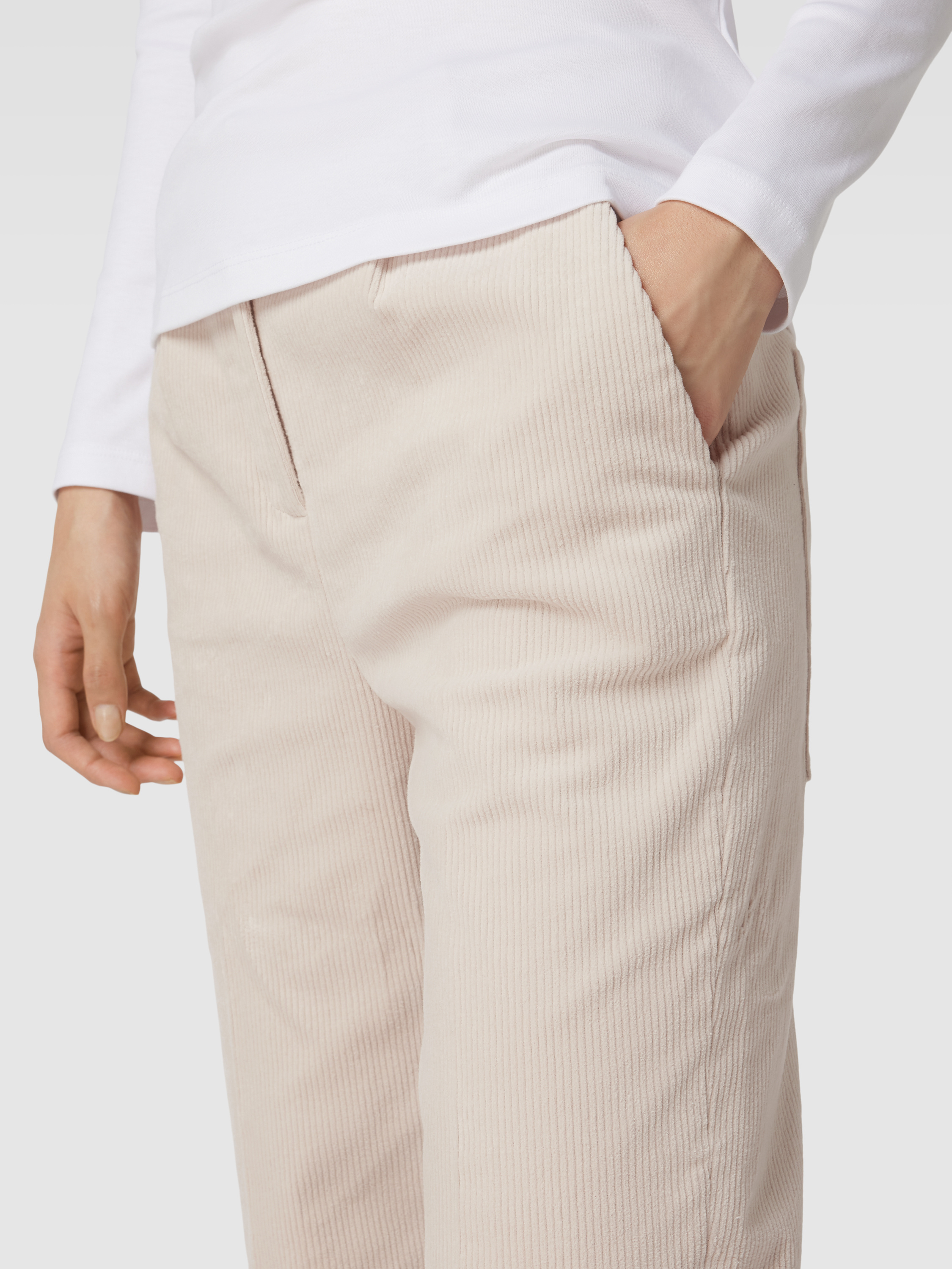 Spodnie sztruksowe w kant - écru