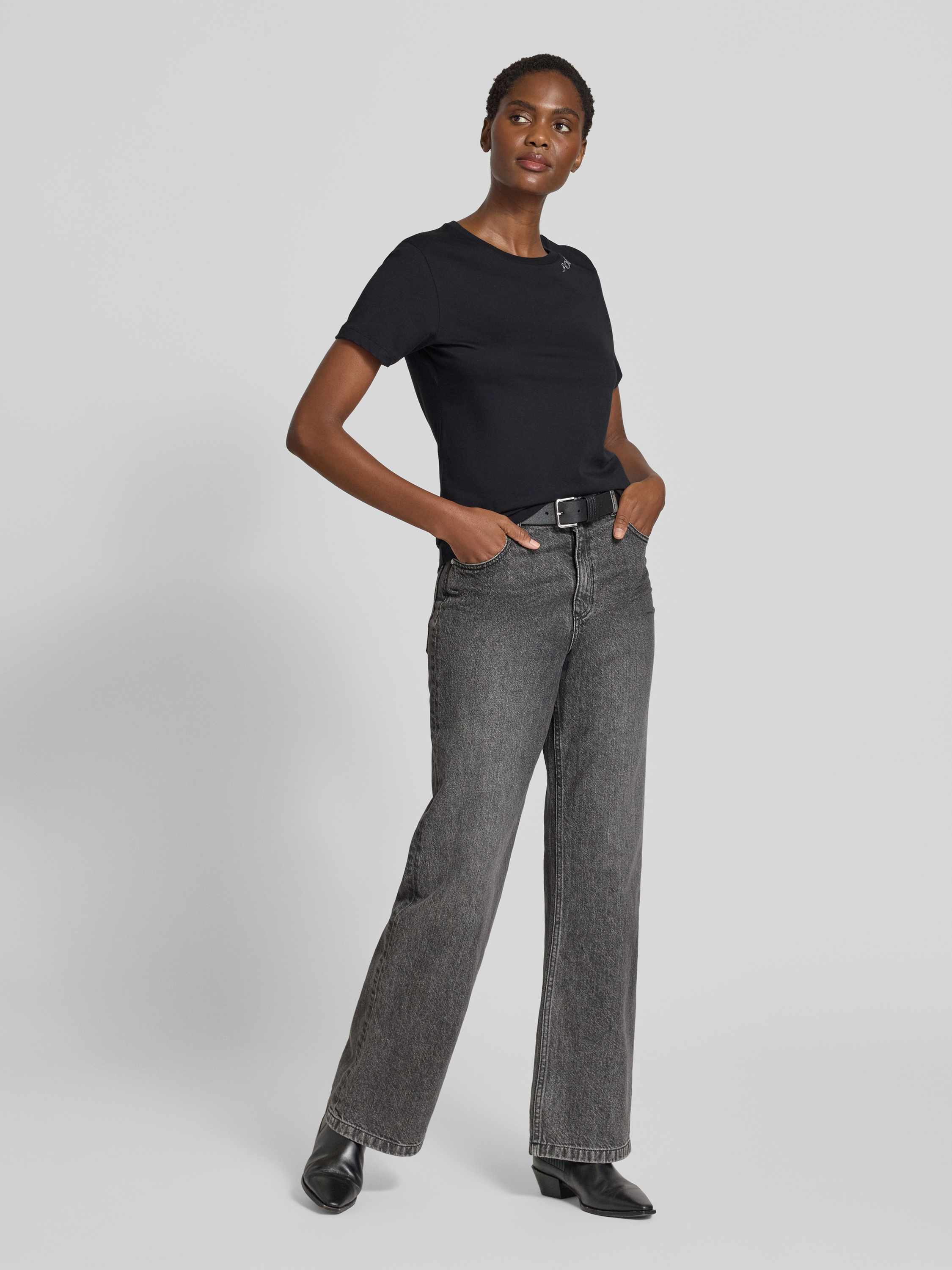 T-shirt z detalem z logo model ‘Tori’ - czarny