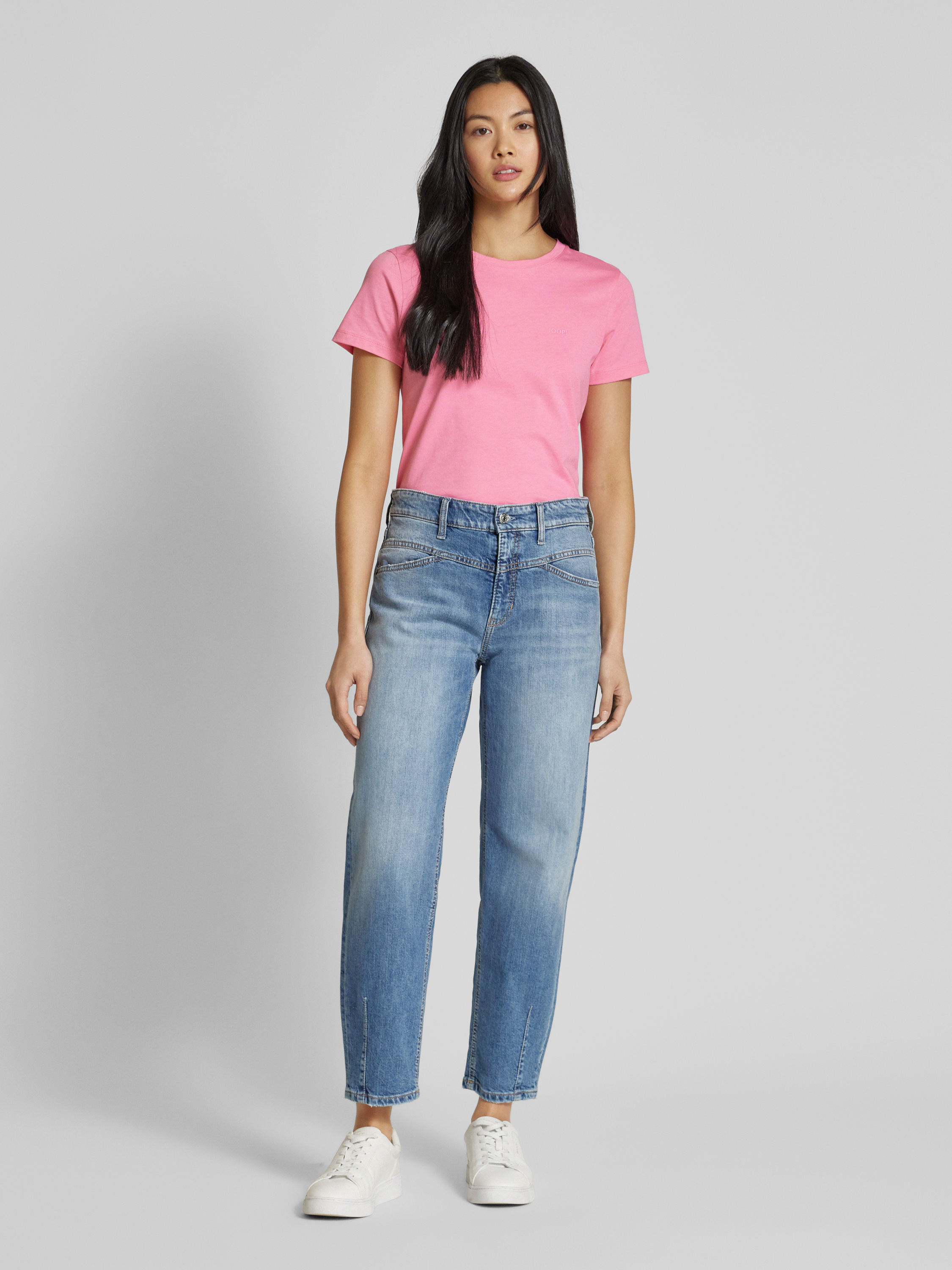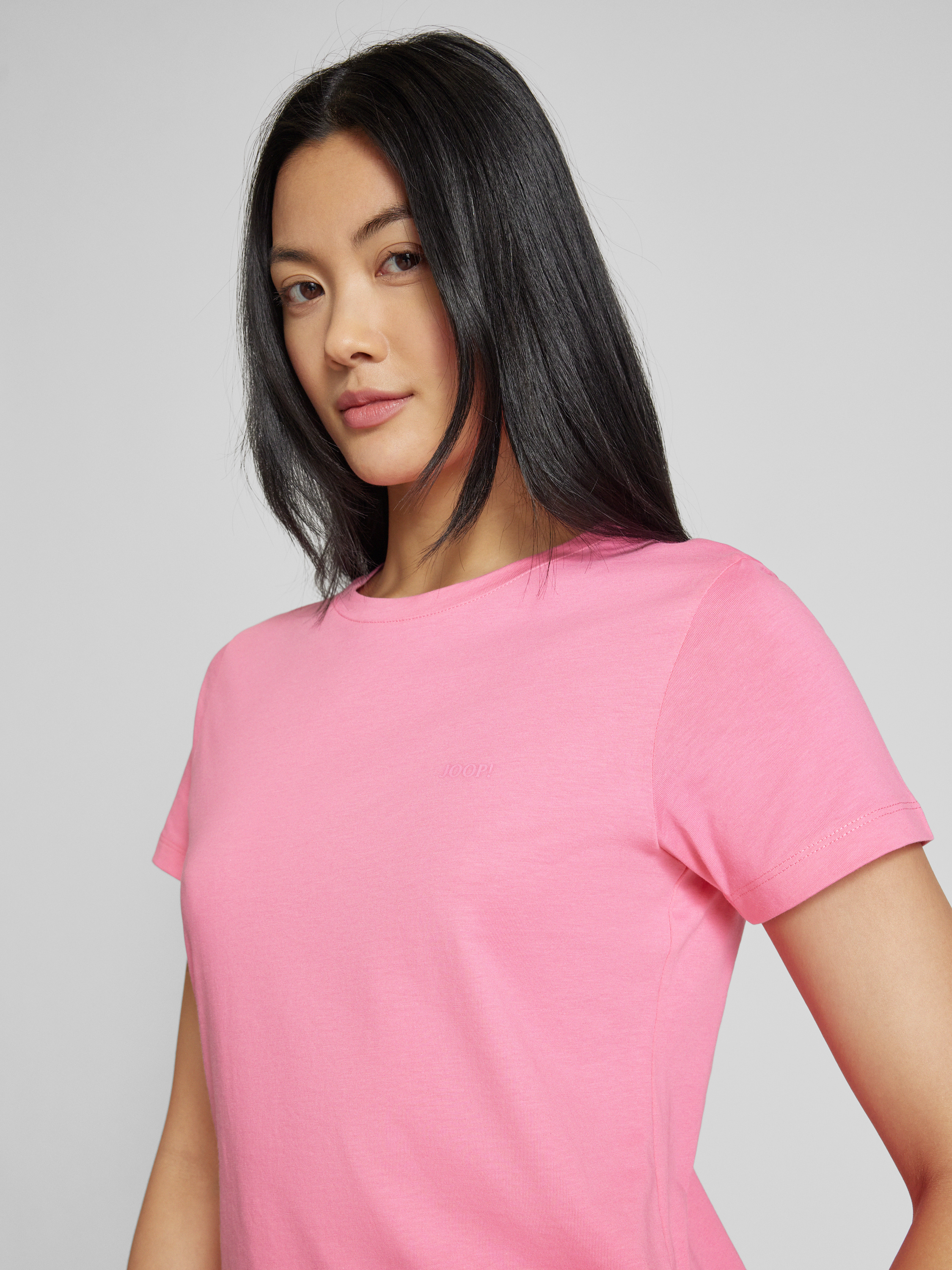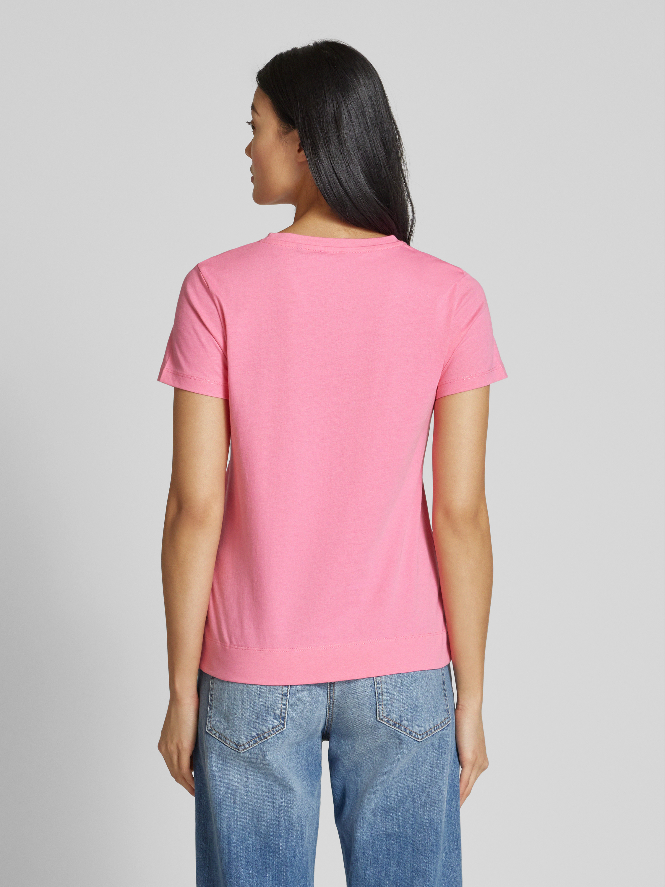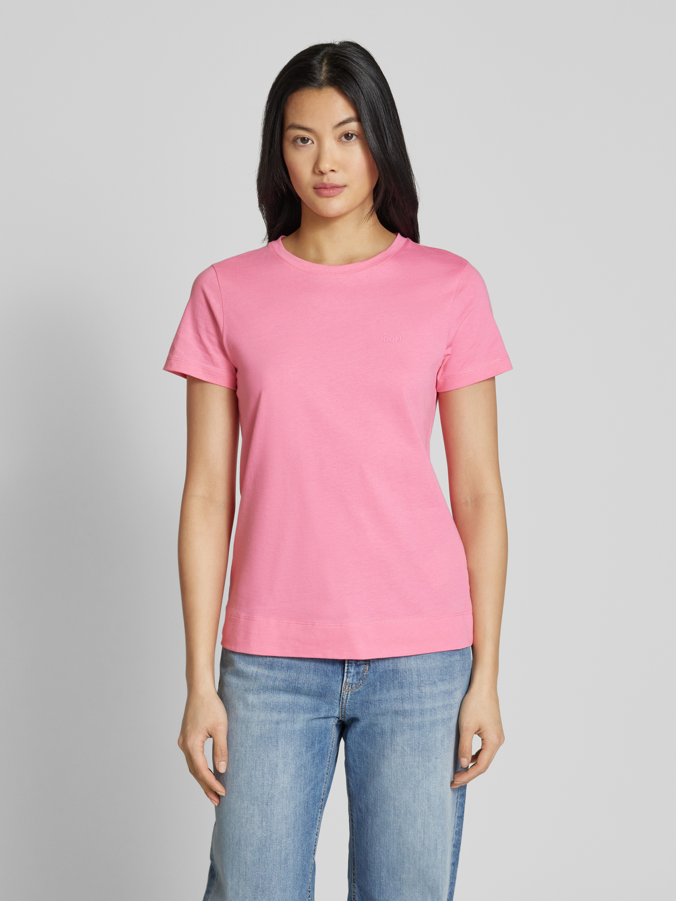 T-shirt z prążkowanym okrągłym dekoltem - mocnoróżowy