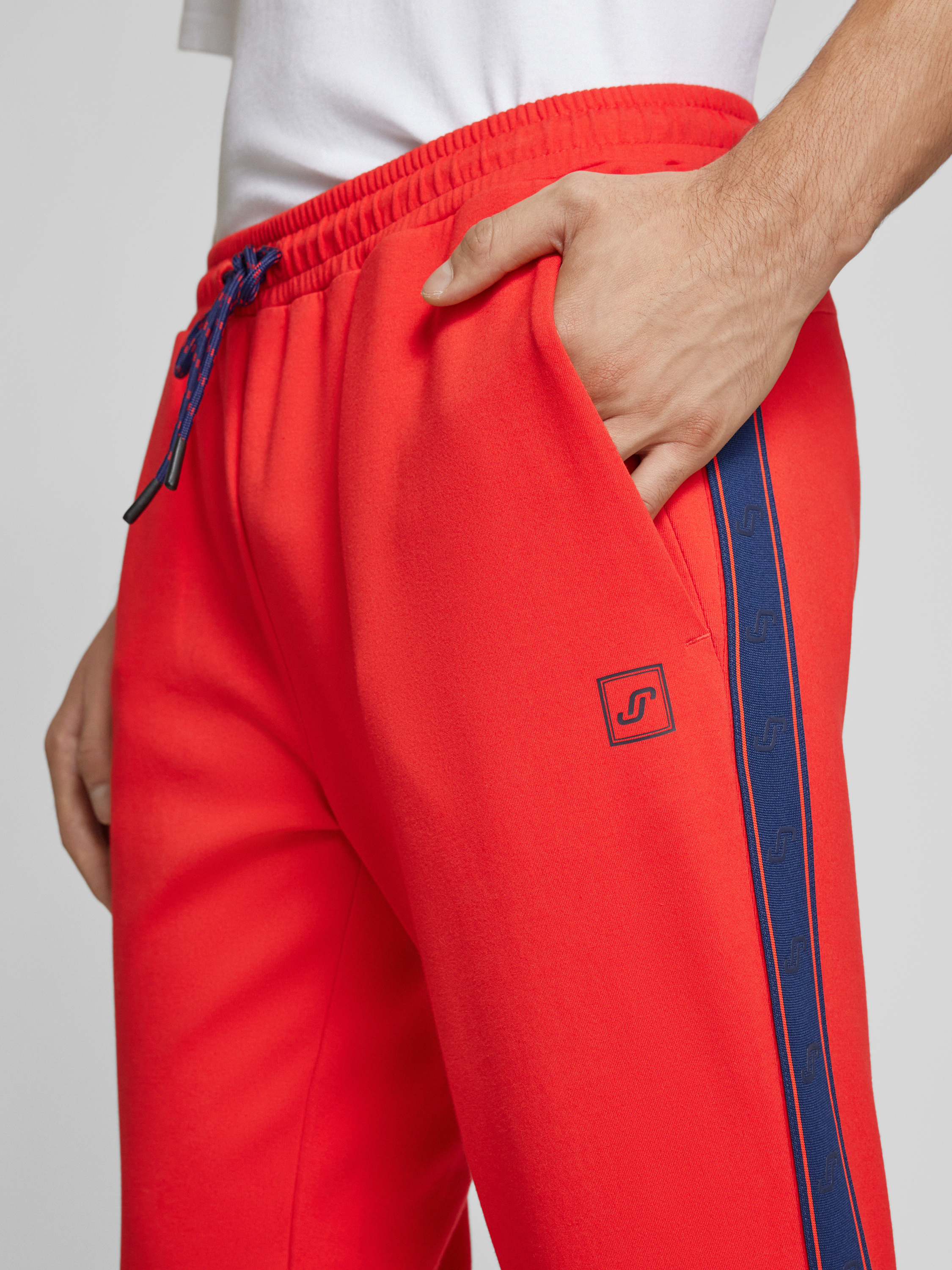 Spodnie dresowe o kroju regular fit z paskami w kontrastowym kolorze model ‘G-Style’ - czerwony
