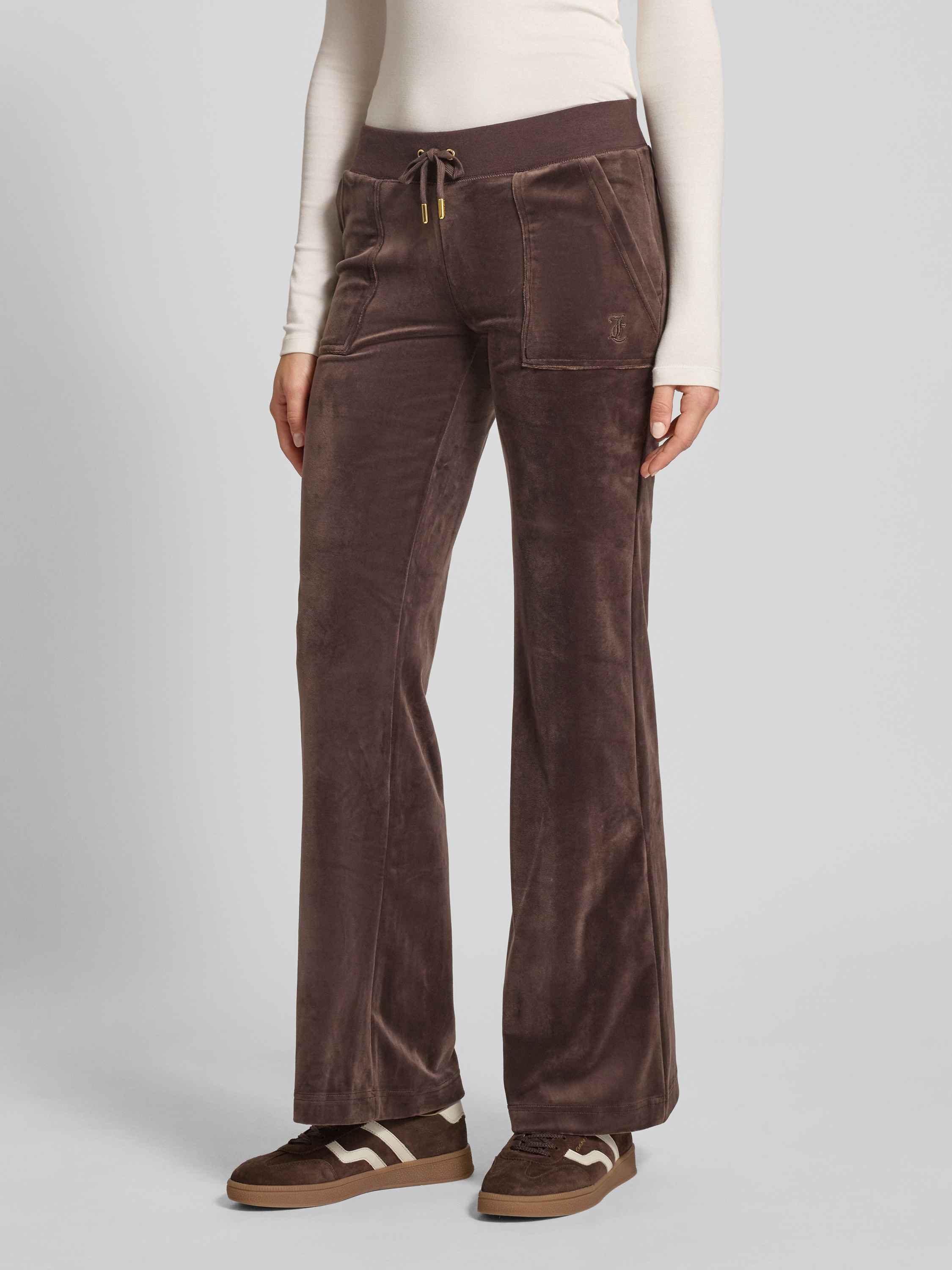Spodnie dresowe z elastycznym pasem model ‘Layla’ - ciemnobrązowy