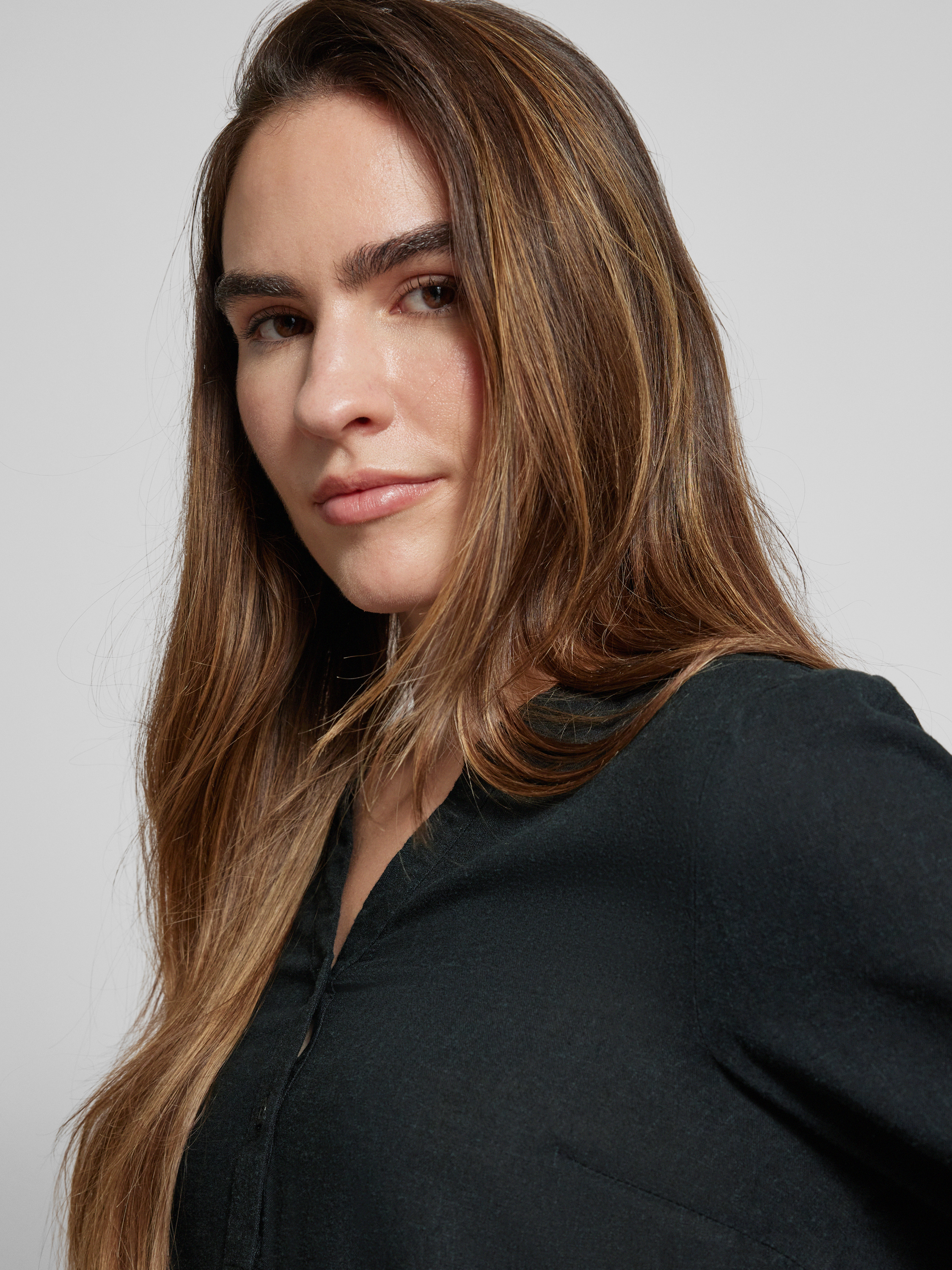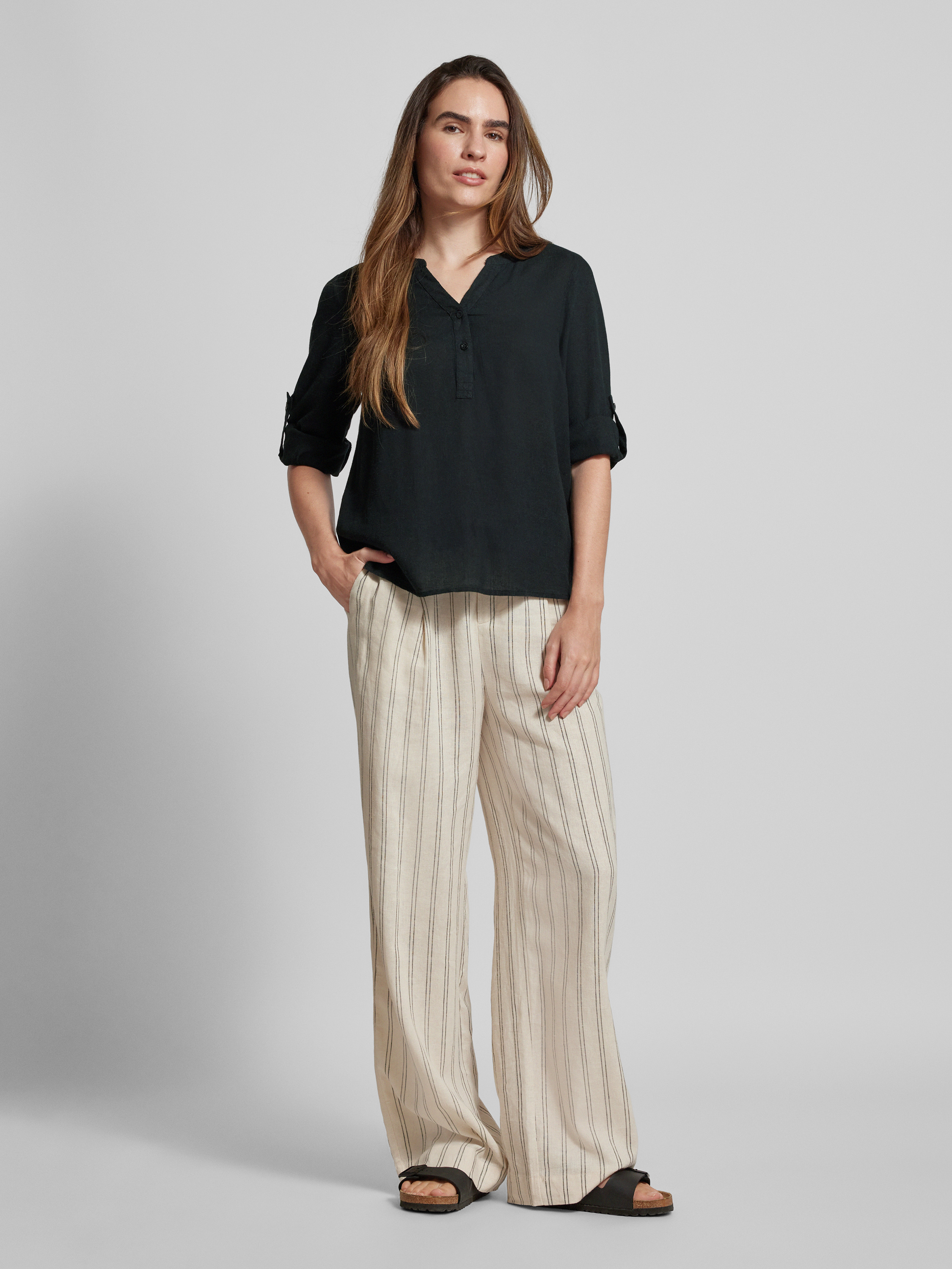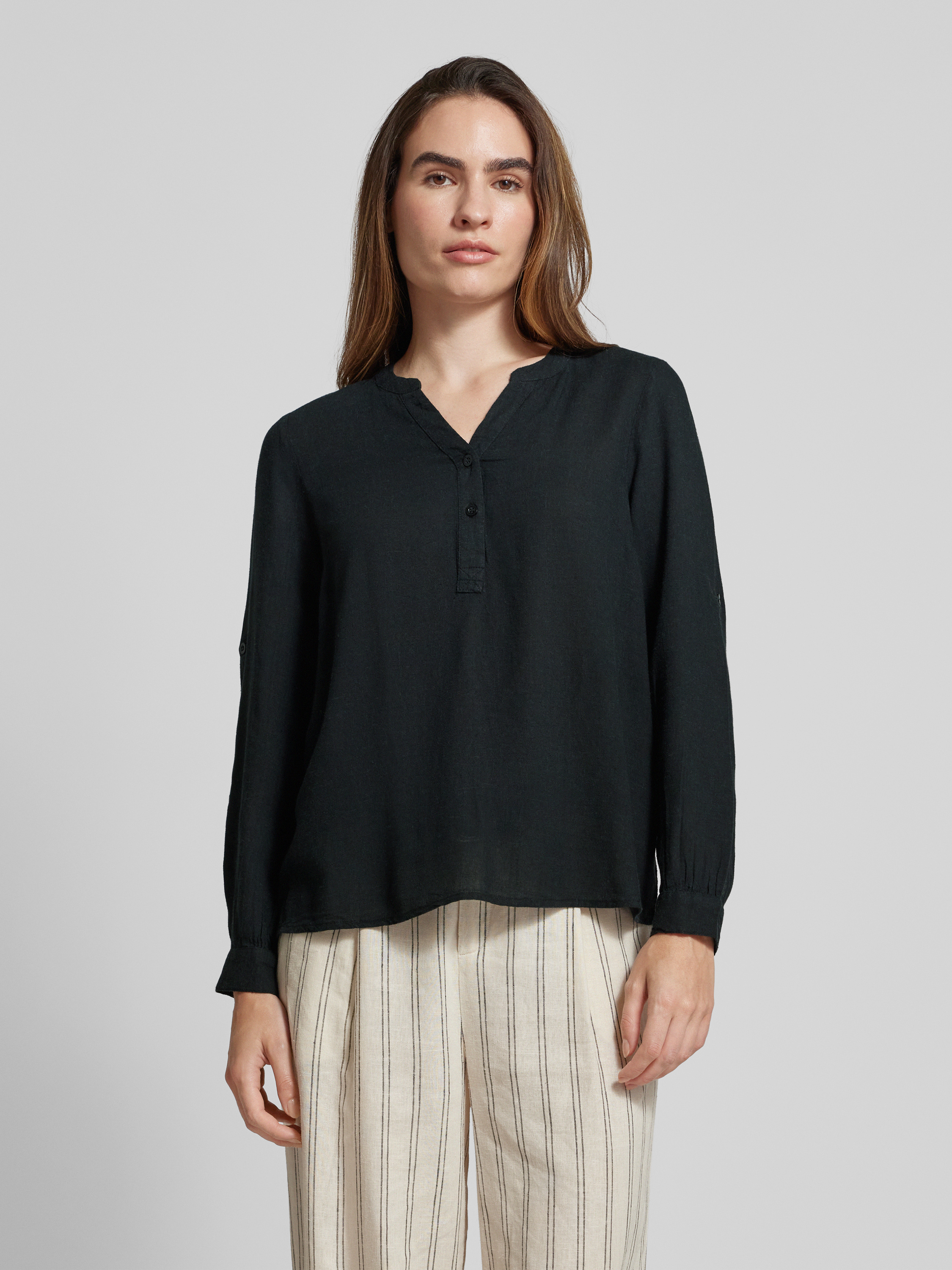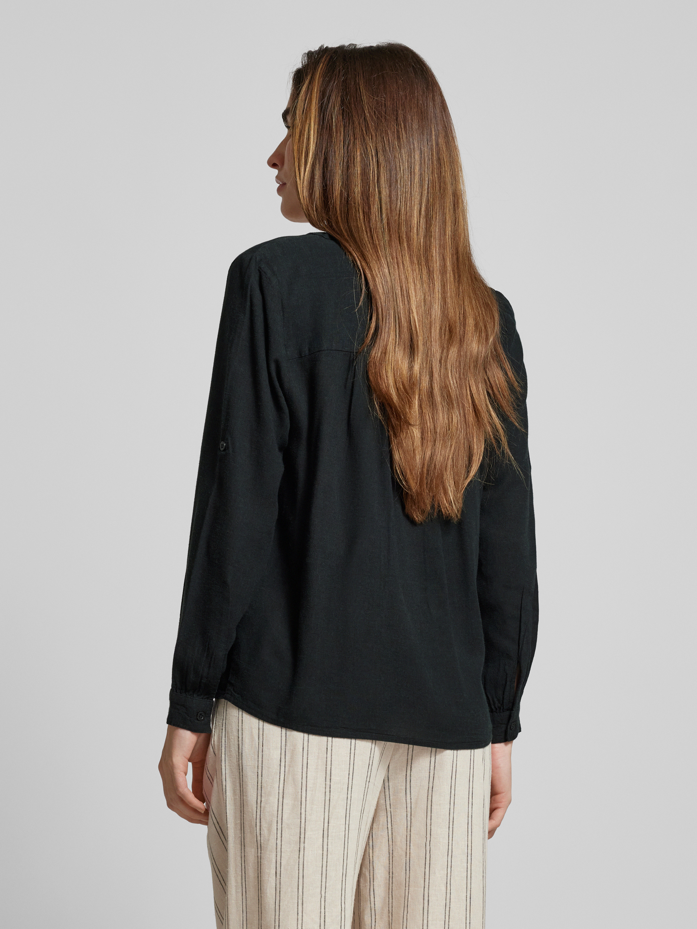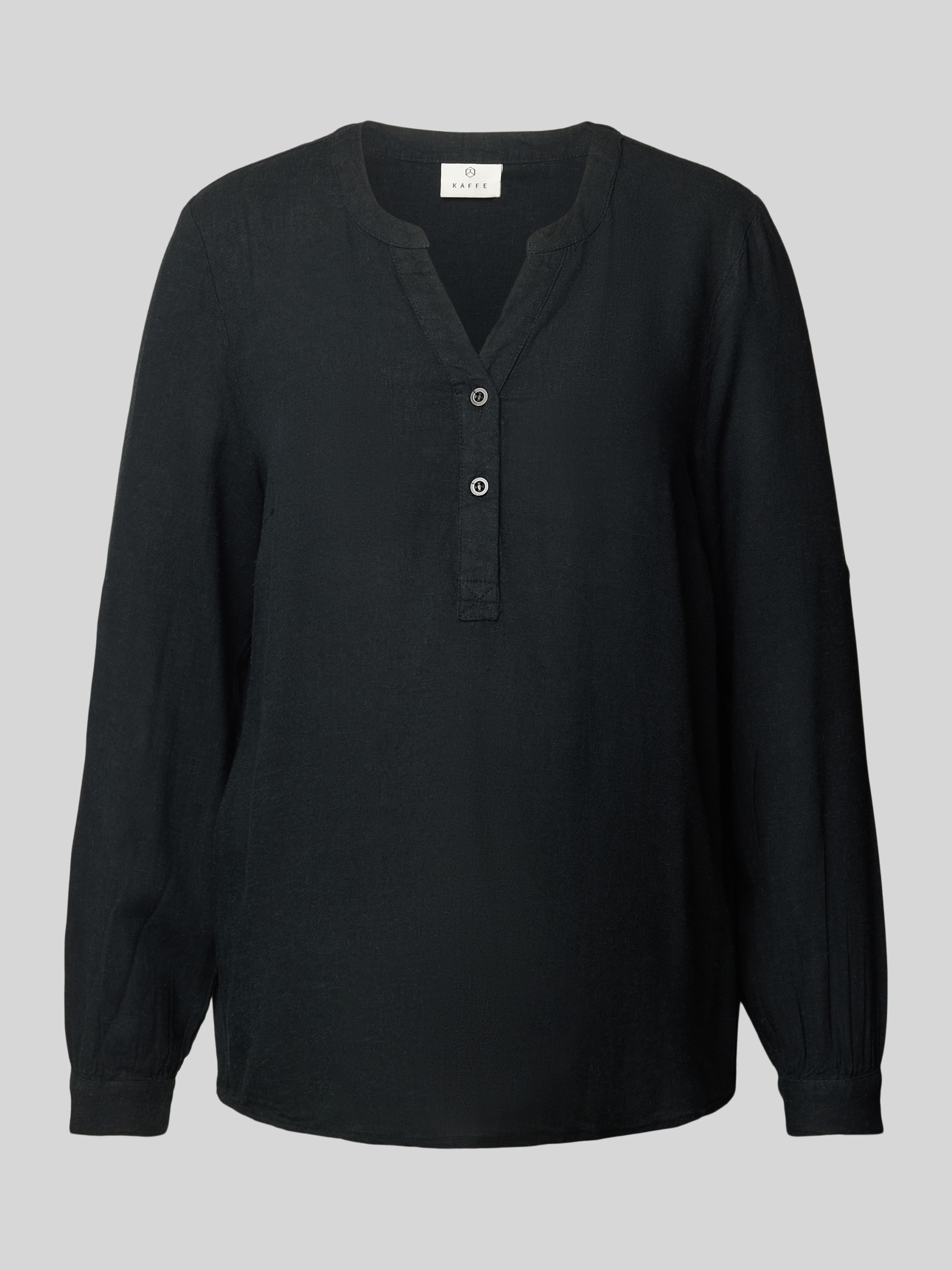 KaffeBluzka z krótką listwą guzikową model ‘milia’ - czarny