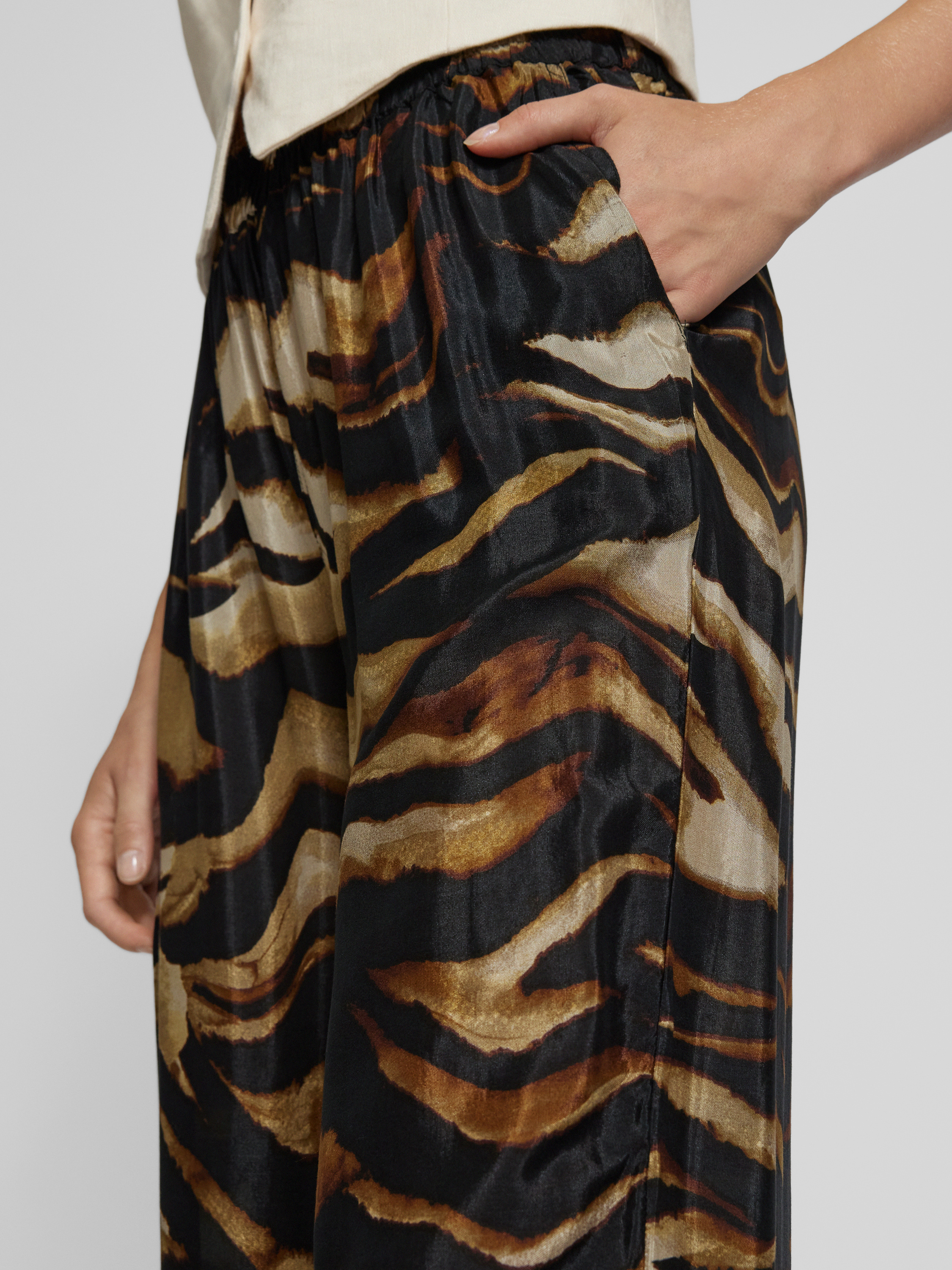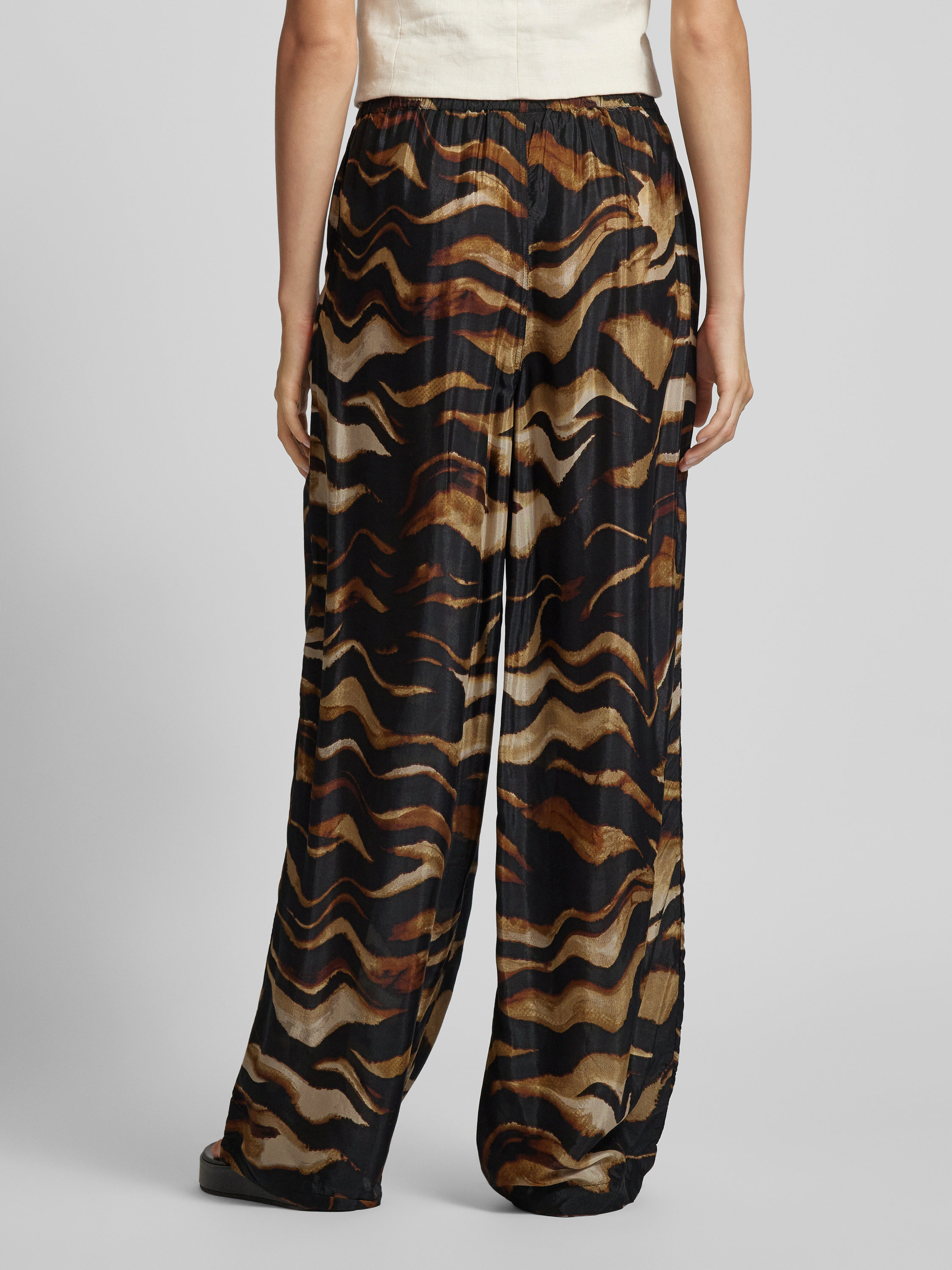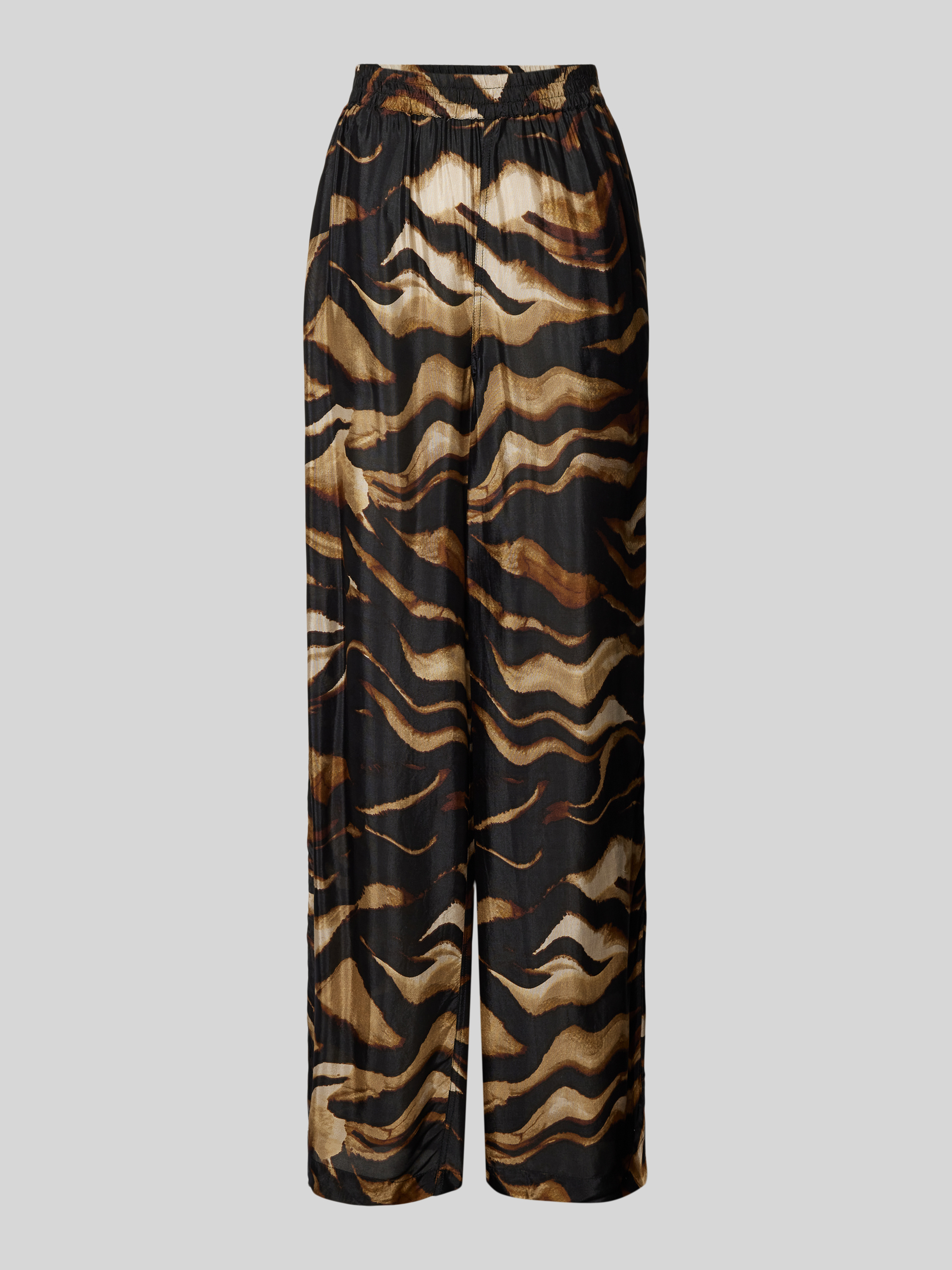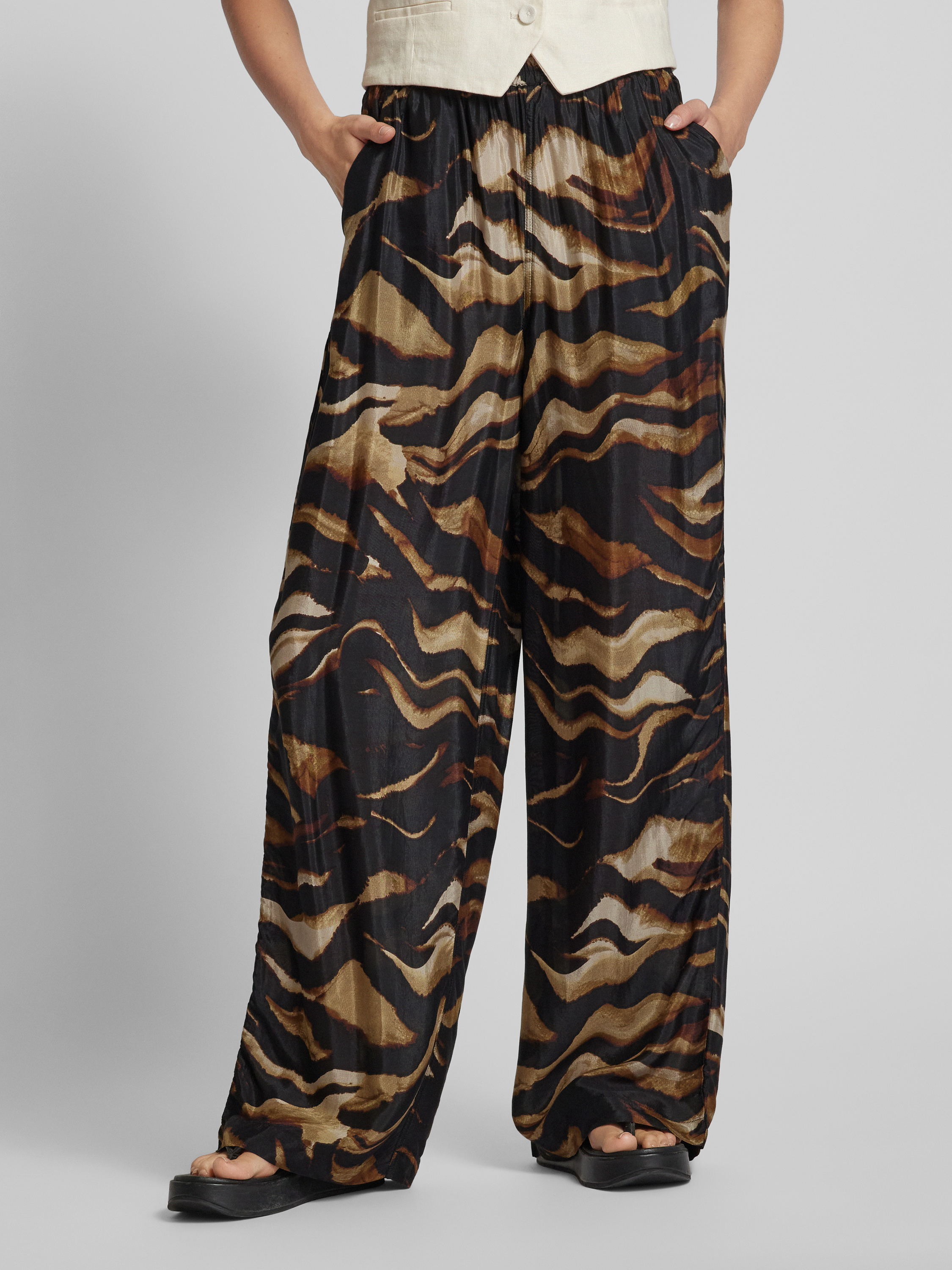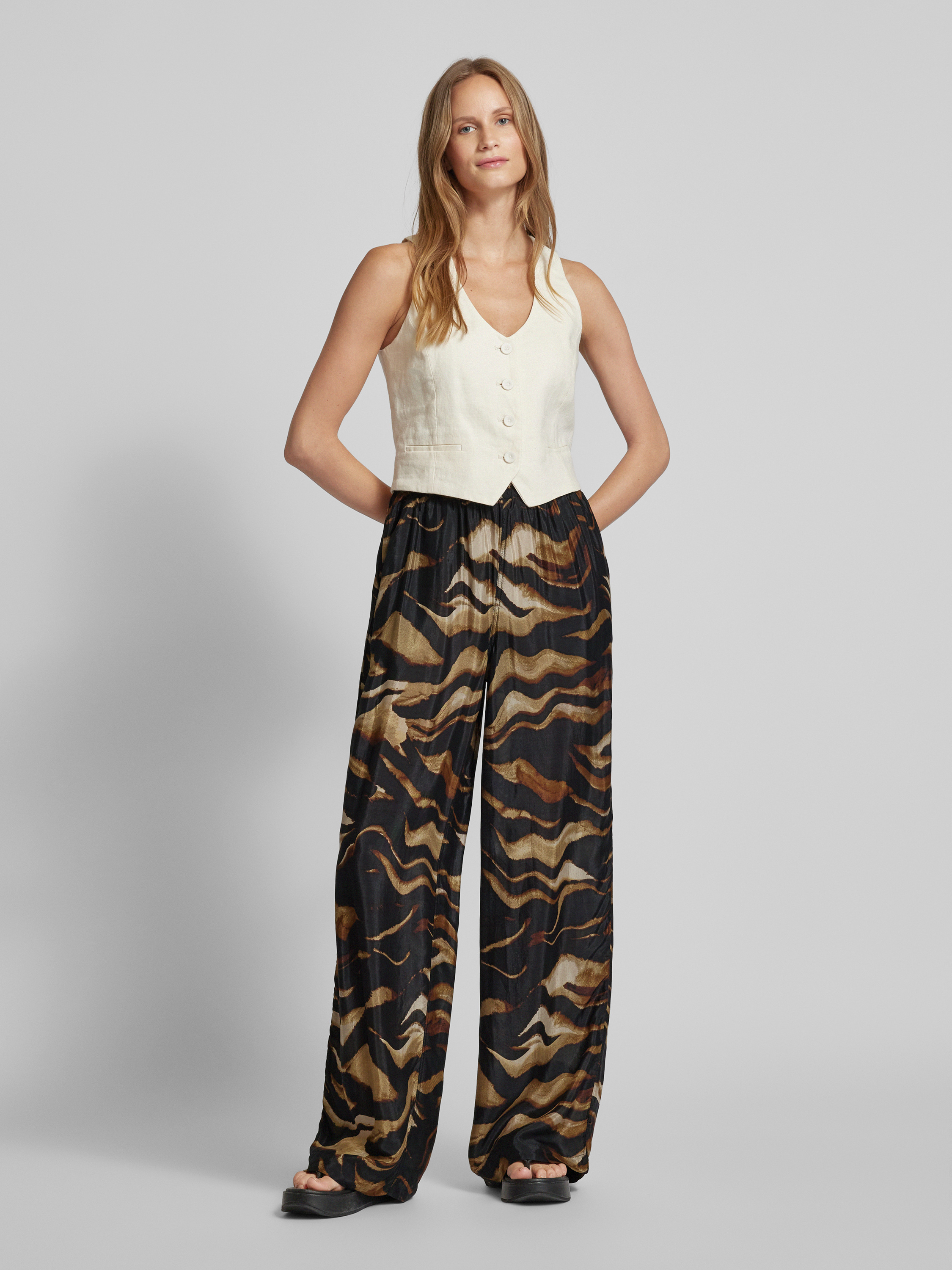 KaffeSpodnie materiałowe z szeroką nogawką i elastycznym pasem model ‘laila’ - czarny