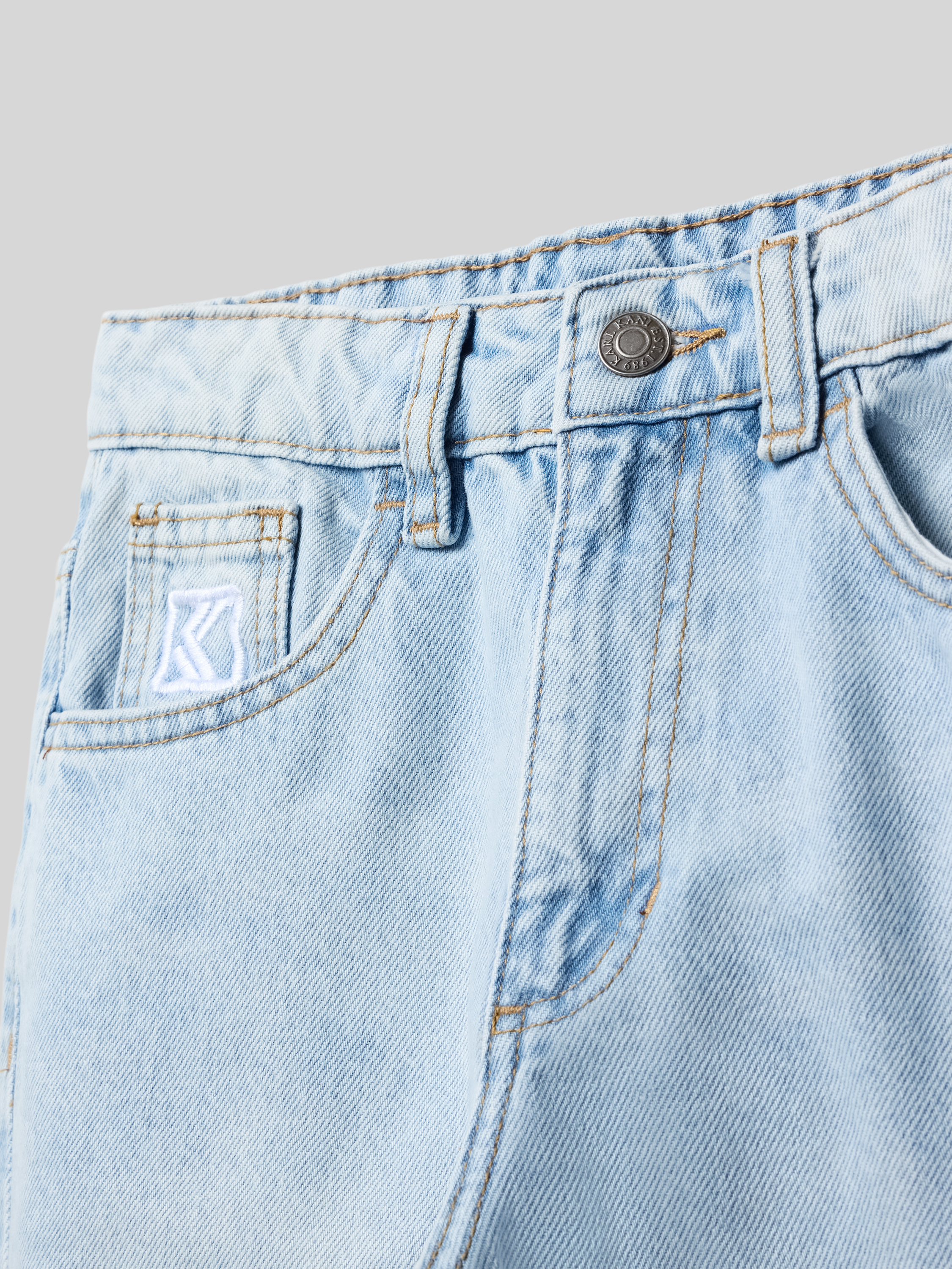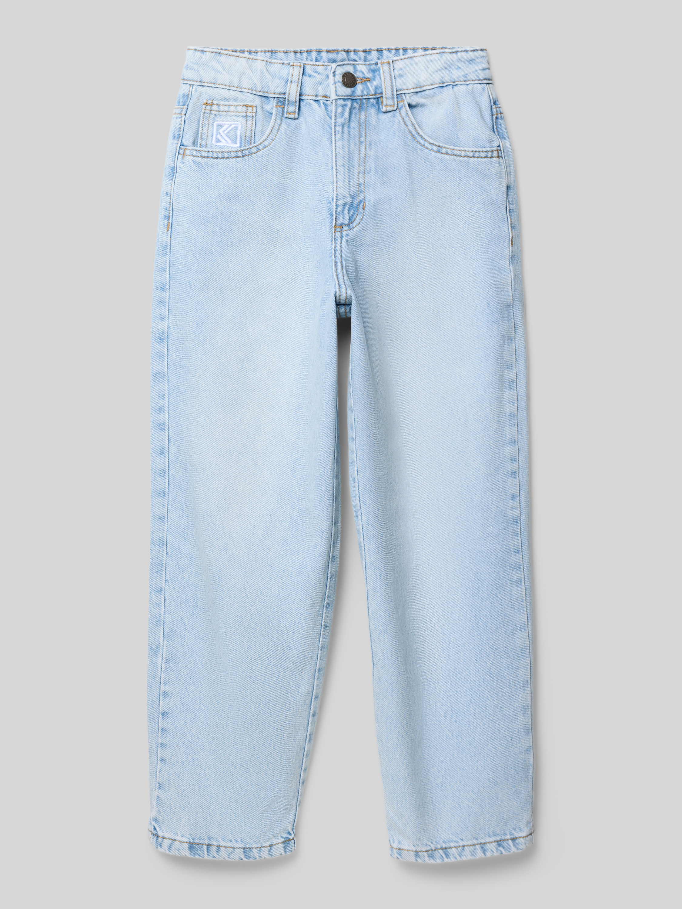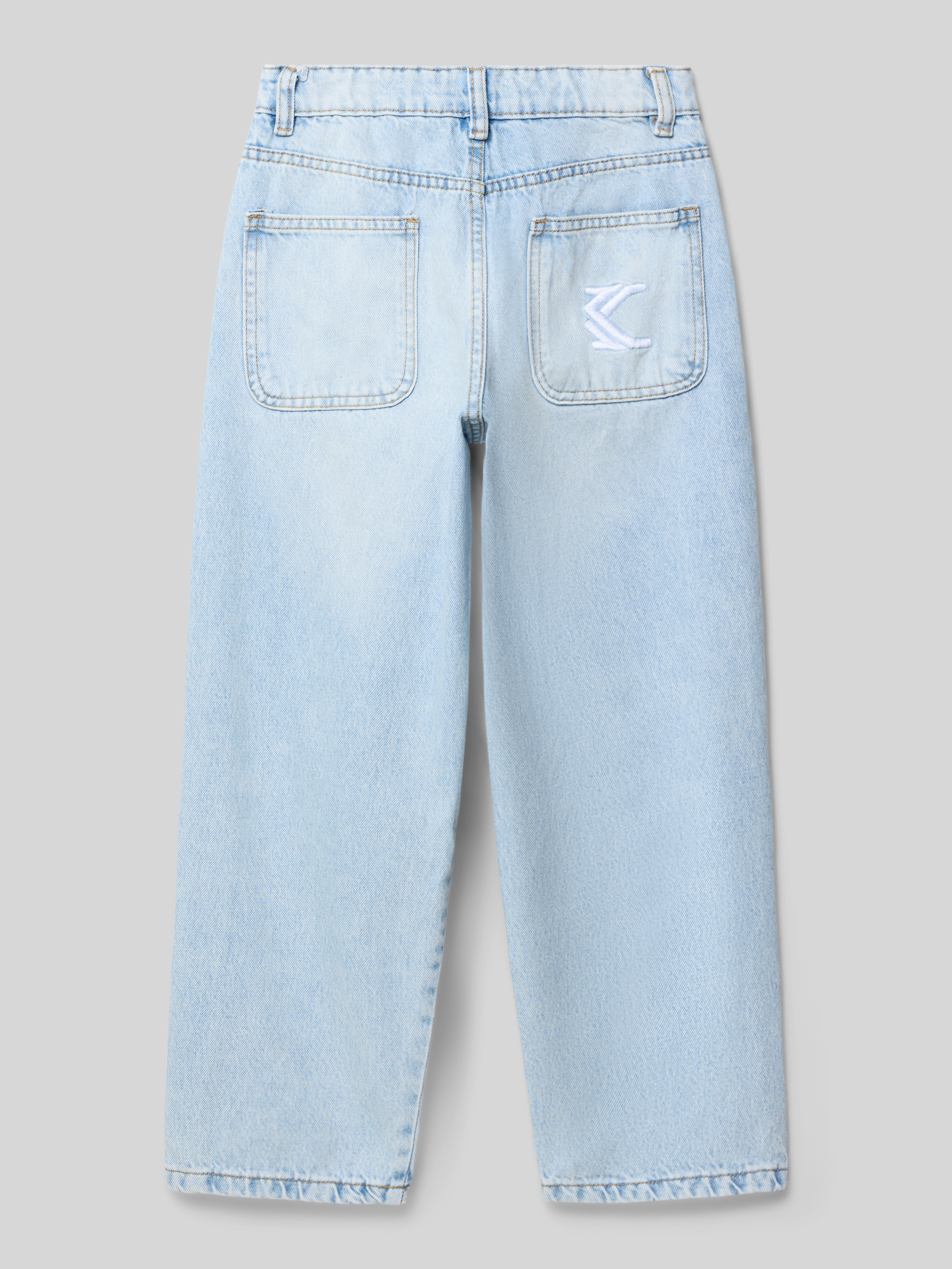 Jeansy o szerokim kroju z wyhaftowanym logo - niebieski