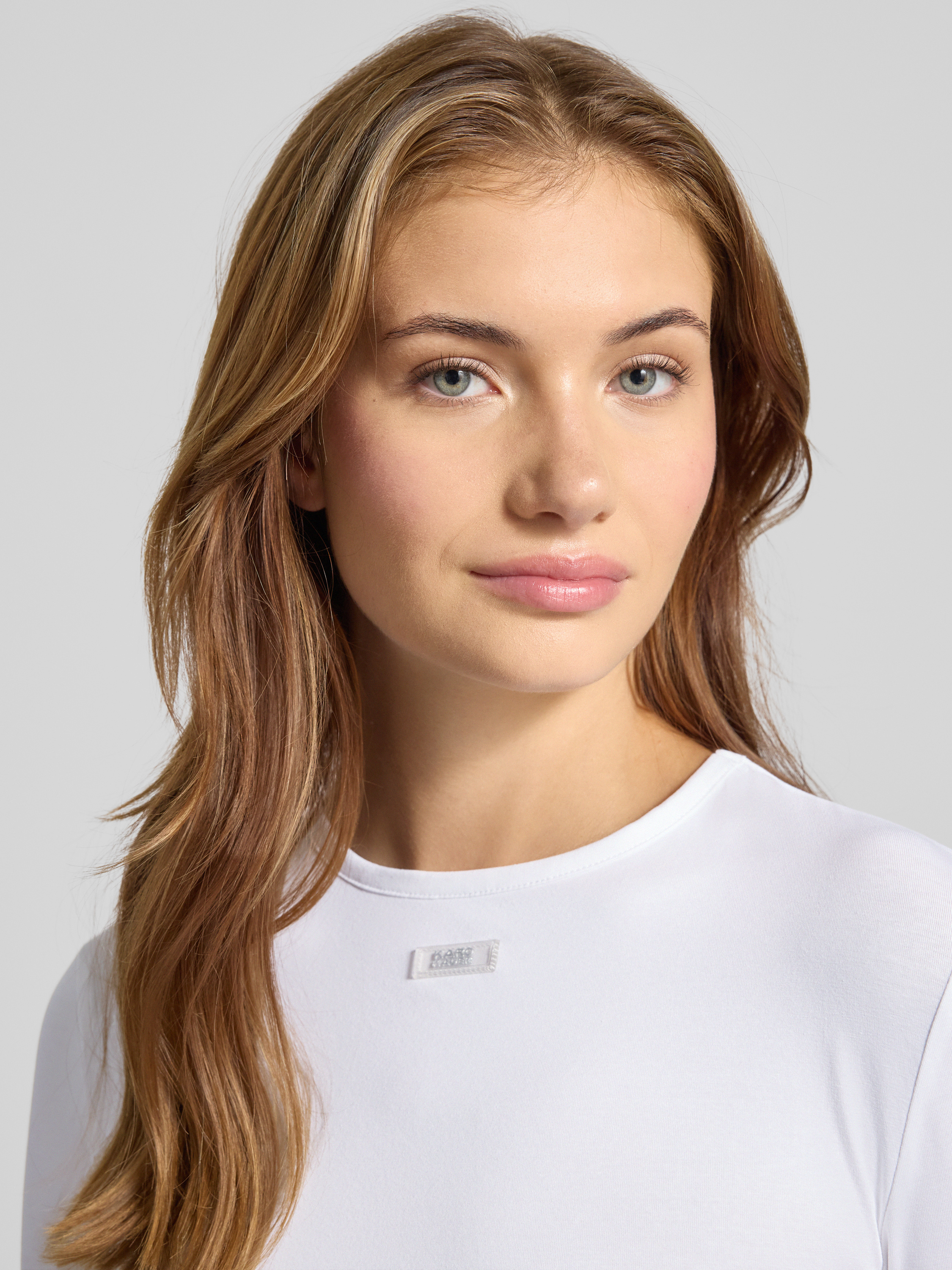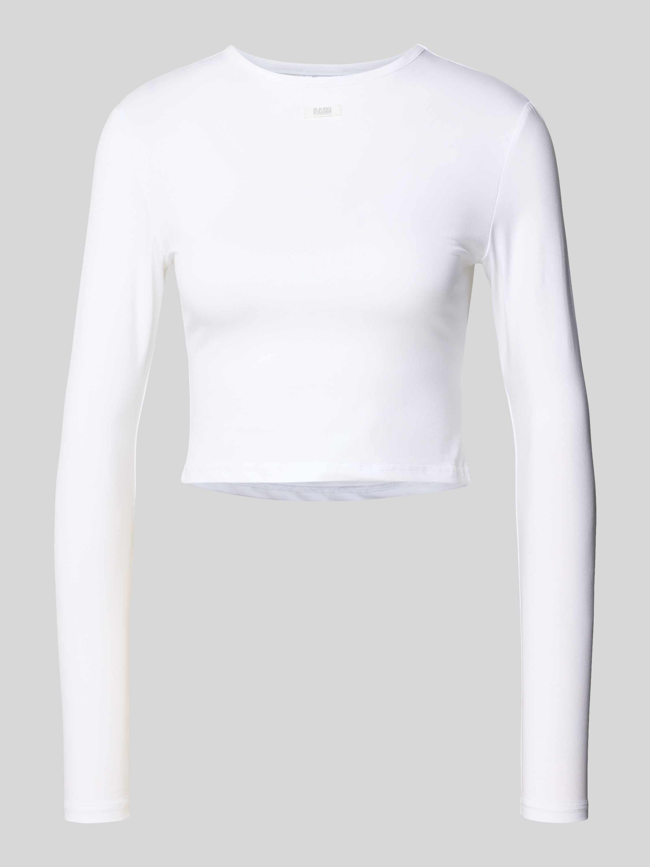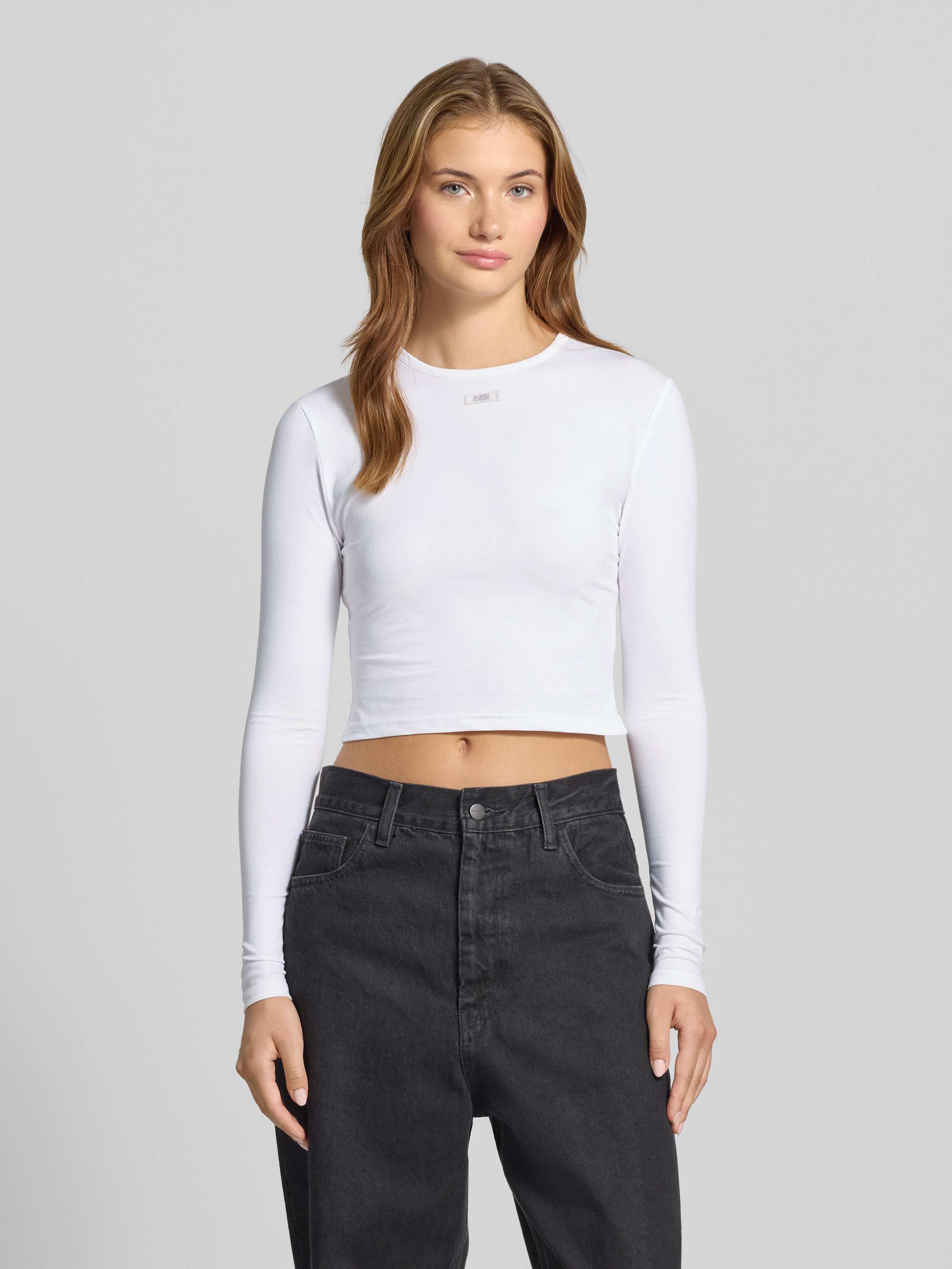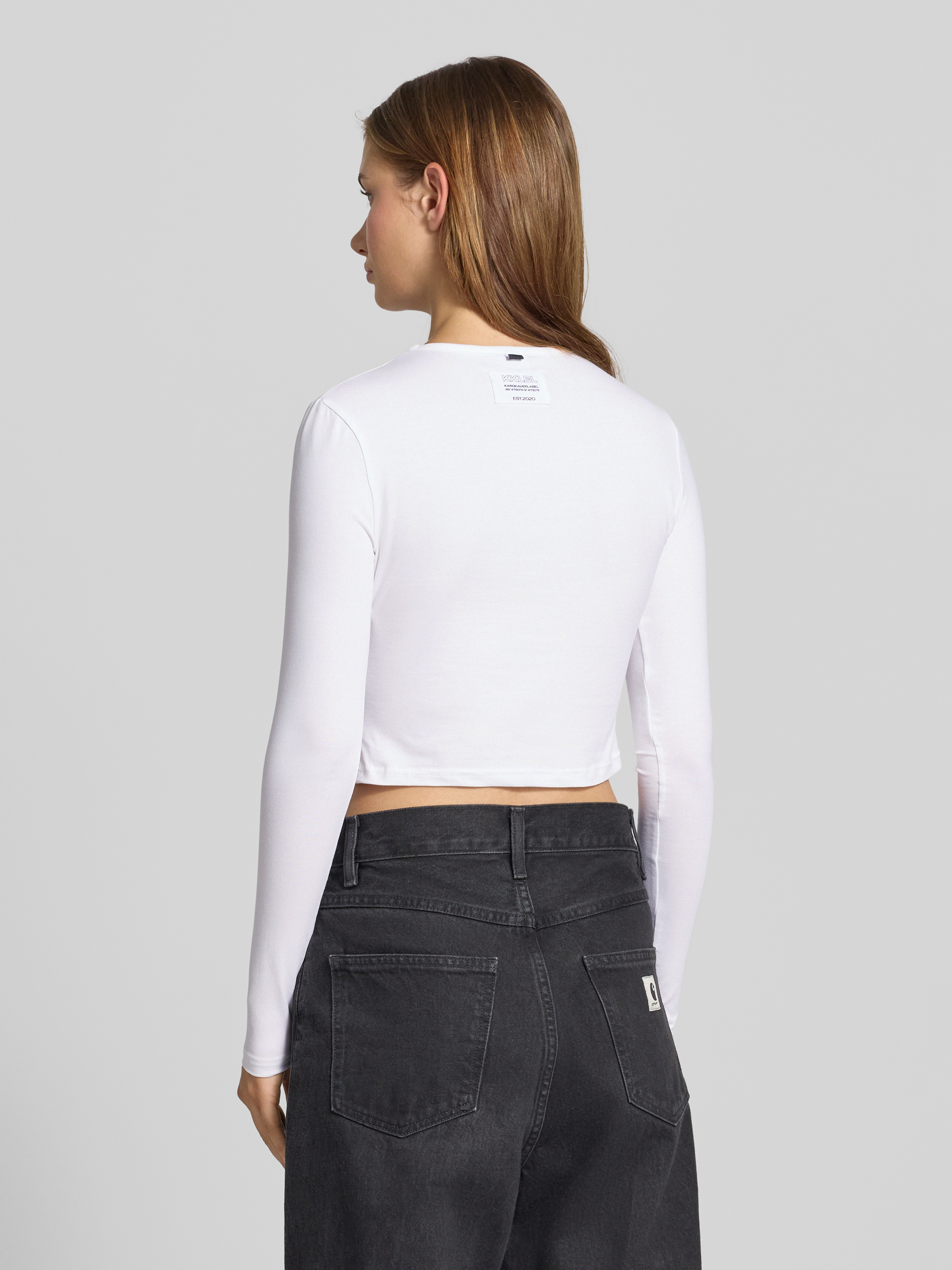 Bluzka krótka z długim rękawem i naszywką z logo - biały