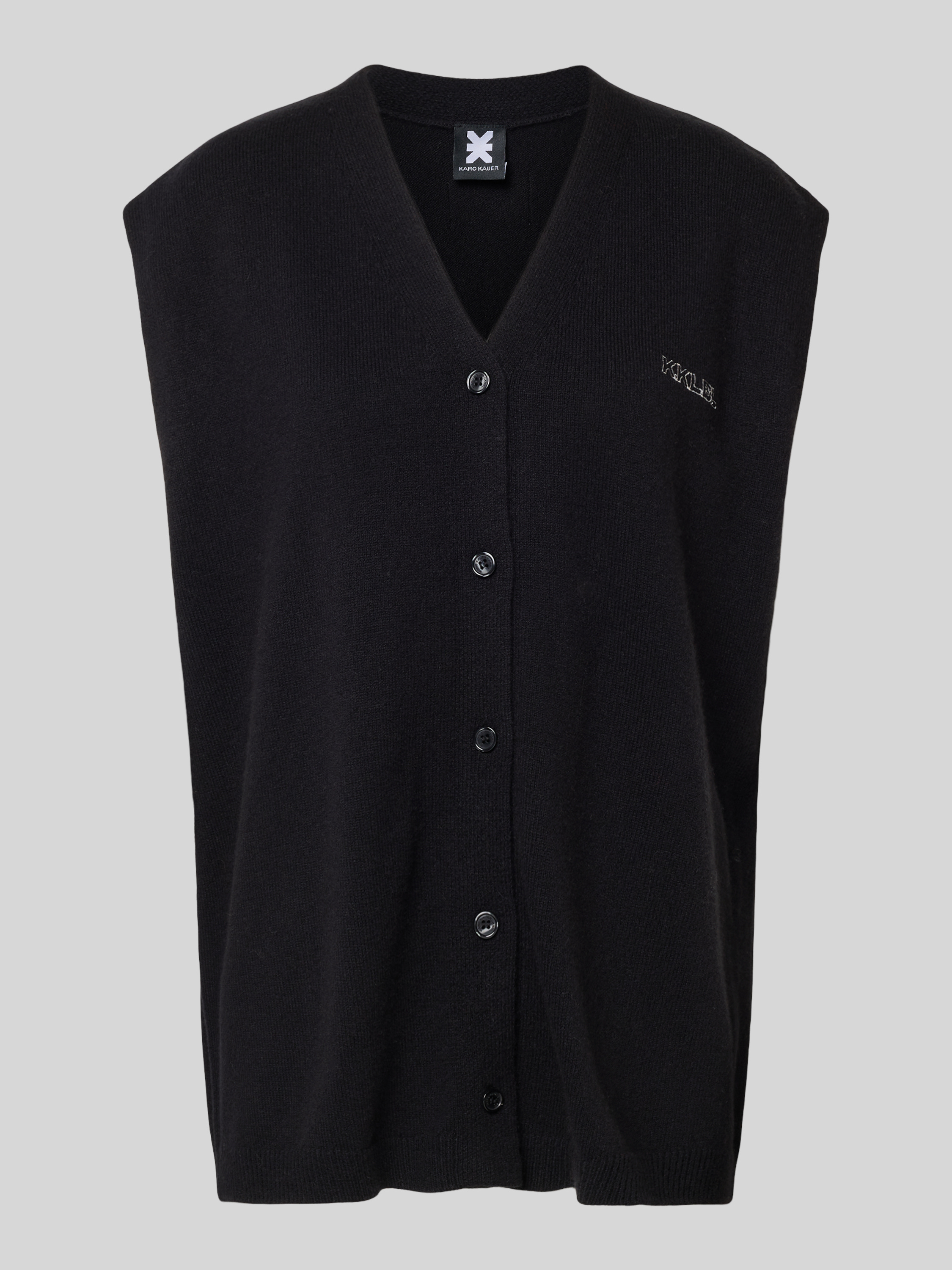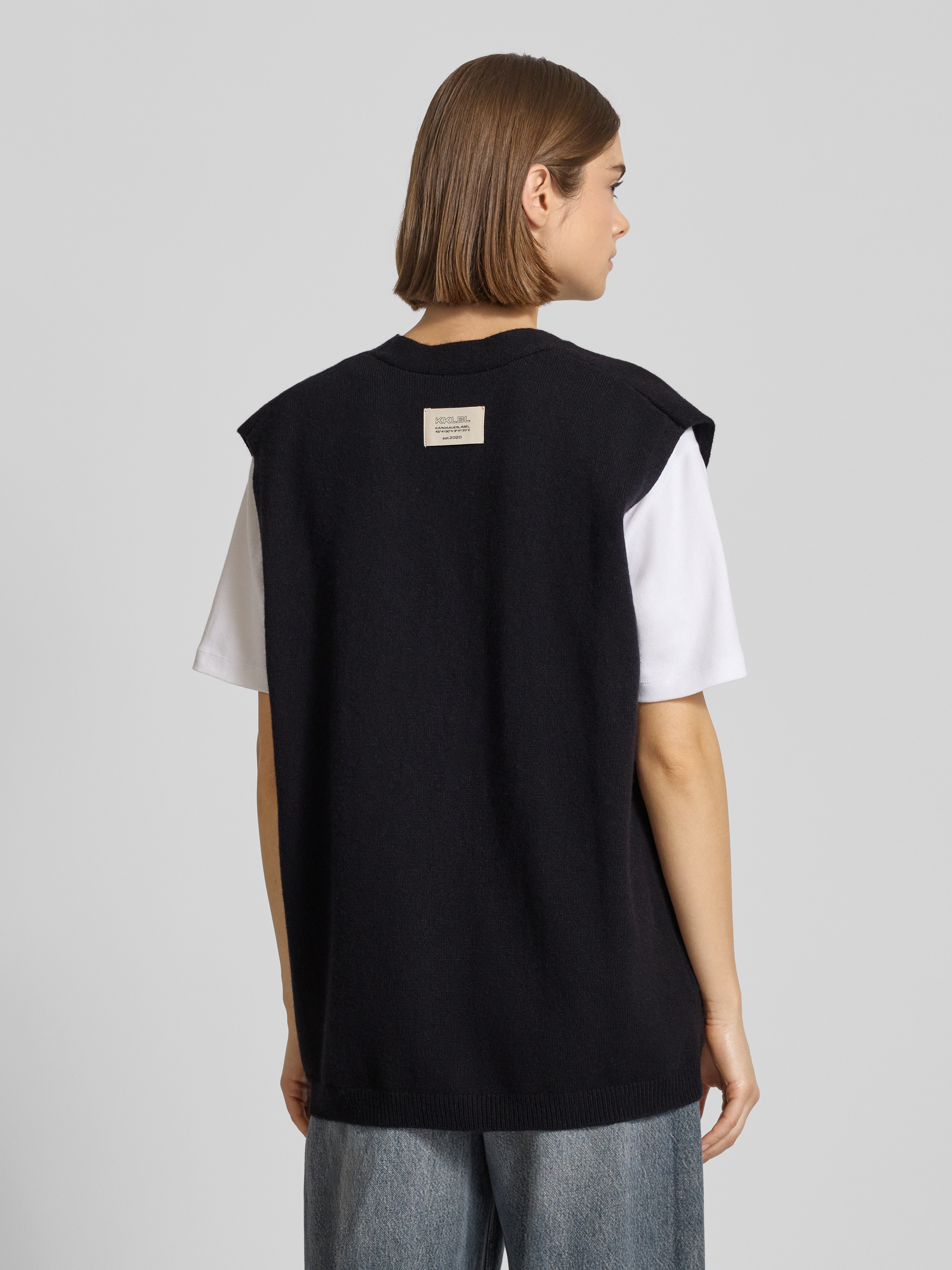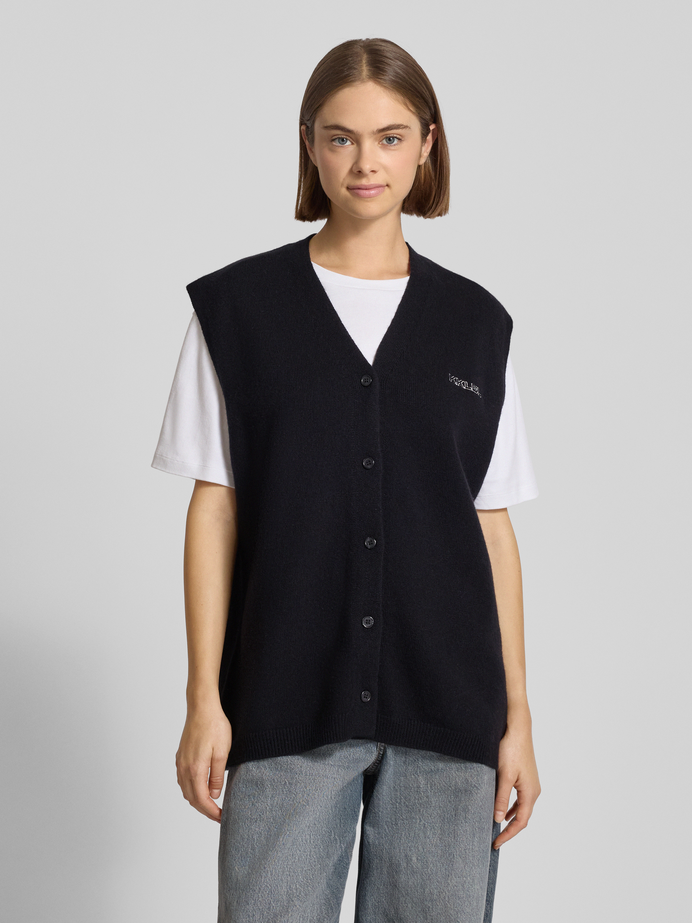 Kamizelka o kroju oversized z dzianiny z mieszanki wełny z dekoltem w serek - czarny