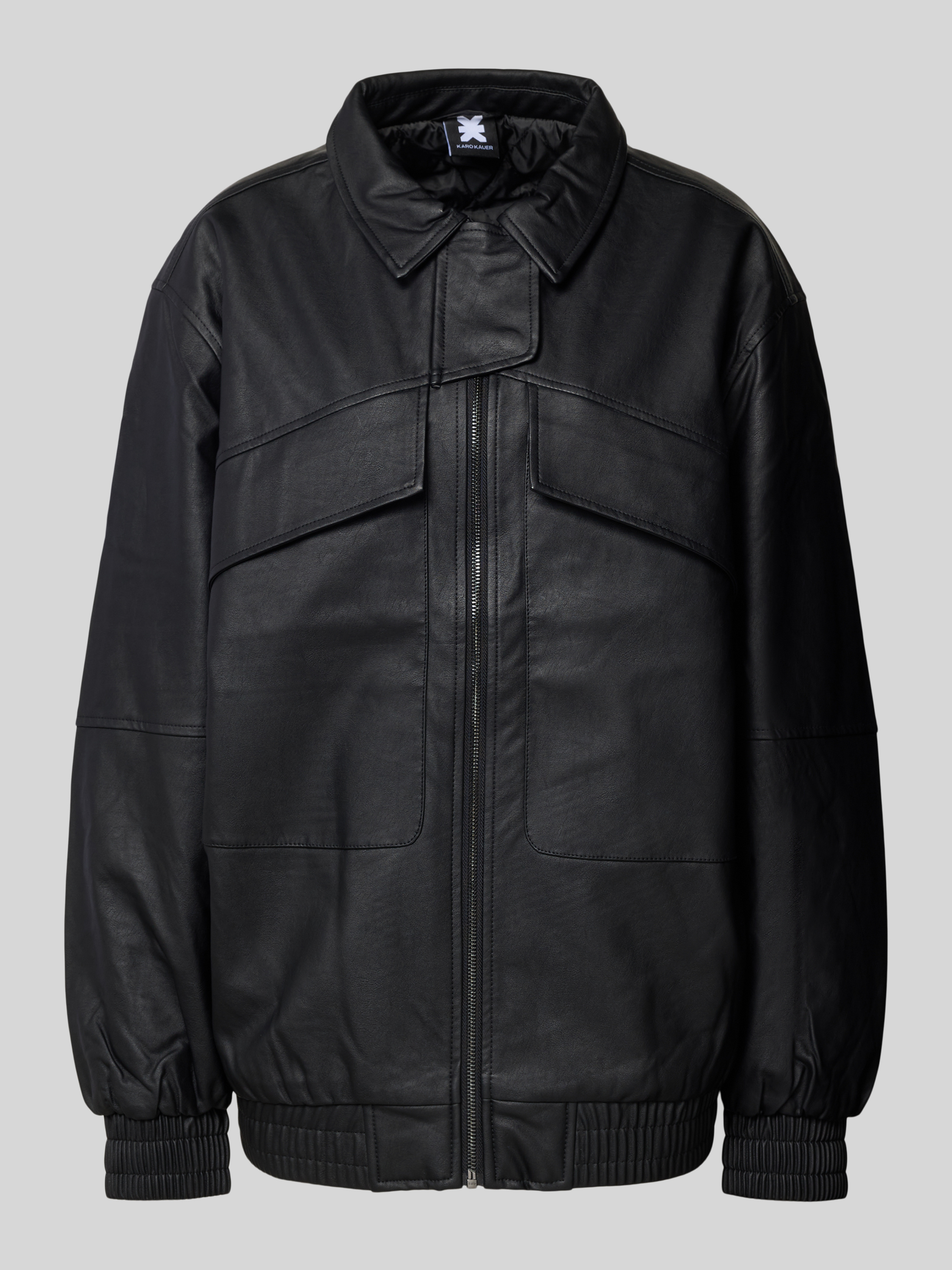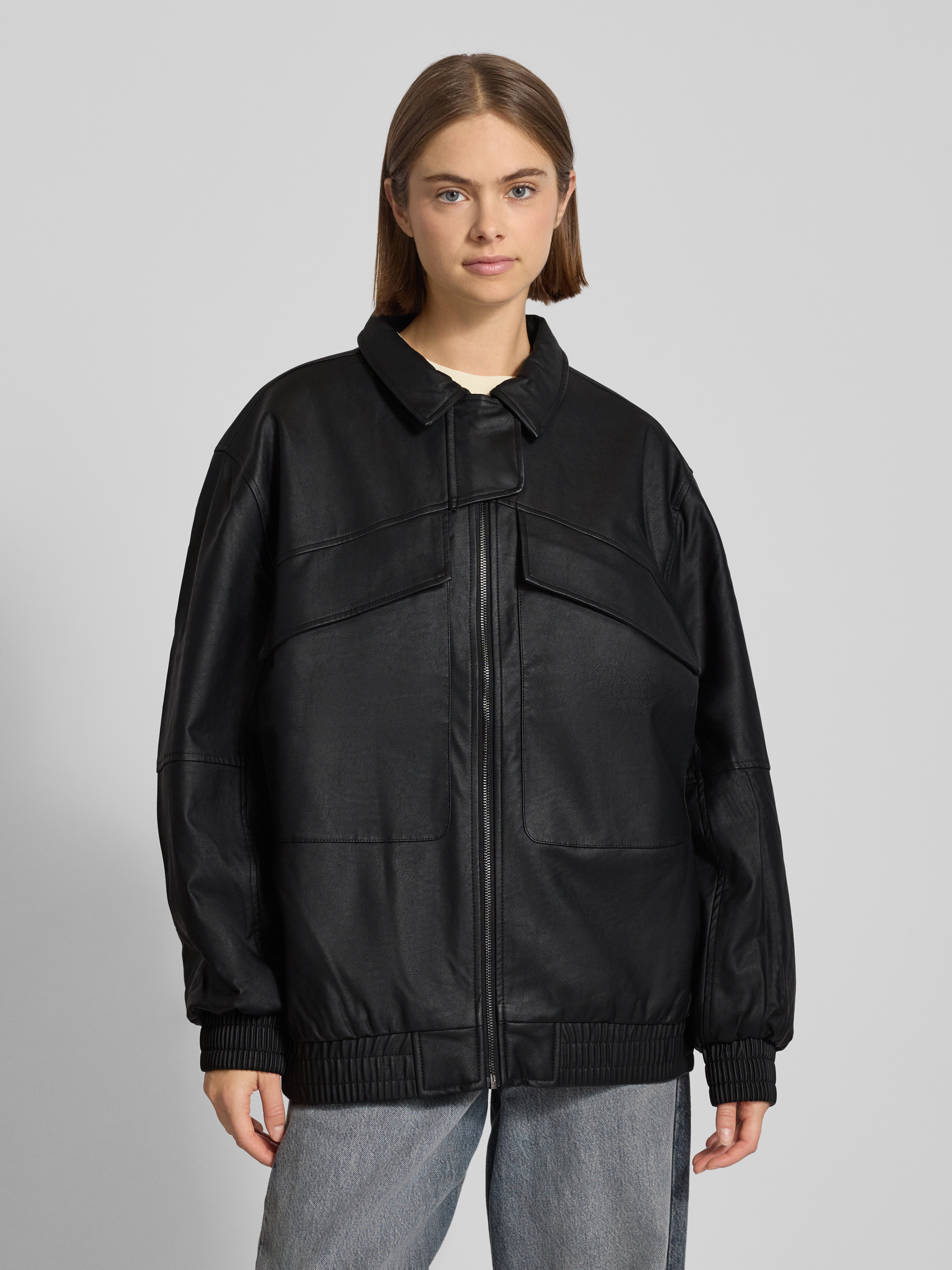 Kurtka o kroju oversized z imitacji skóry - czarny
