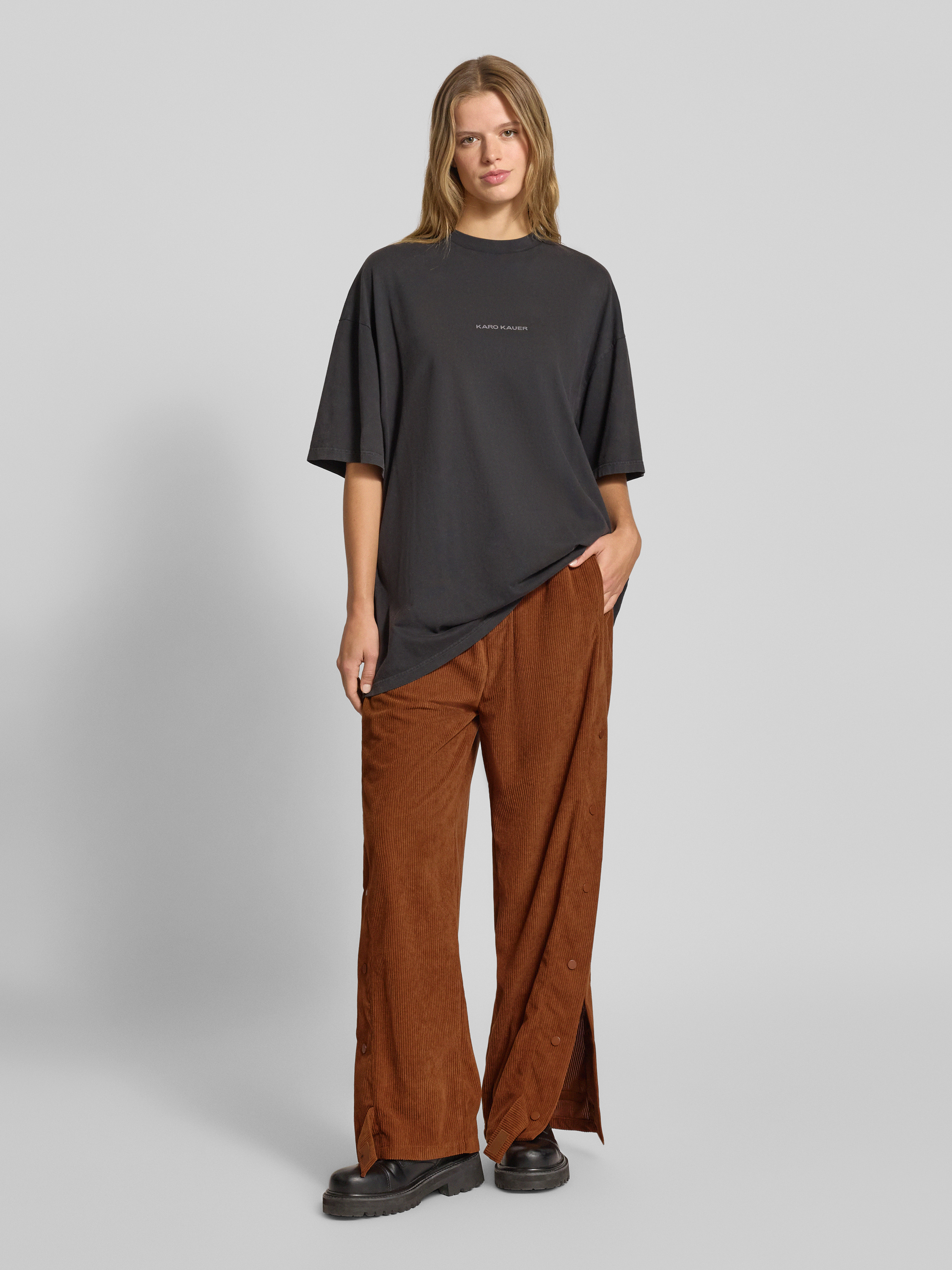 Spodnie sztruksowe z elastycznym pasem - średniobrązowy