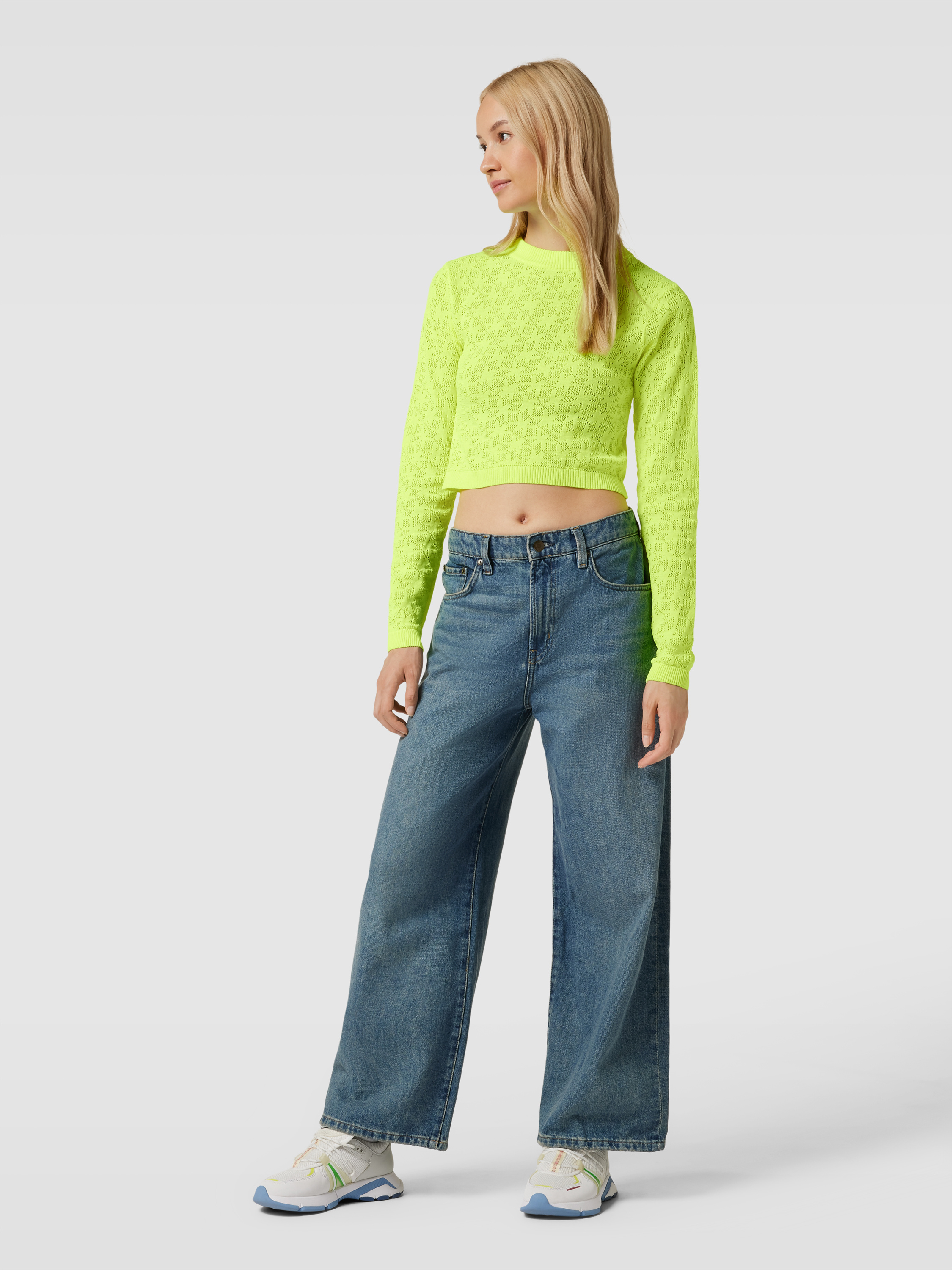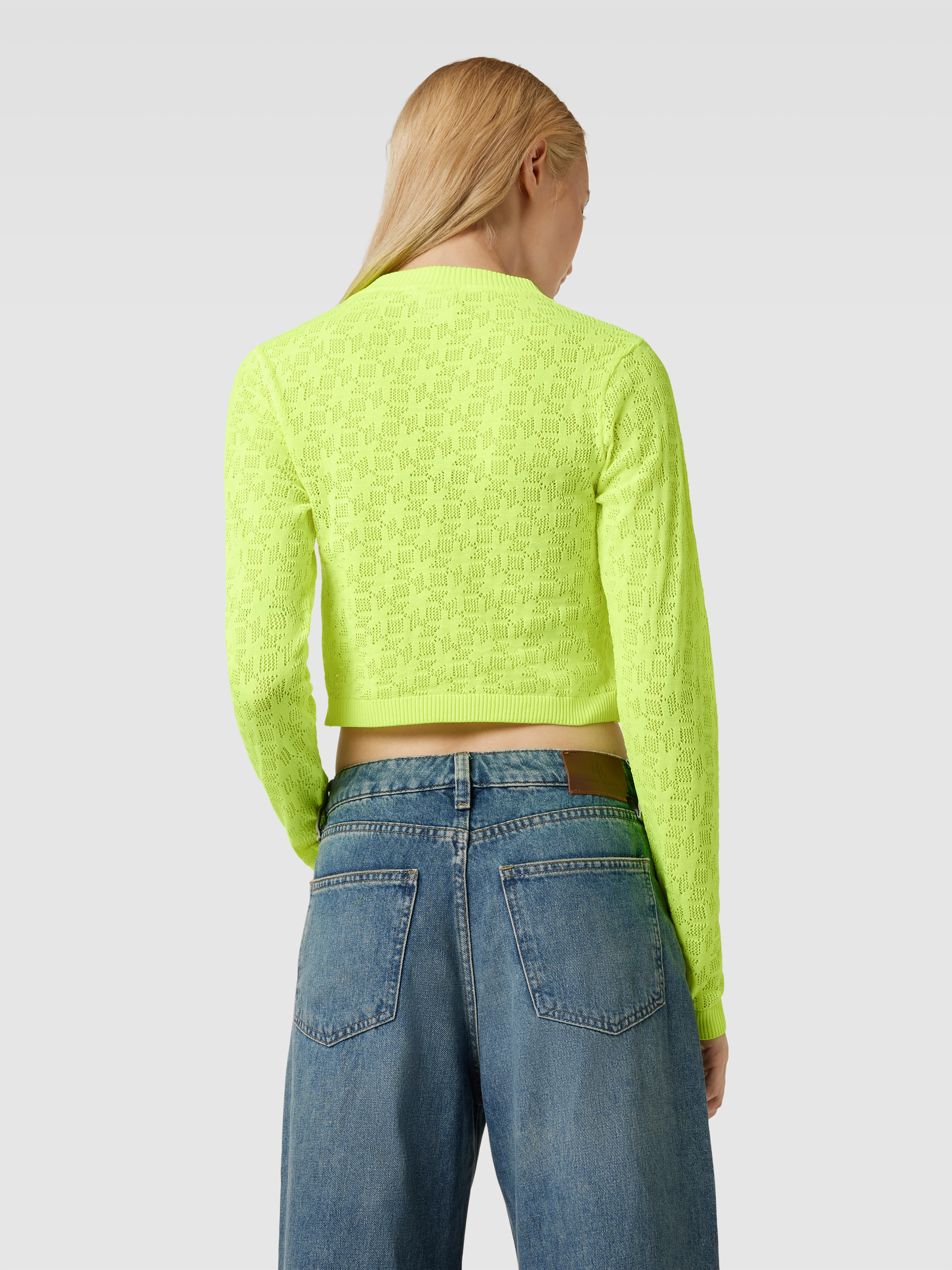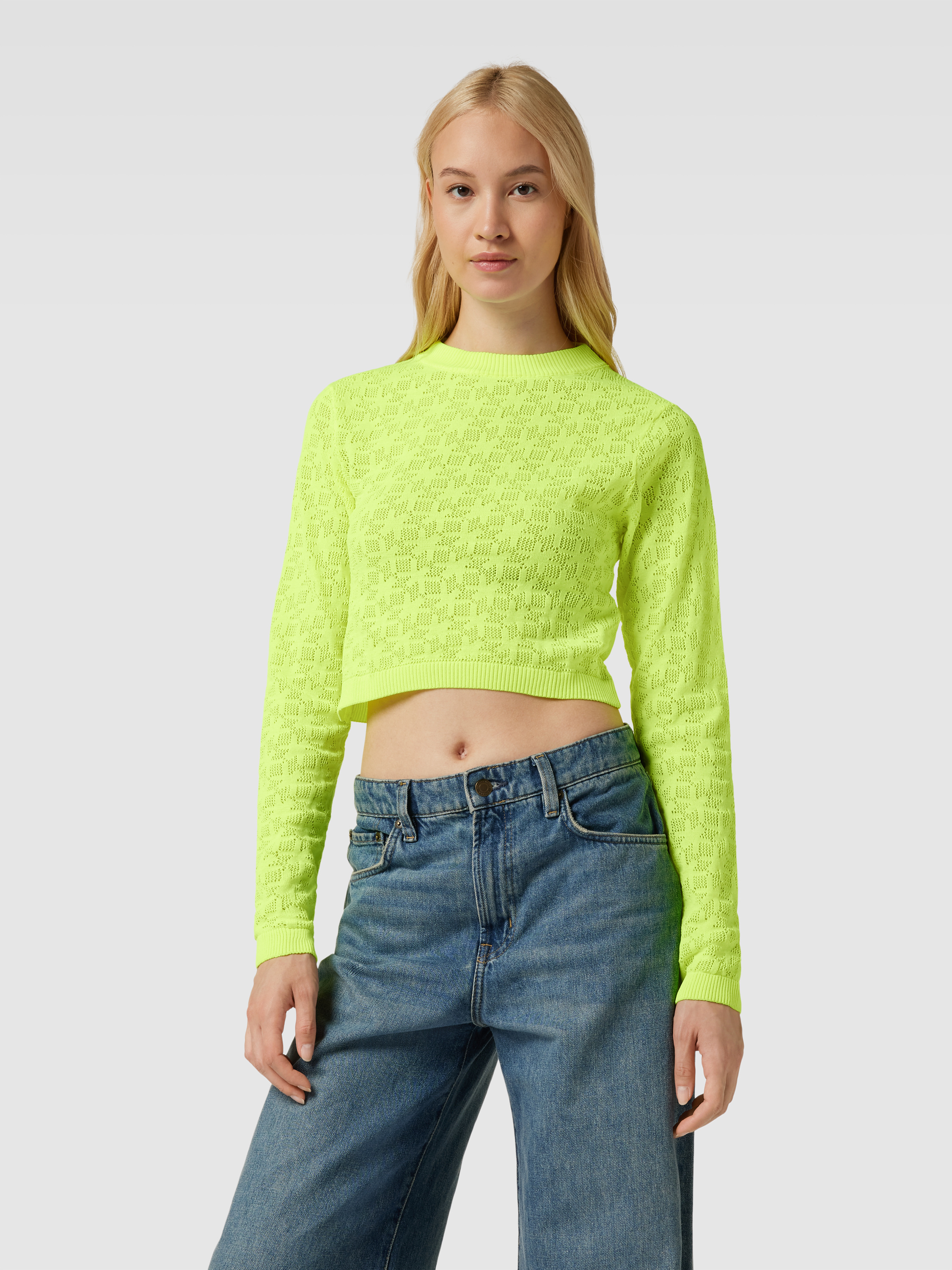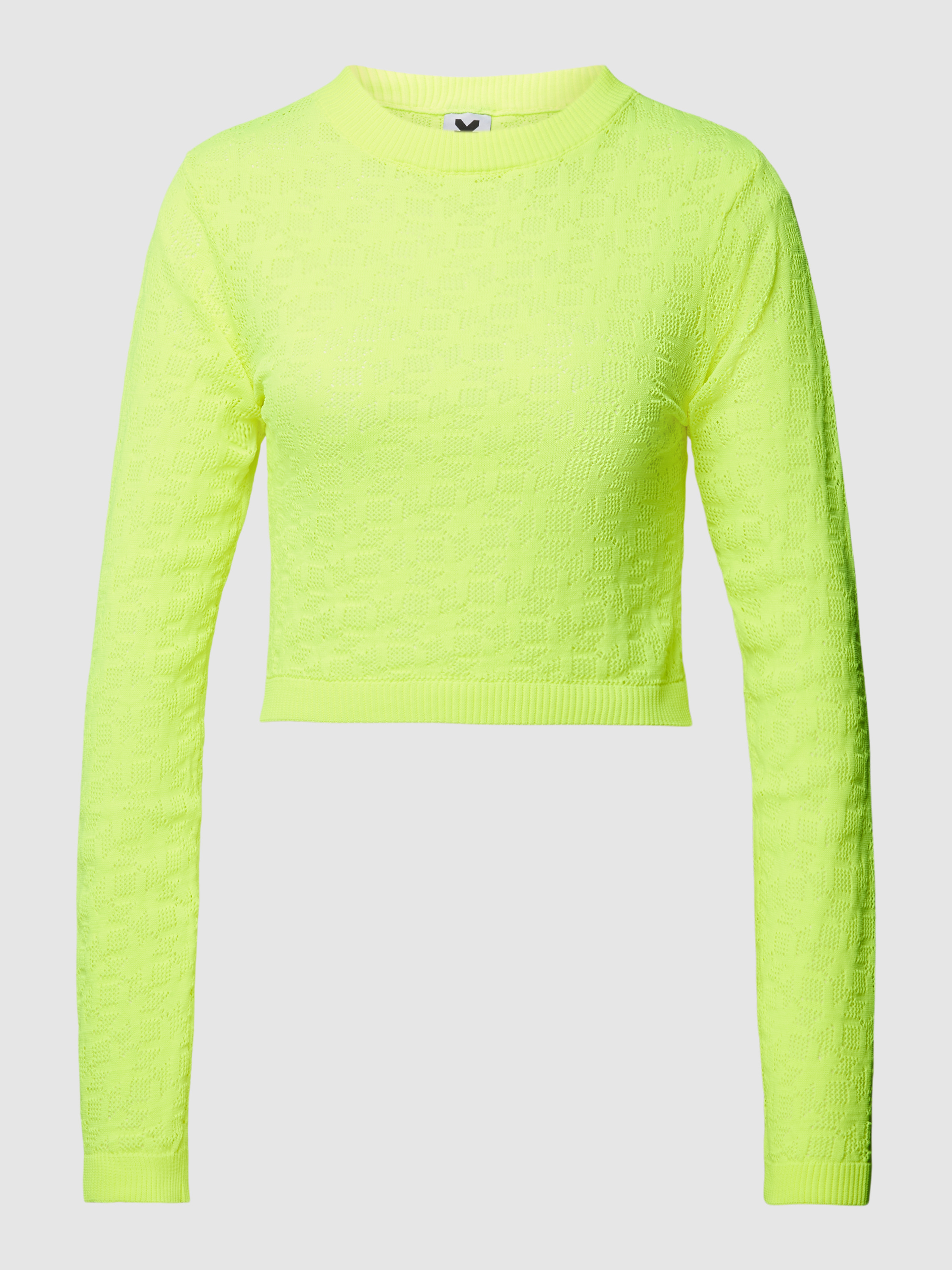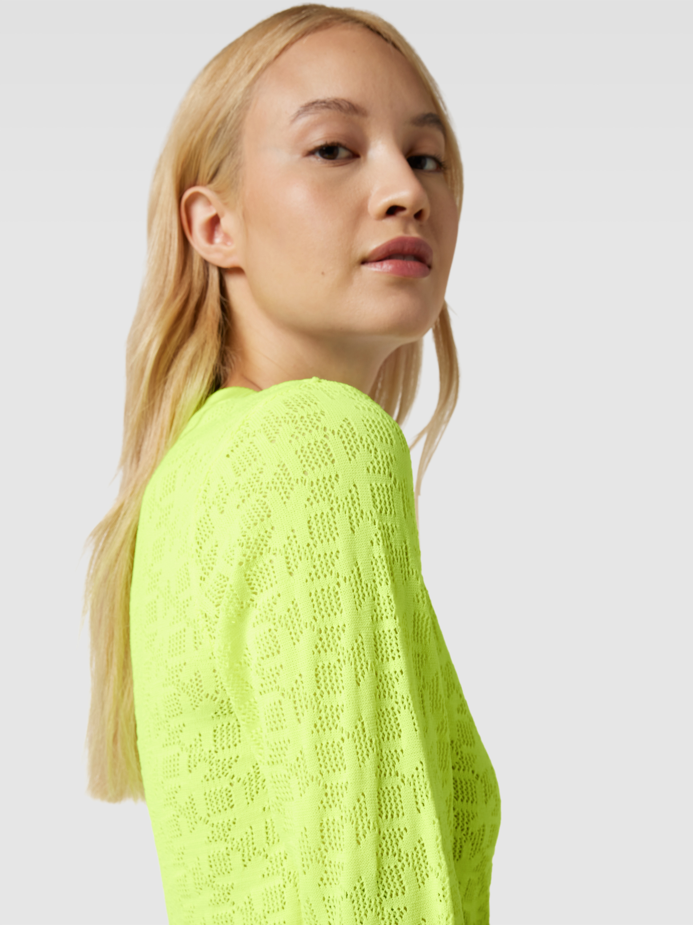 Sweter z dzianiny z okrągłym dekoltem - neonowy żółty