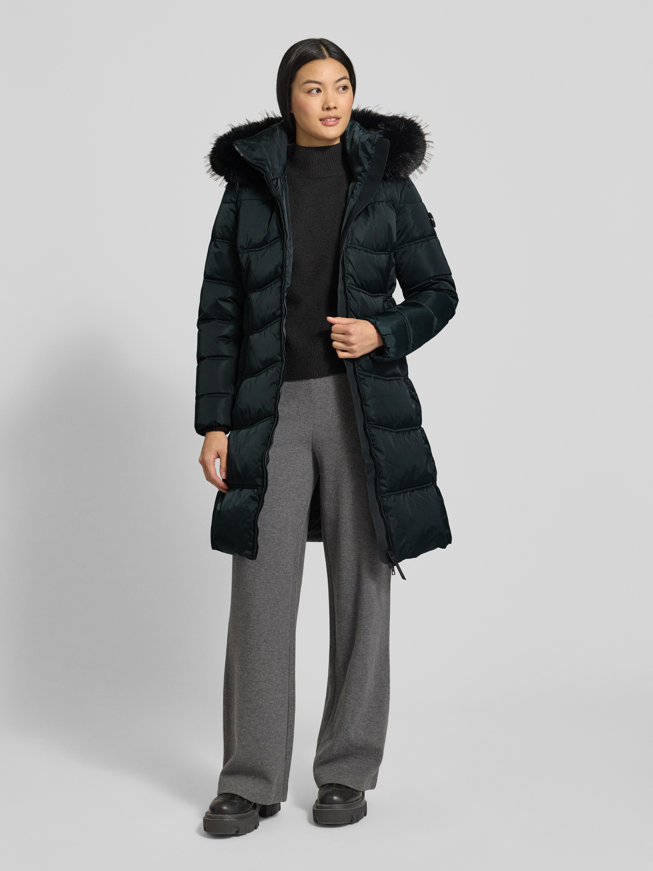Płaszcz pikowany o kroju regular fit z obszyciem ze sztucznego futra model ‘AKKIE’ - antracytowy