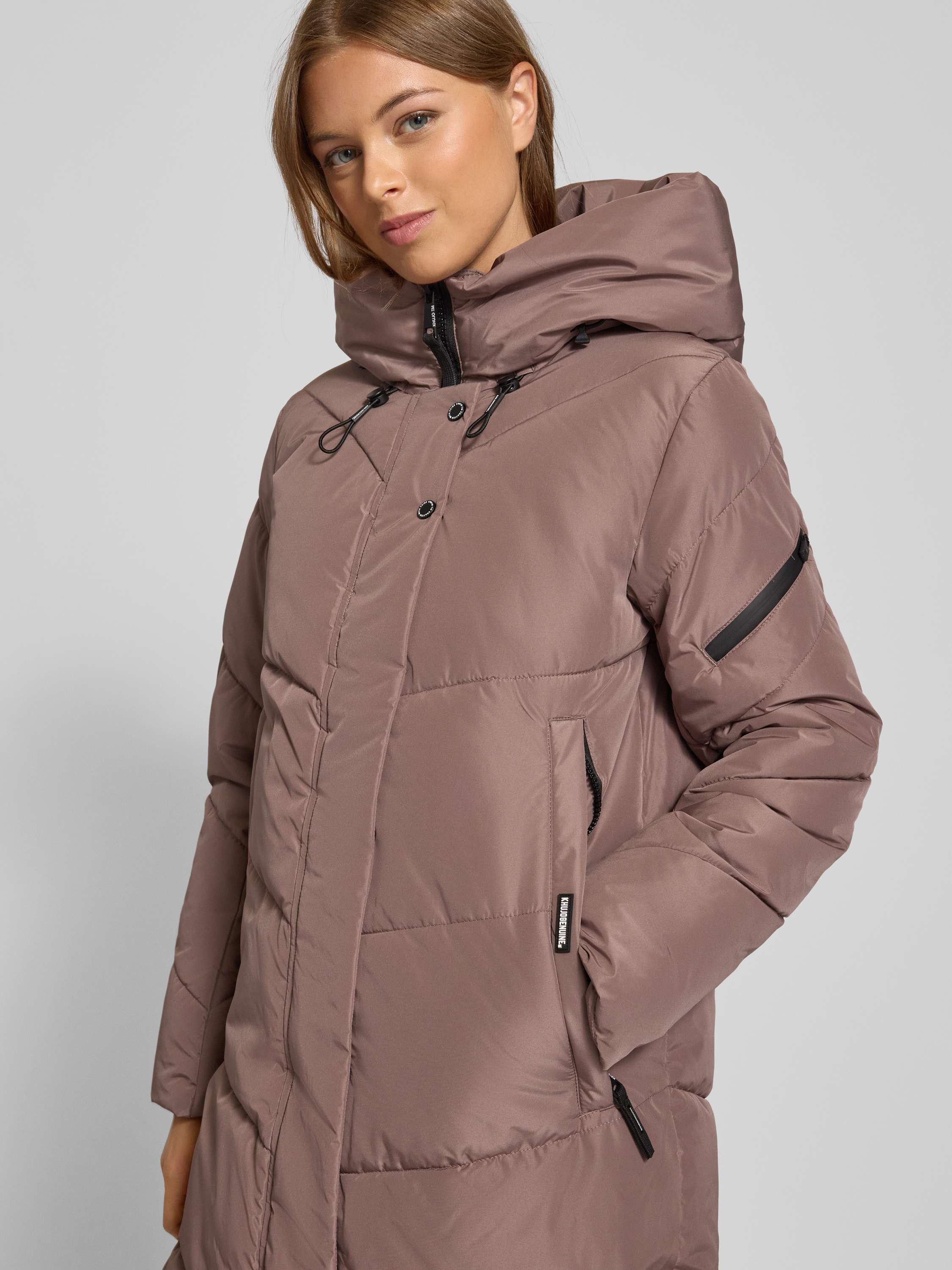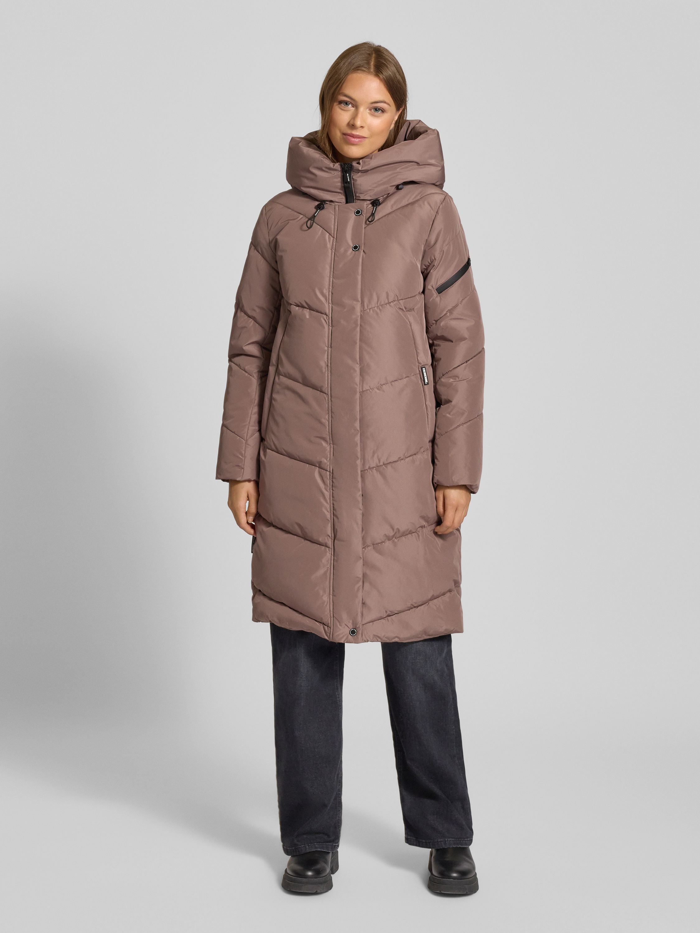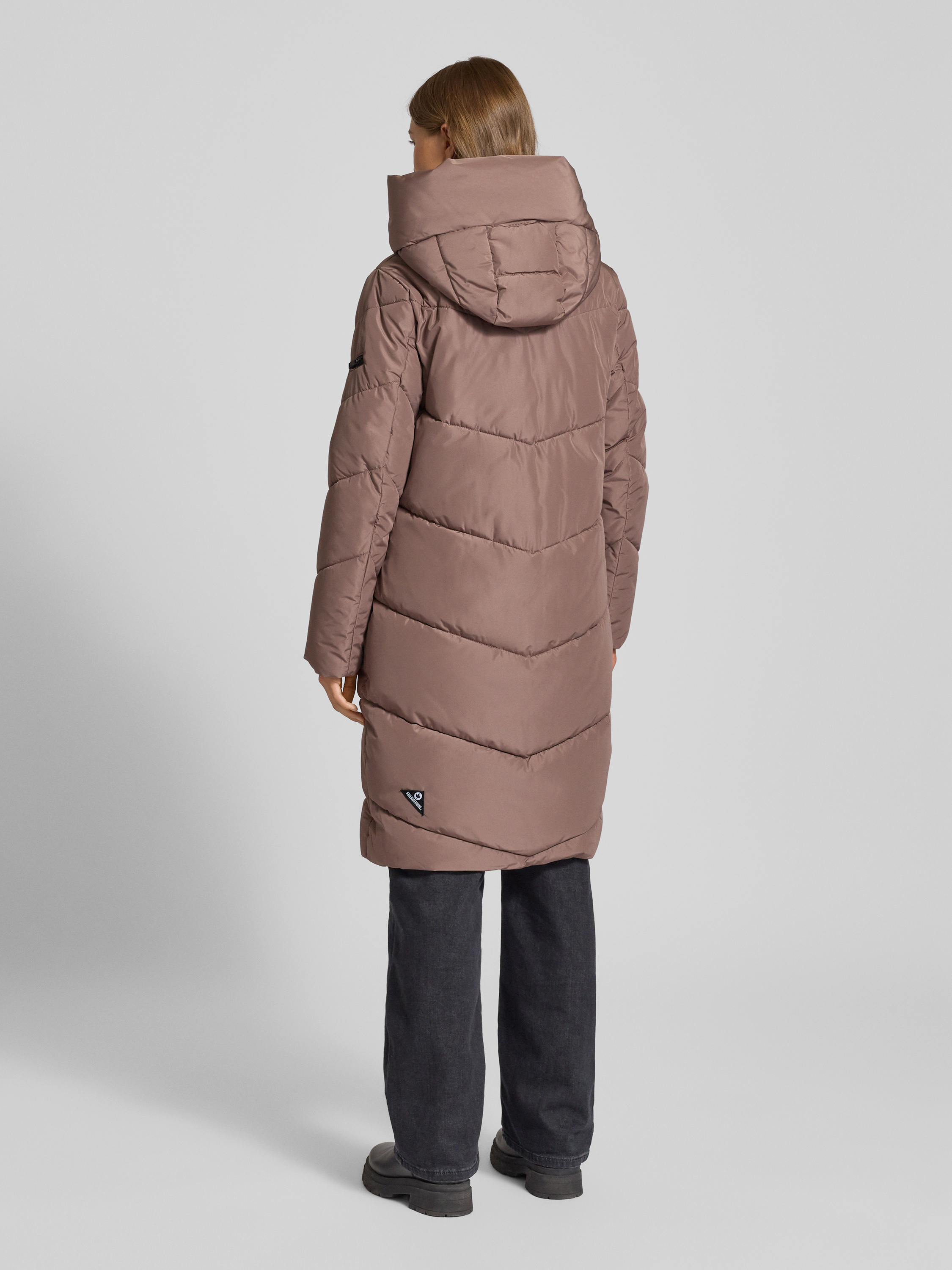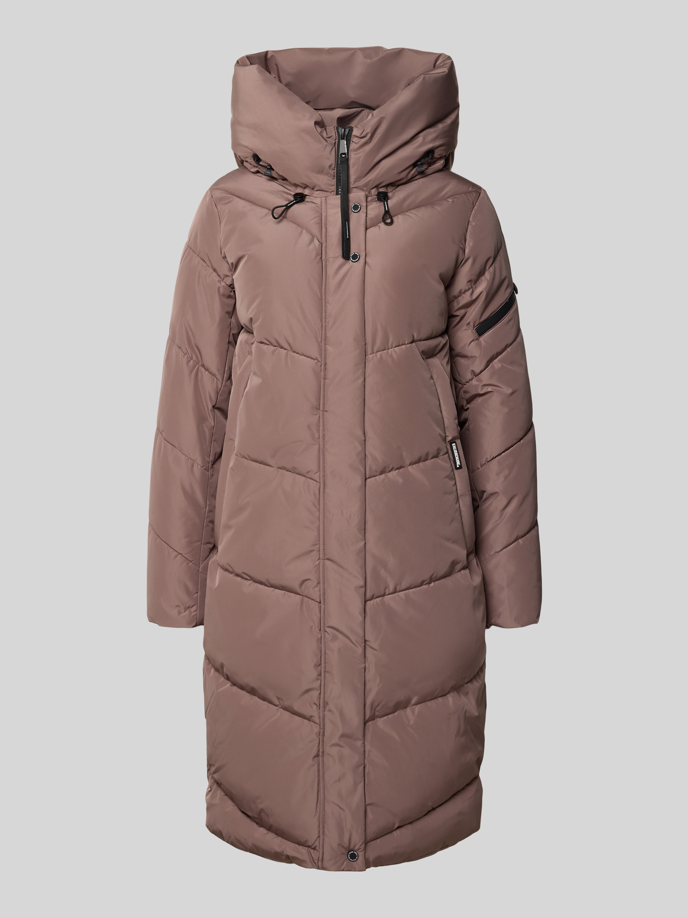 Płaszcz pikowany z kapturem model ‘JANGE’ - szarobrązowy