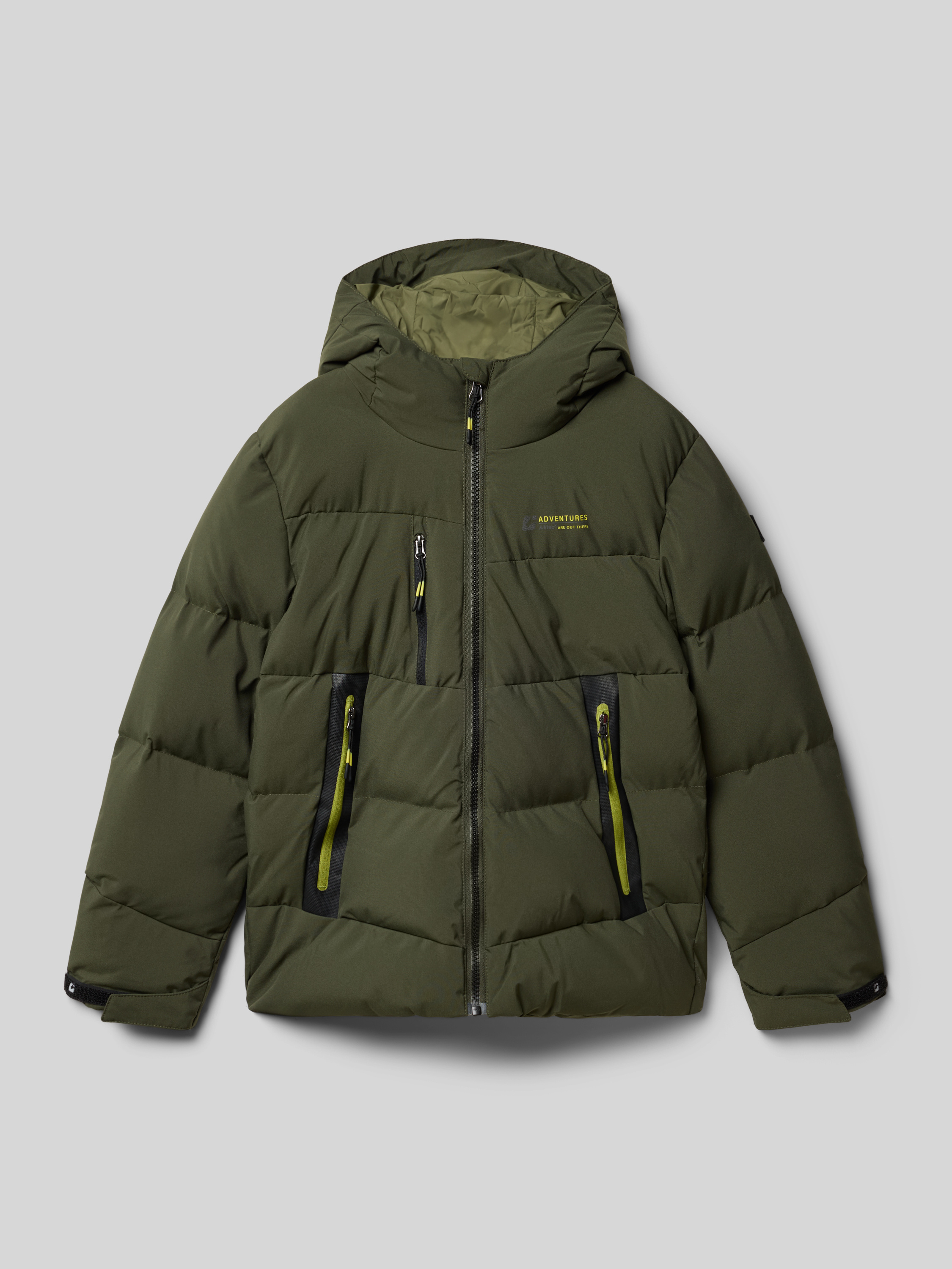 Pikowana kurtka z kapturem z nadrukiem z logo - oliwkowy