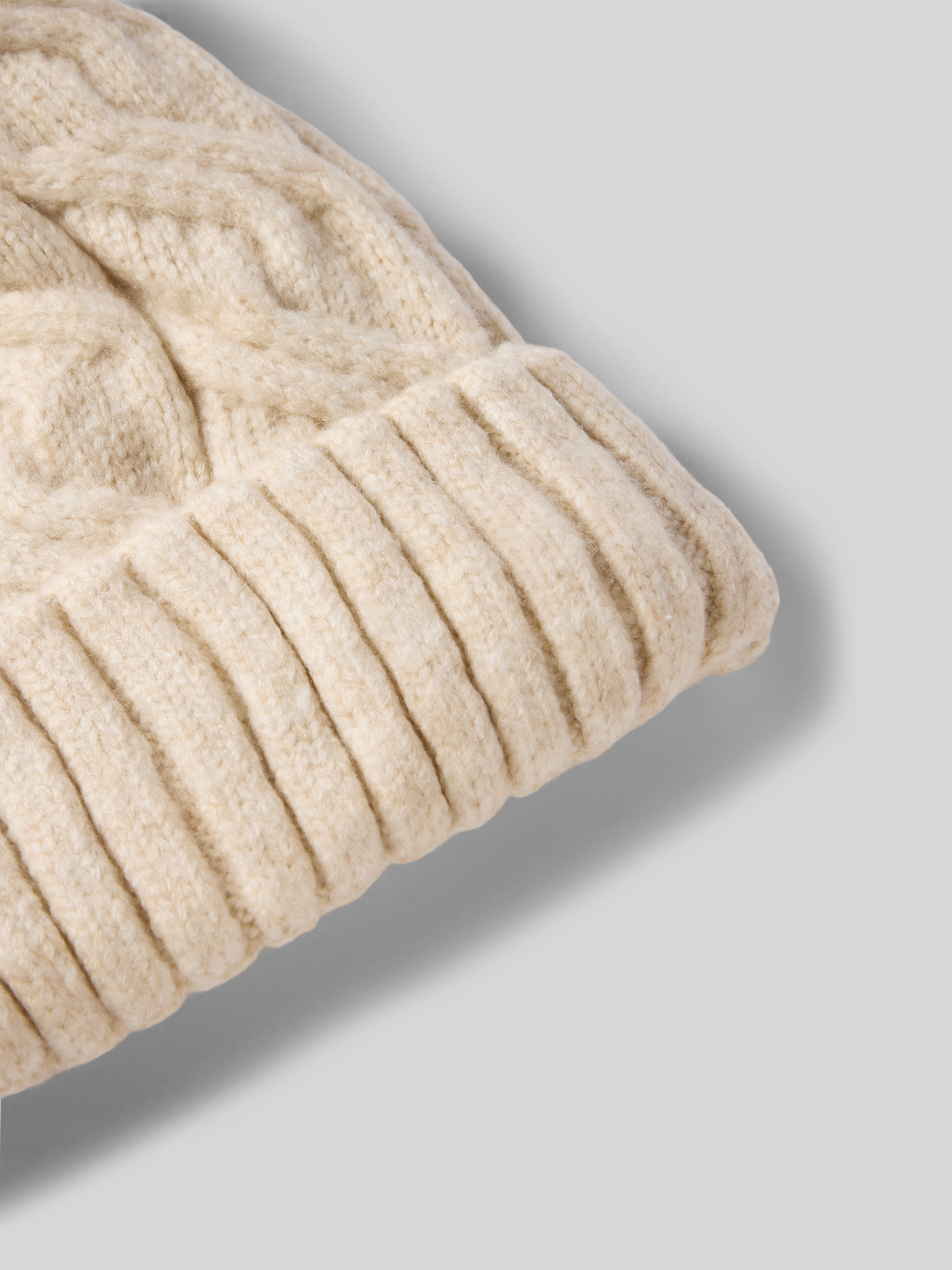 Czapka z dzianiny z szerokim brzegiem i pomponem - beżowy