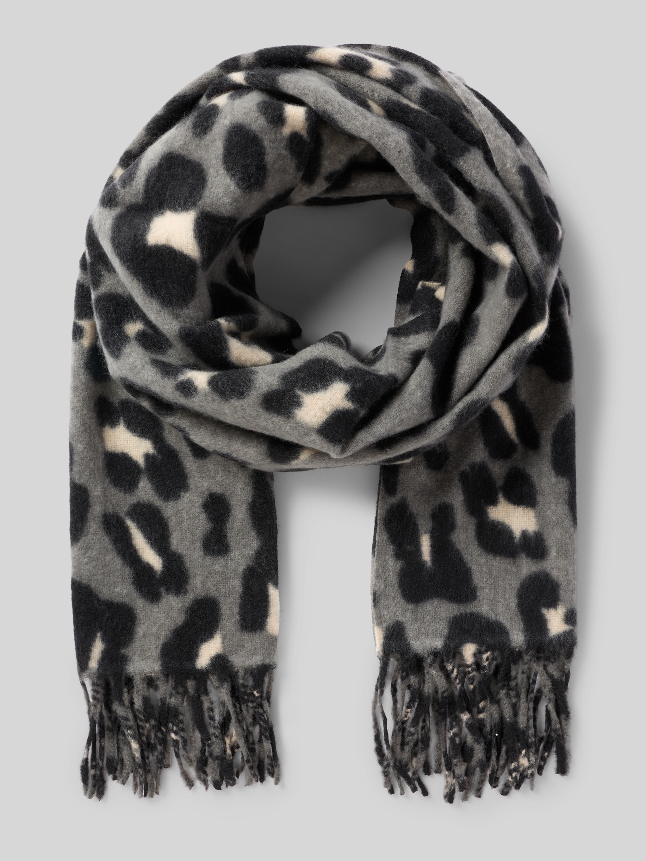 Szal ze zwierzęcym wzorem i frędzlami model ‘XXL Leo’ - średnioszary