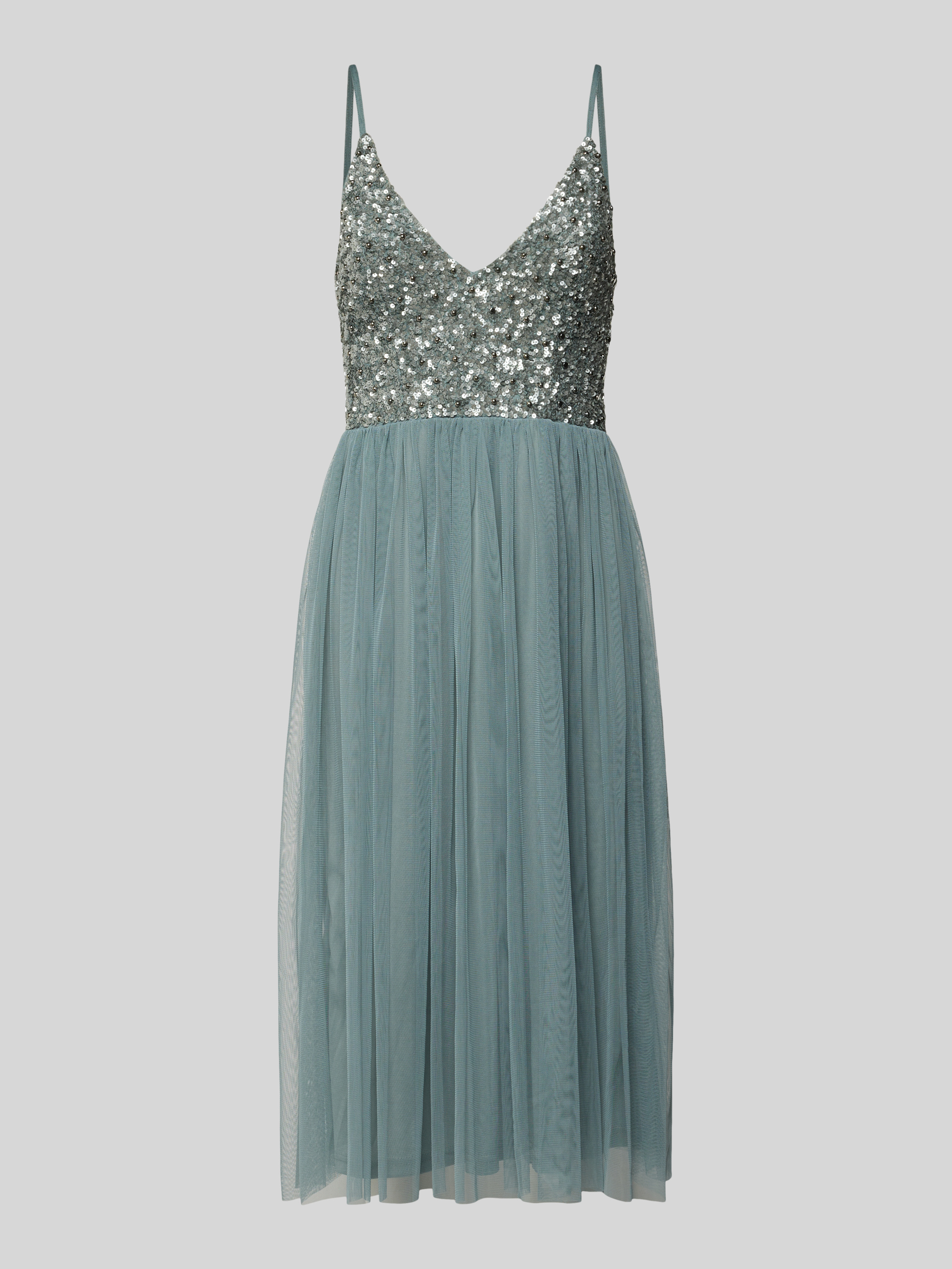 Sukienka koktajlowa z cekinowym obszyciem - średnioszary