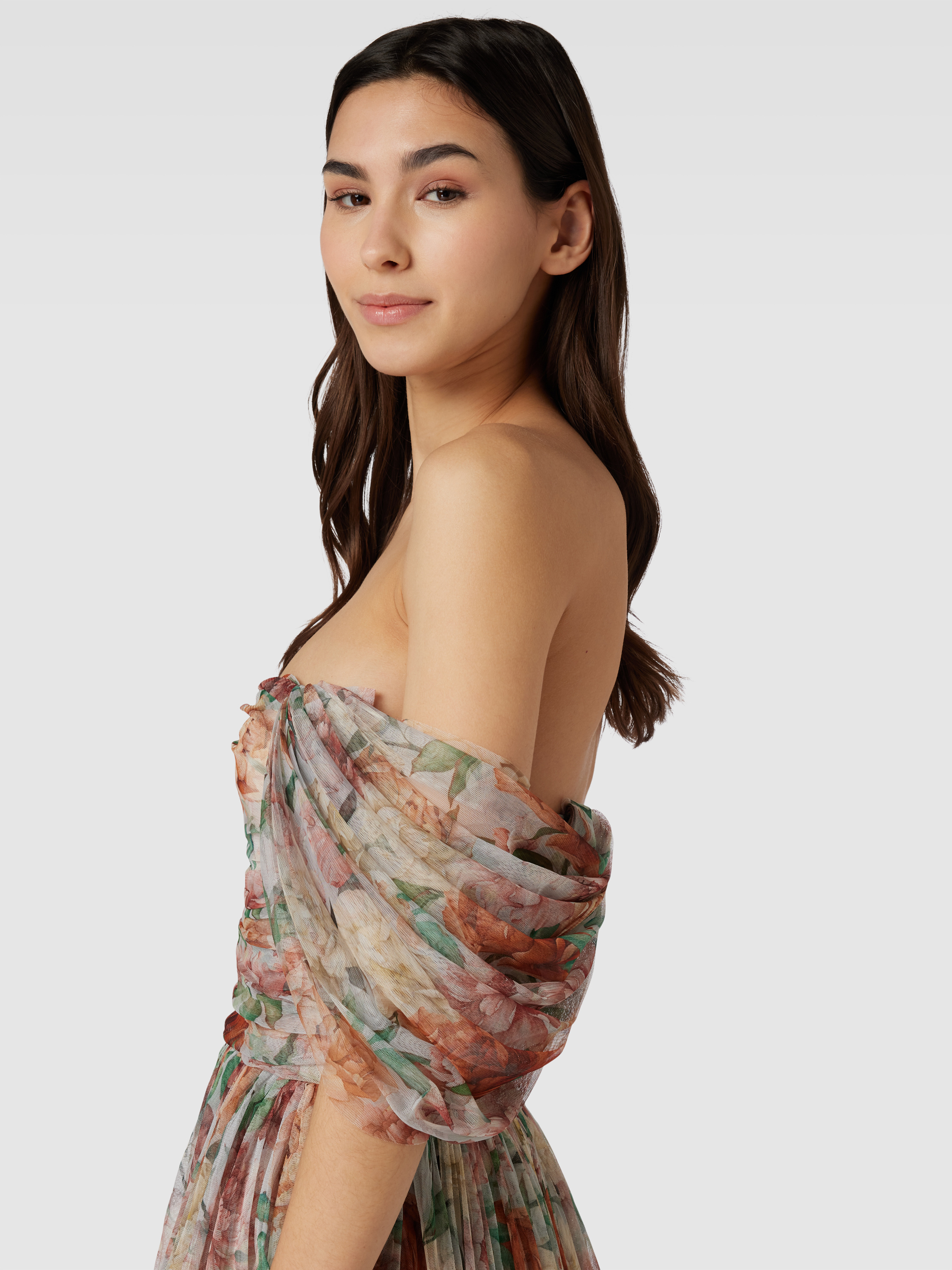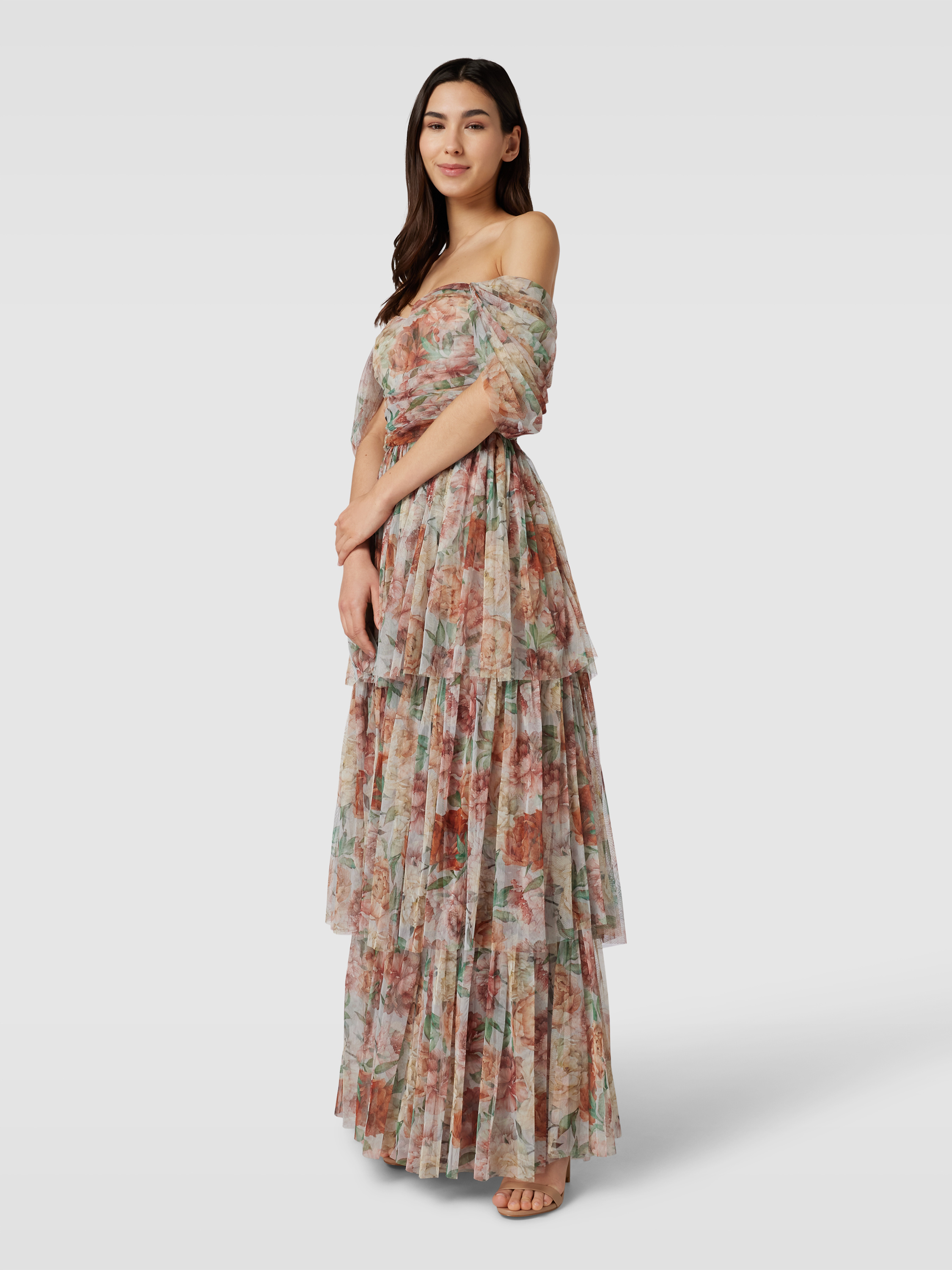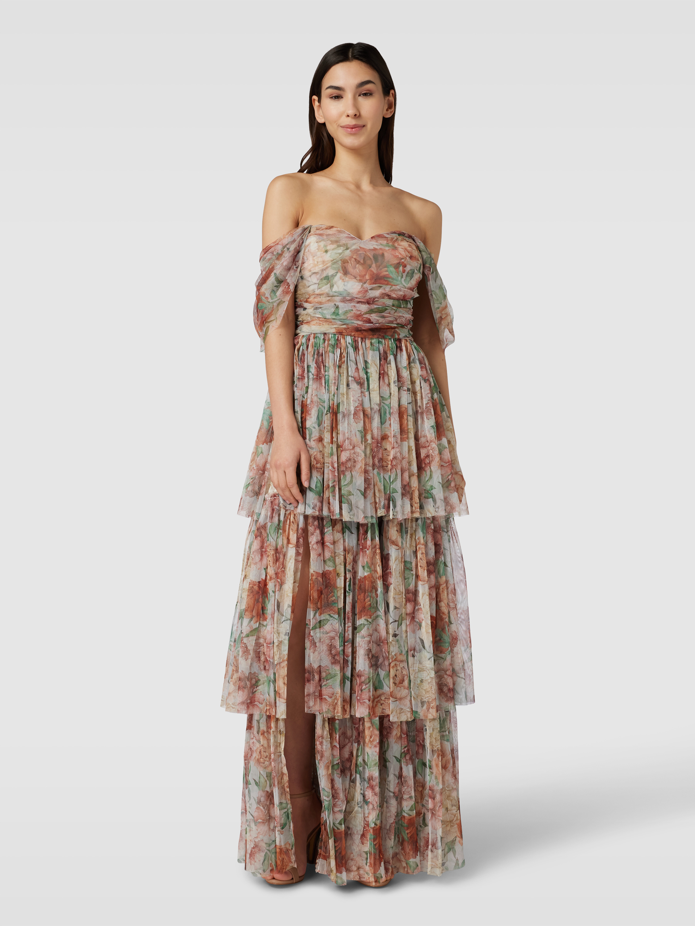 Sukienka wieczorowa w kwiatowe wzory - różowawy