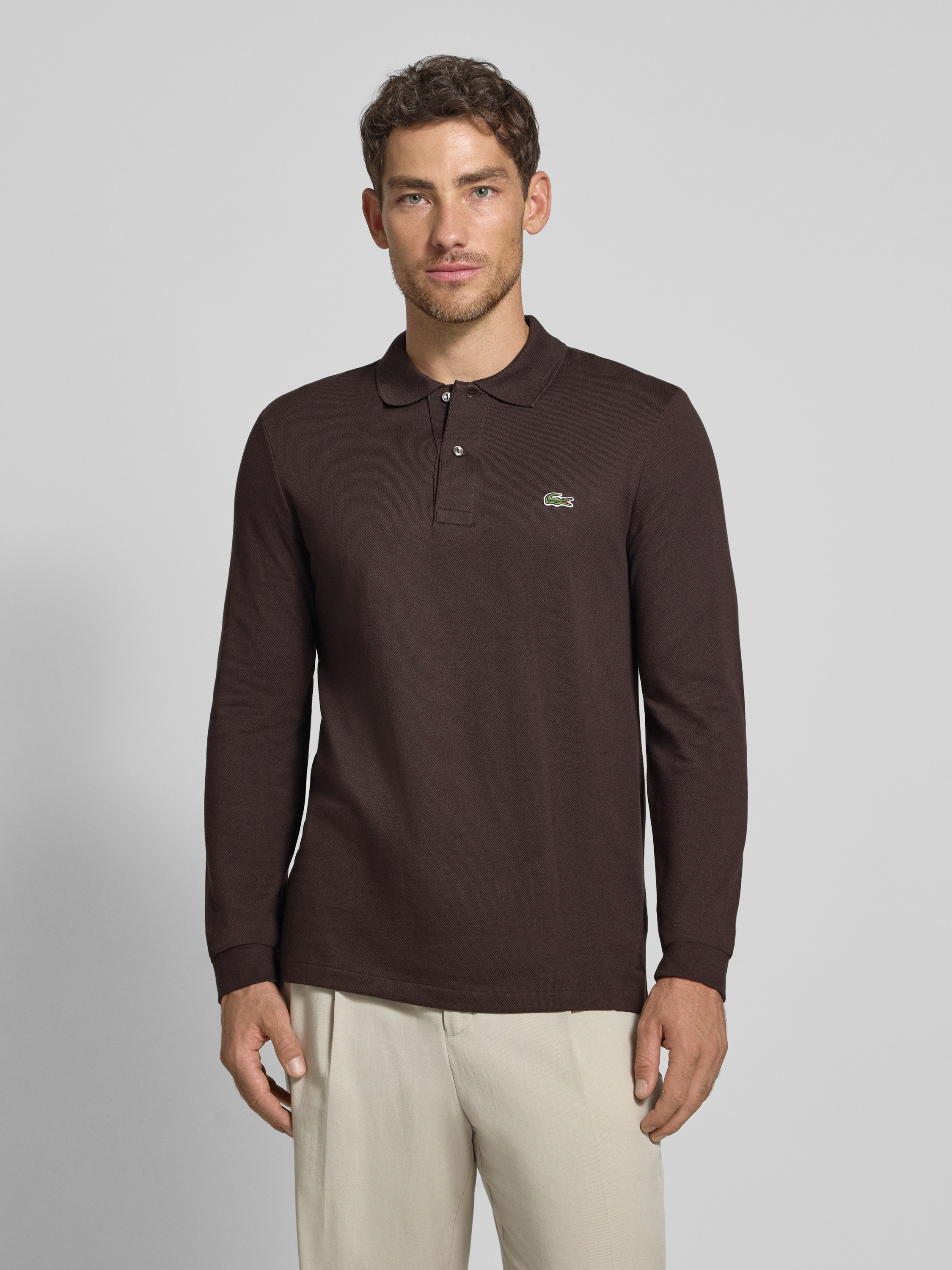 Koszulka polo o kroju Regular Fit z czystej bawełny - ciemnobrązowy
