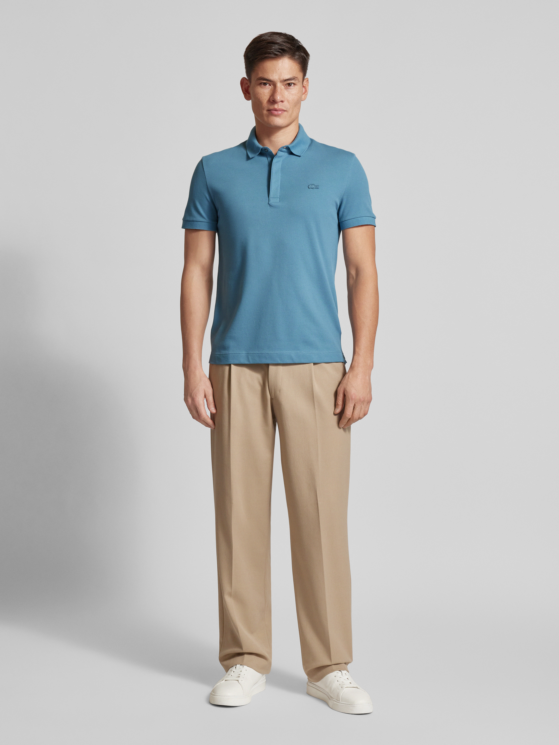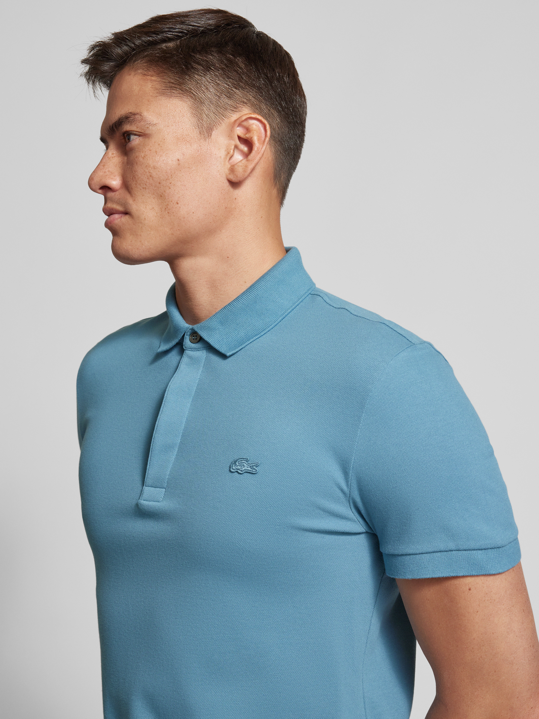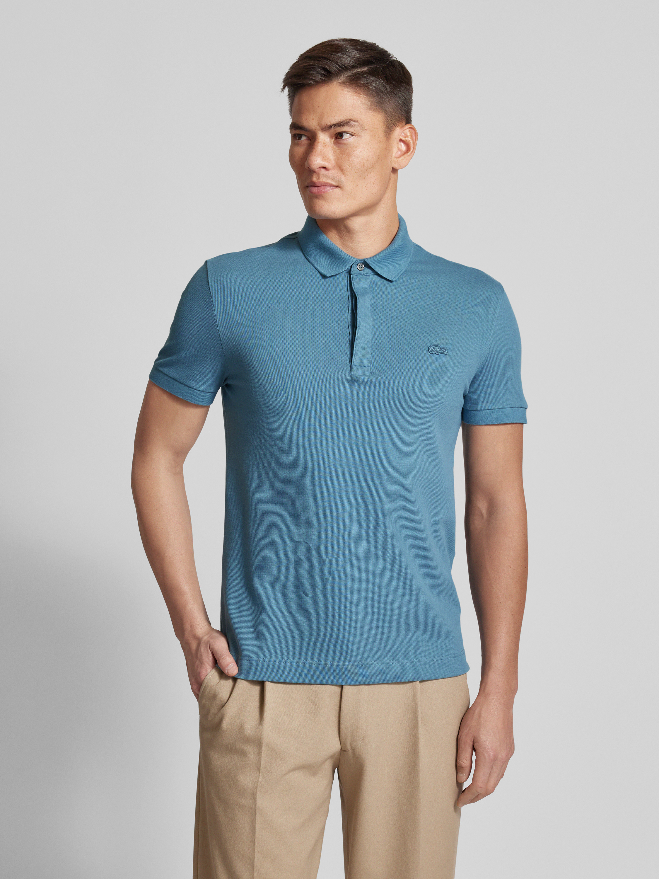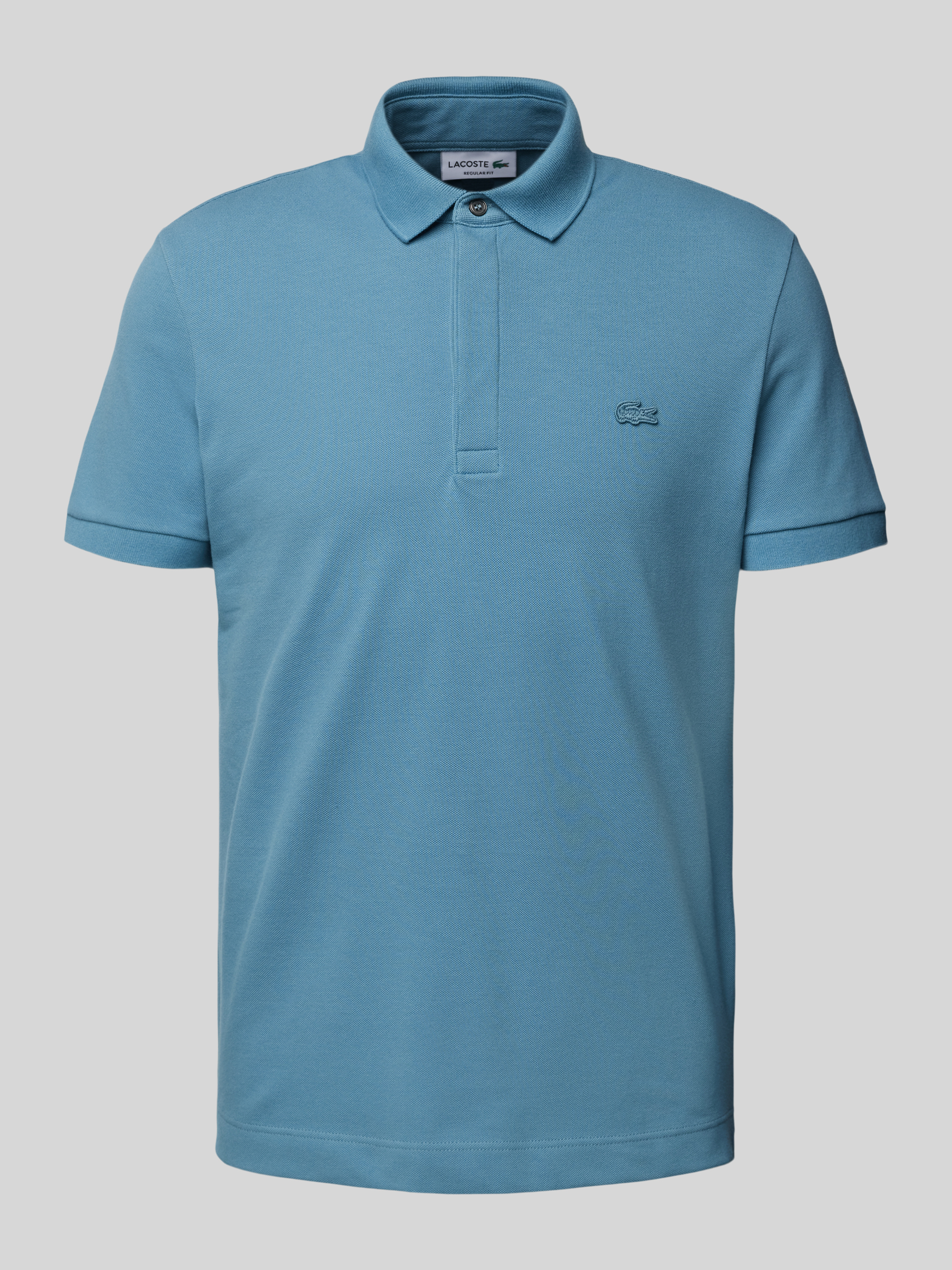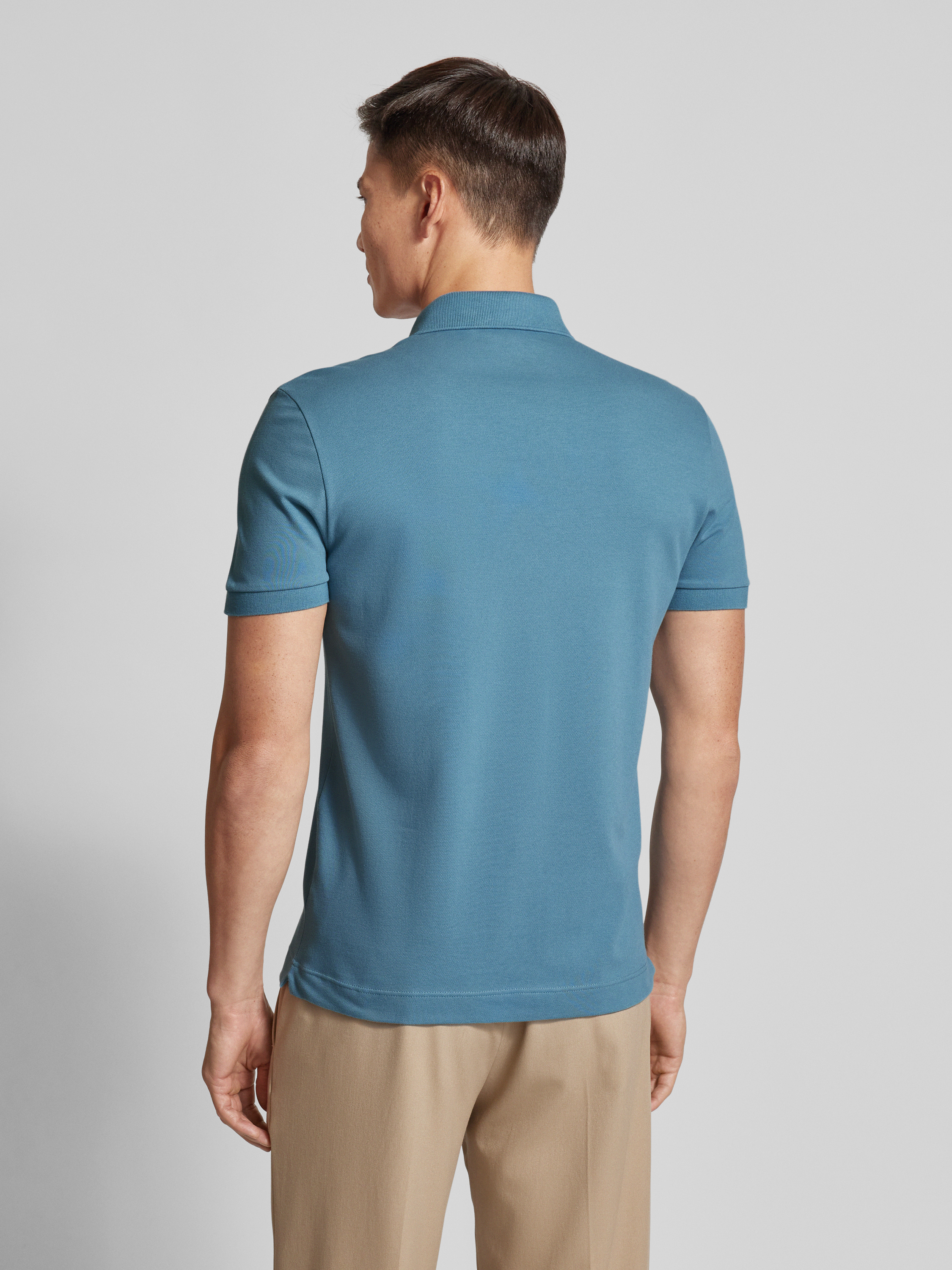 Koszulka polo z wiskozy z naszywką z logo model ‘PIQUE’ - szaroniebieski