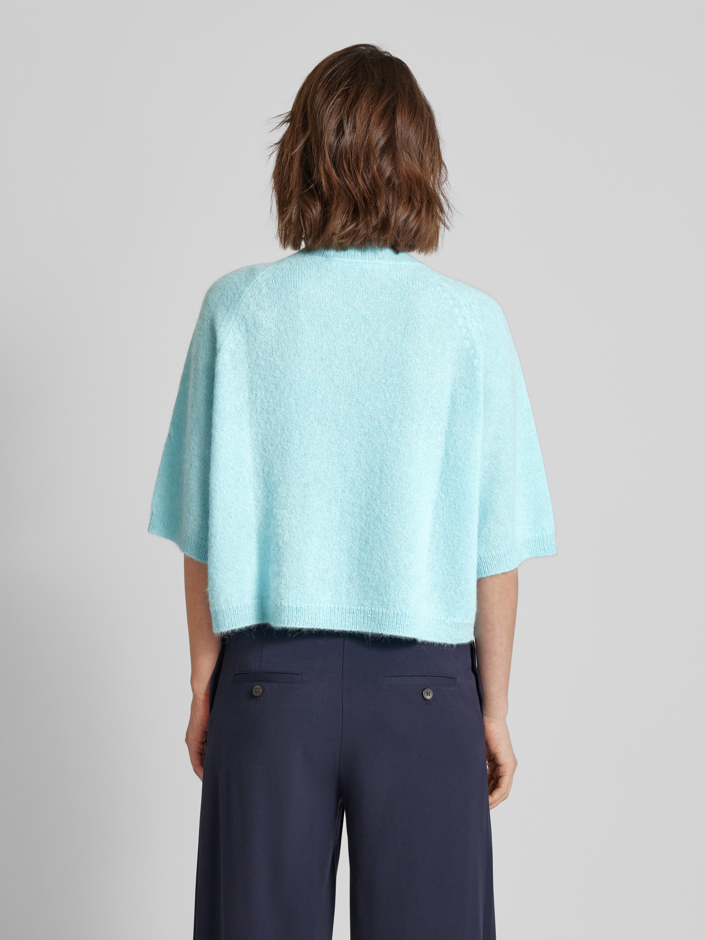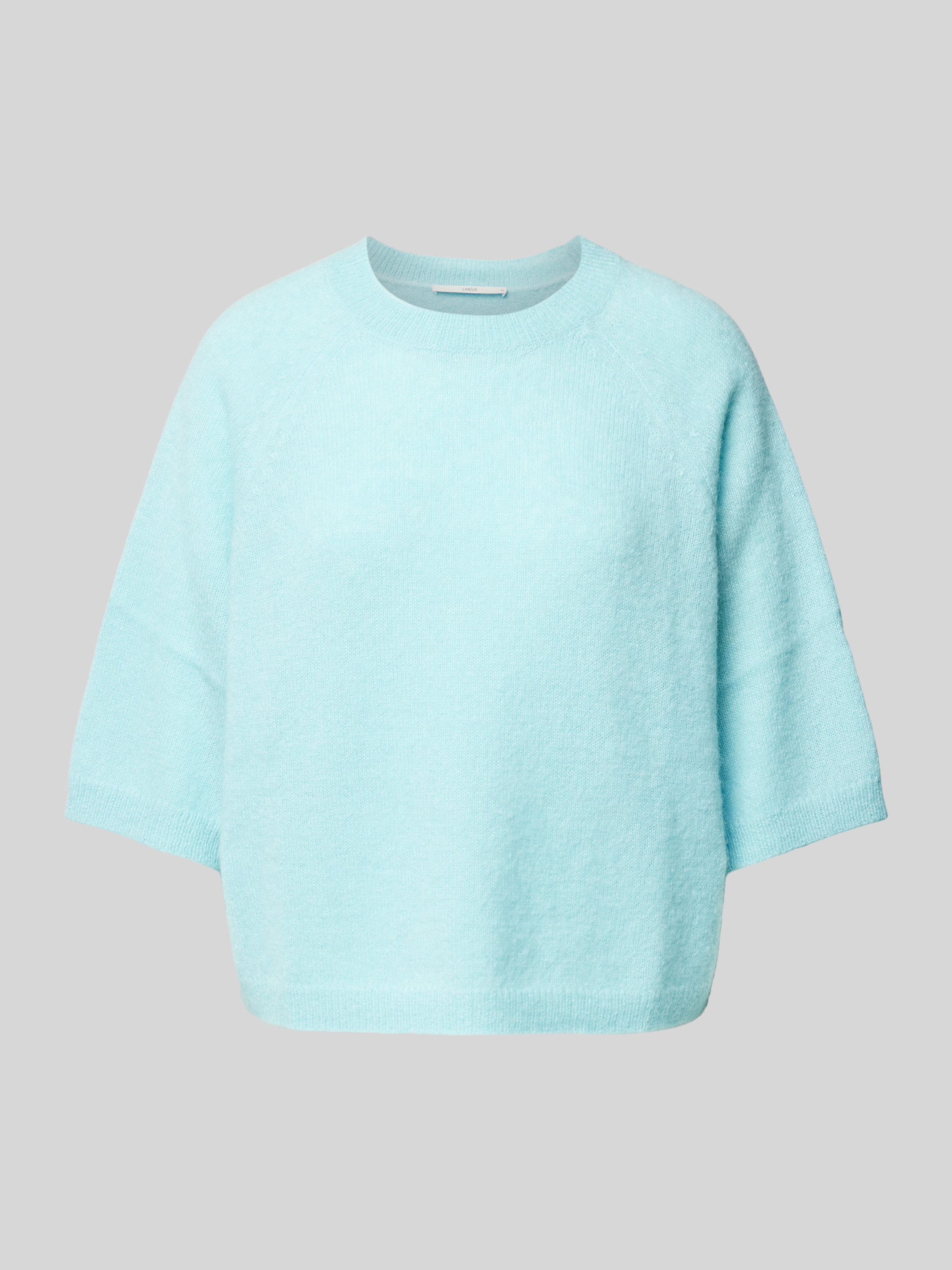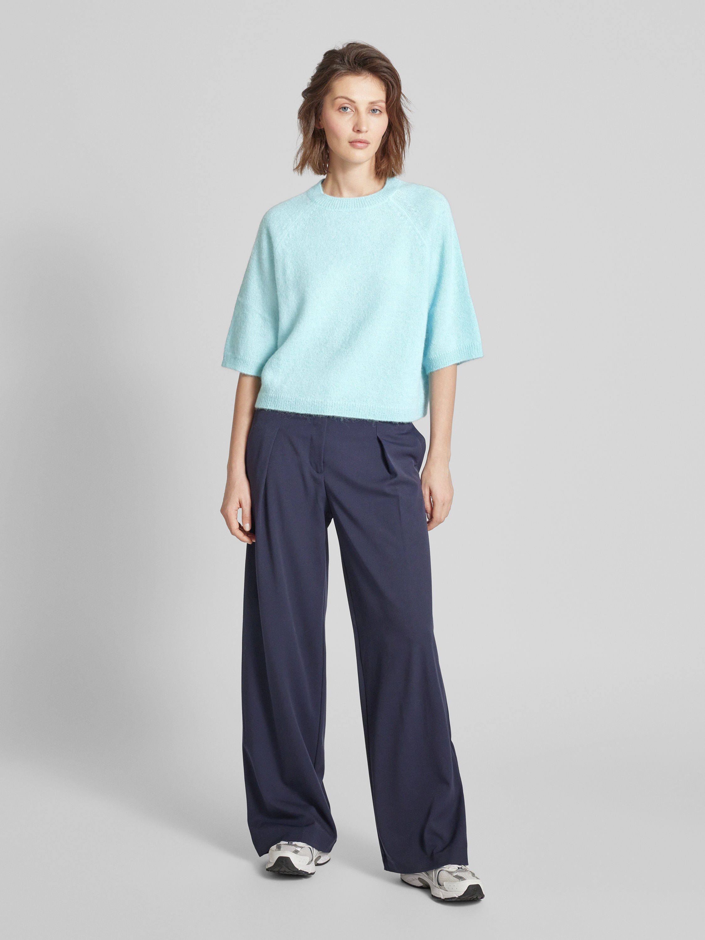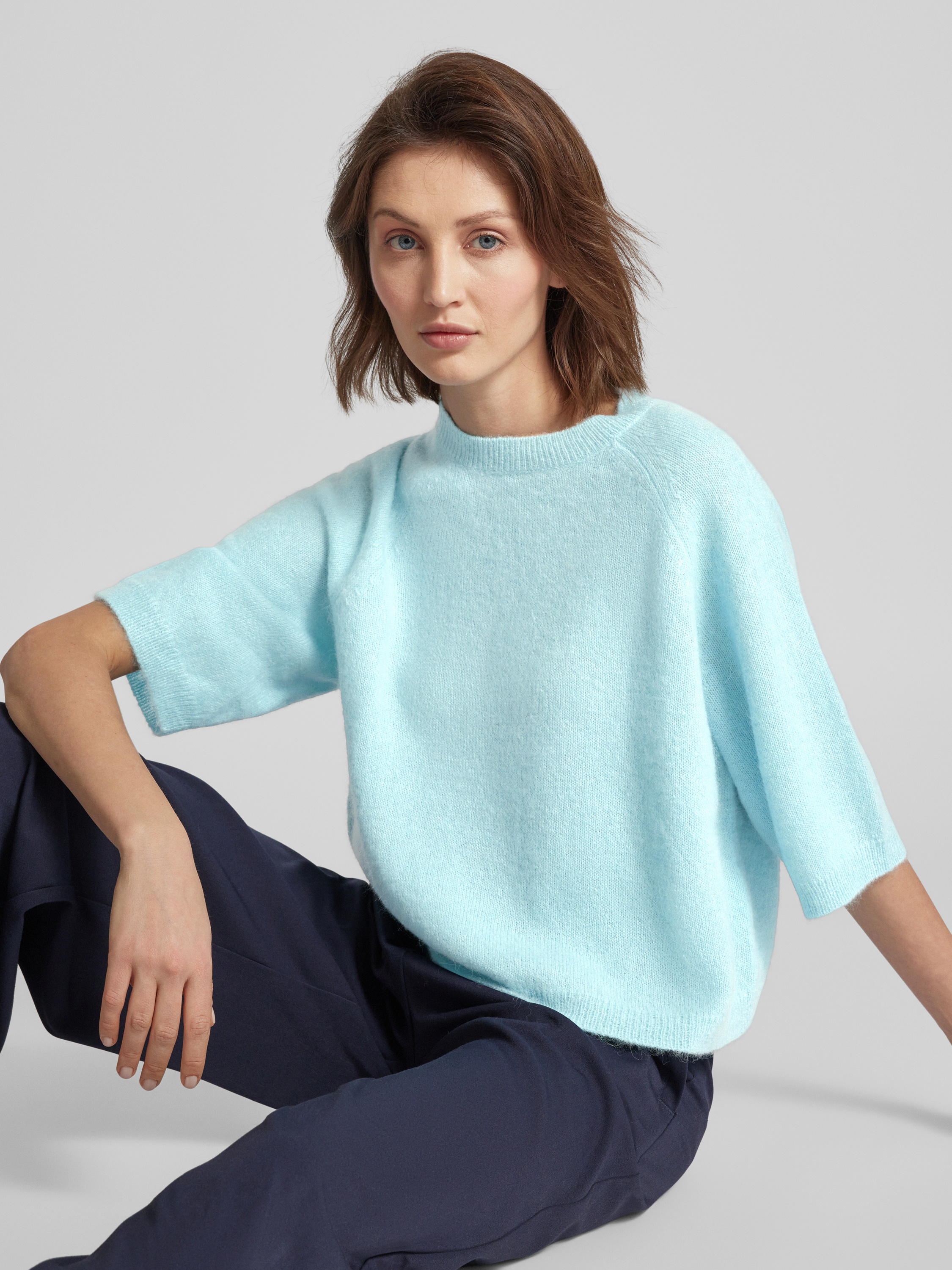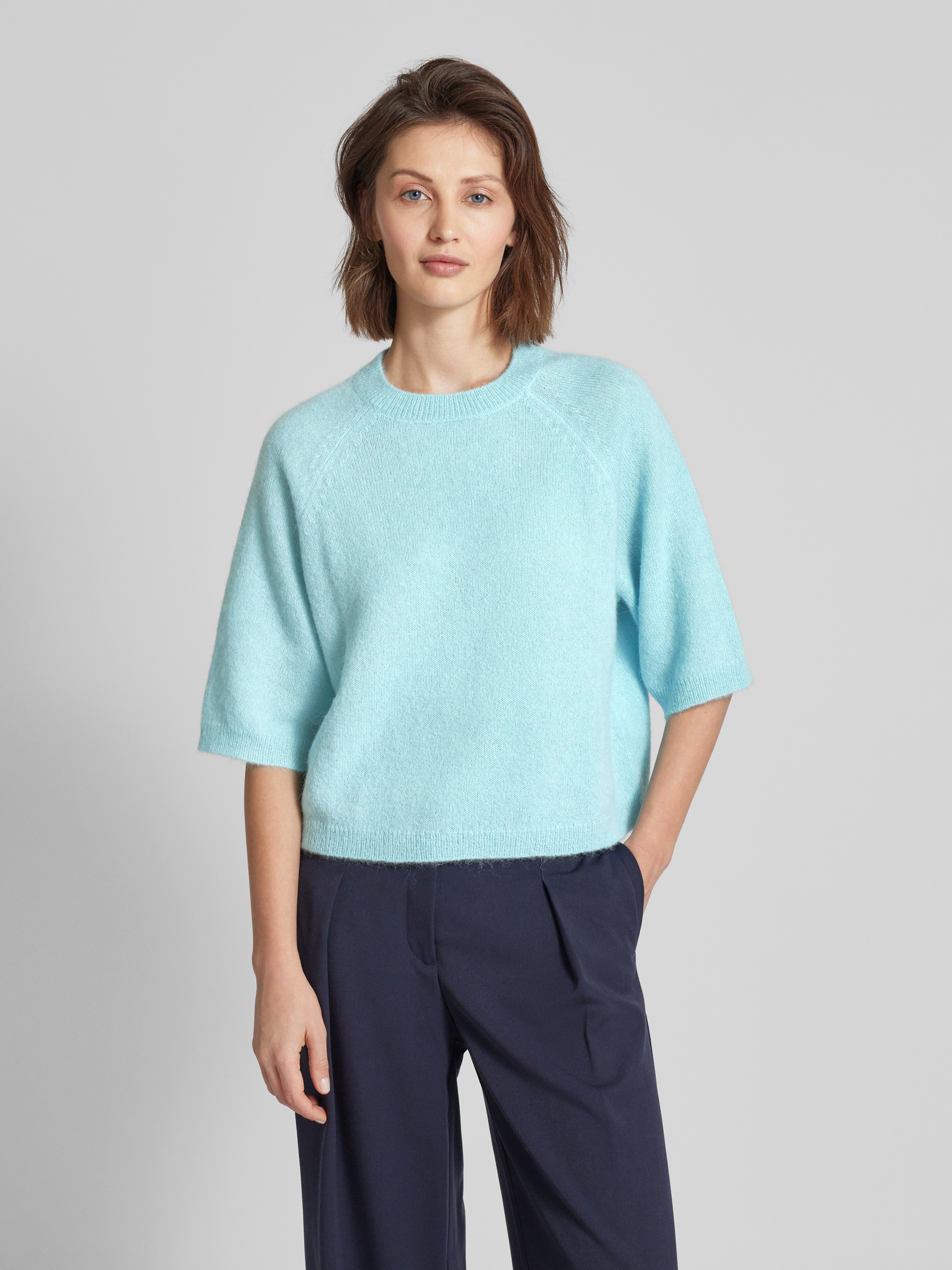Bluzka z dzianiny z mieszanki wełny z alpaki z okrągłym dekoltem - morski