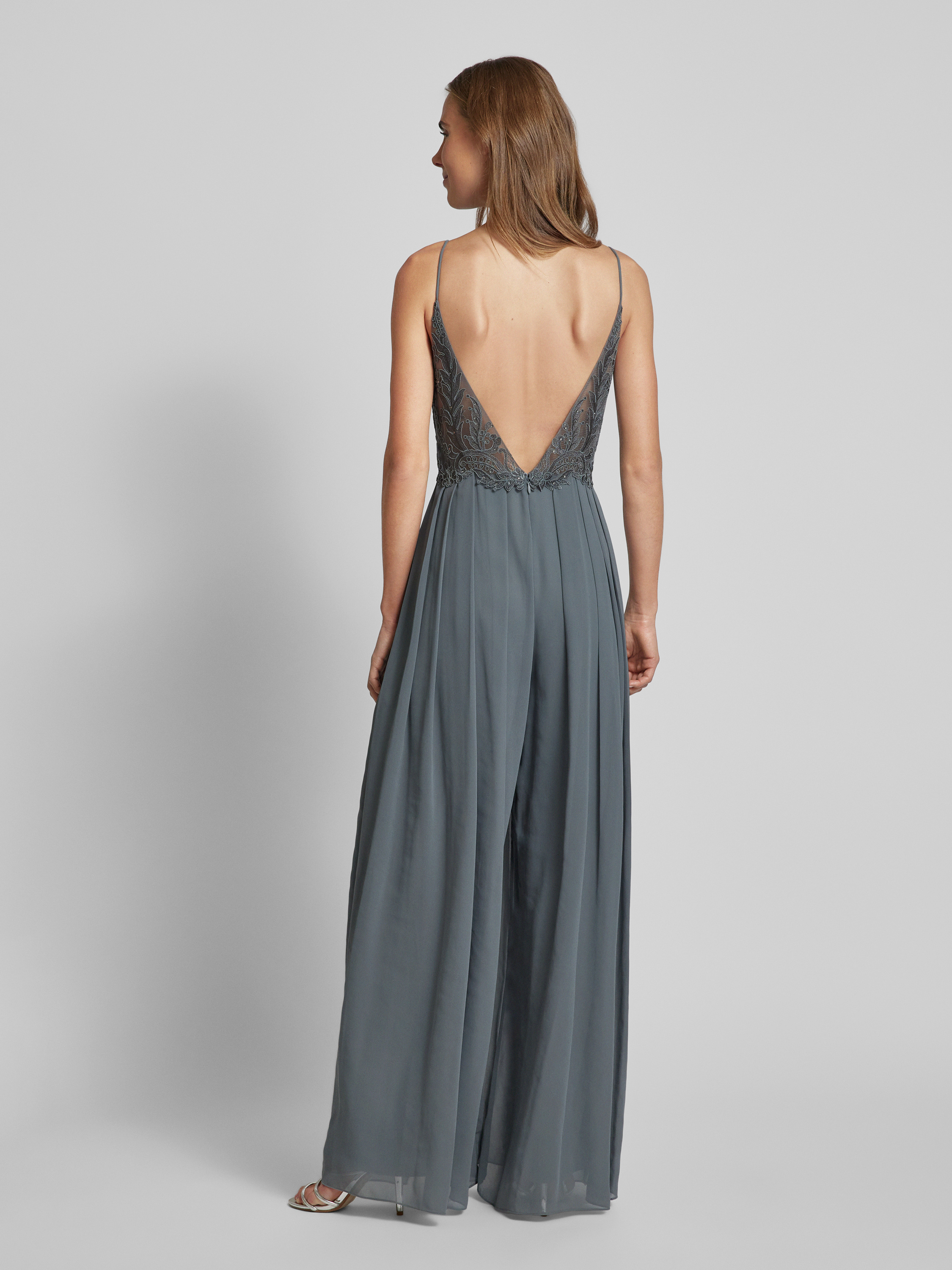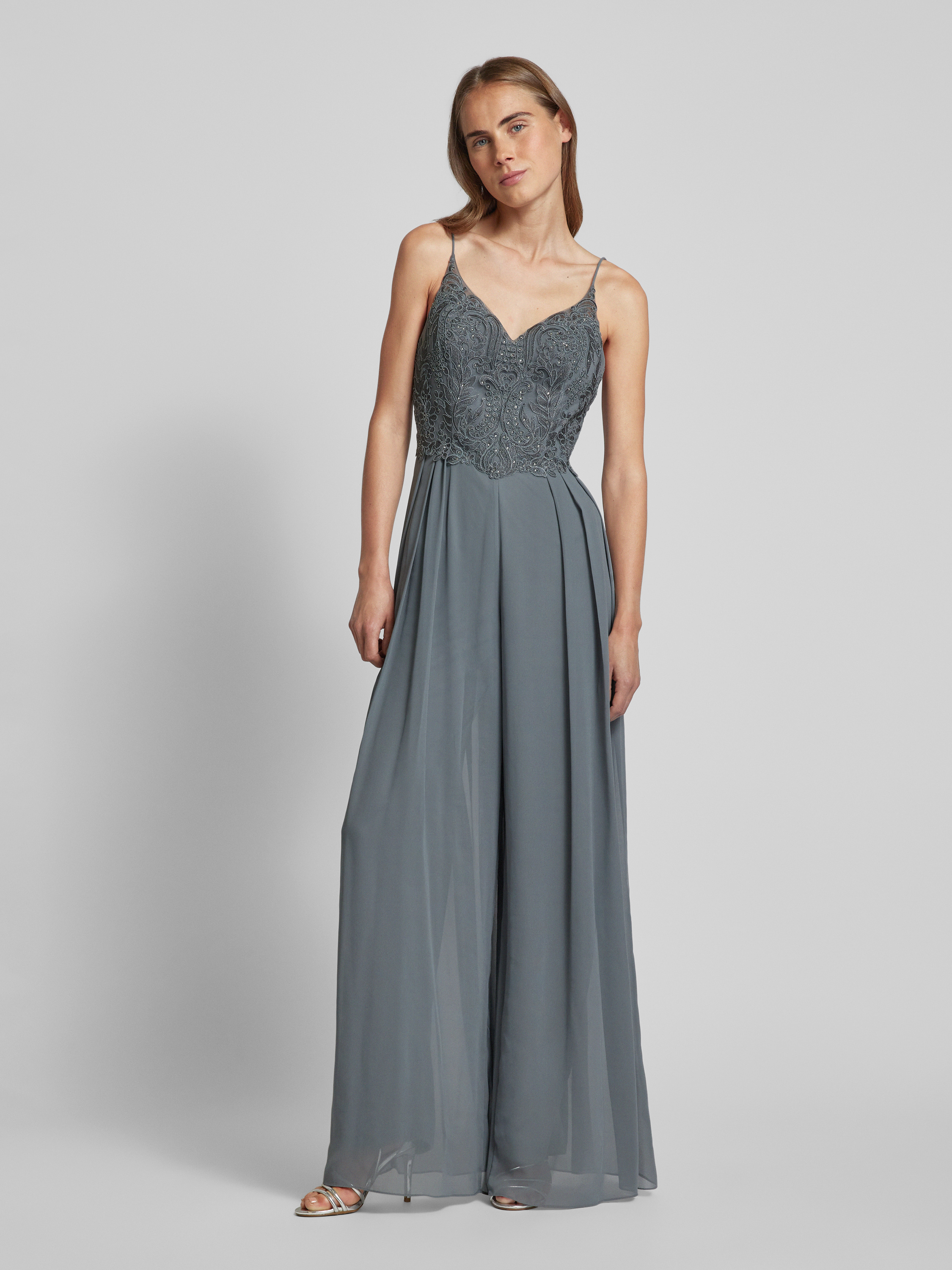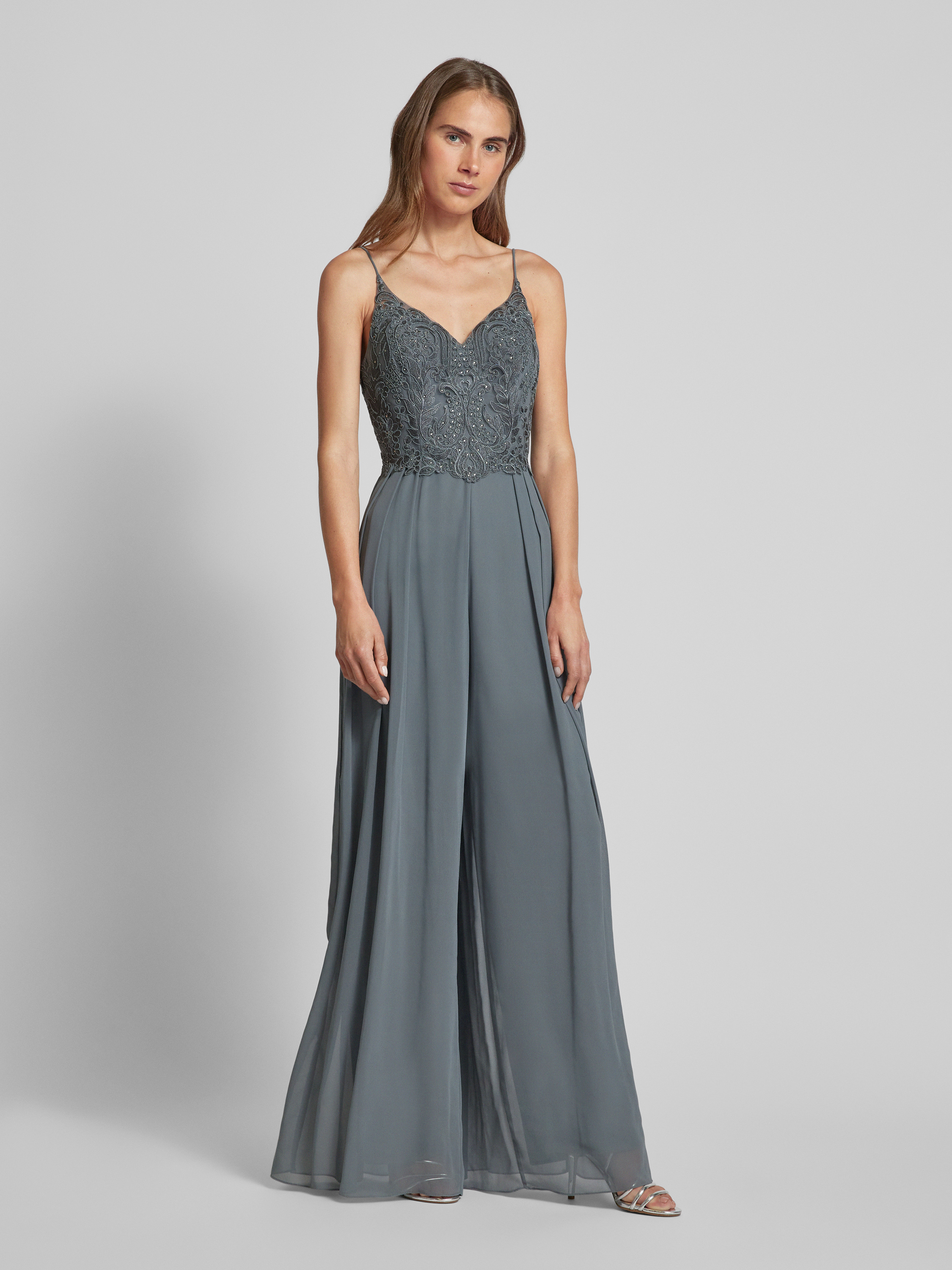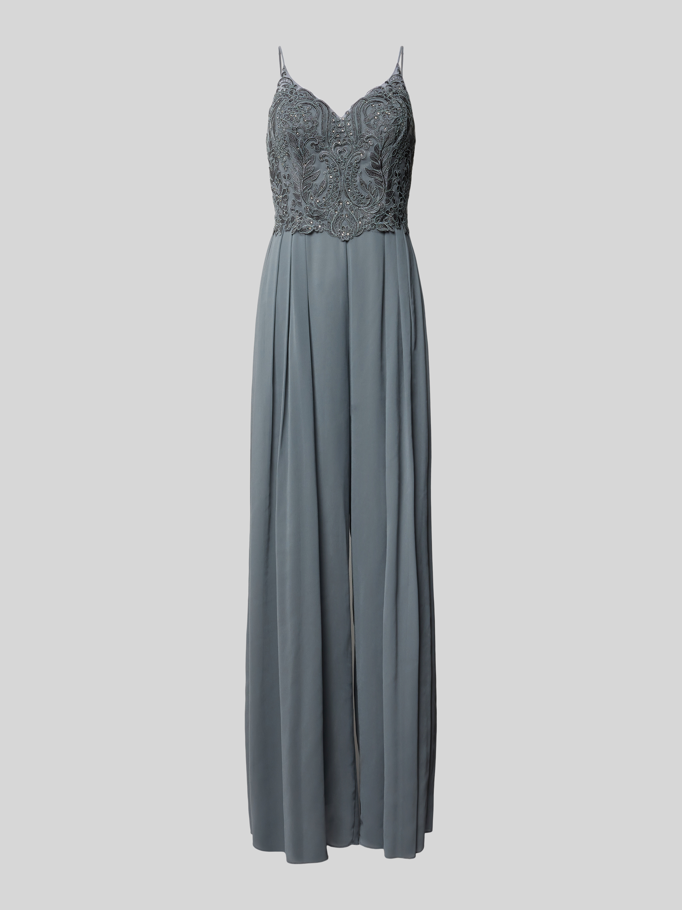 Kombinezon z obszyciem kamieniami stras - średnioszary