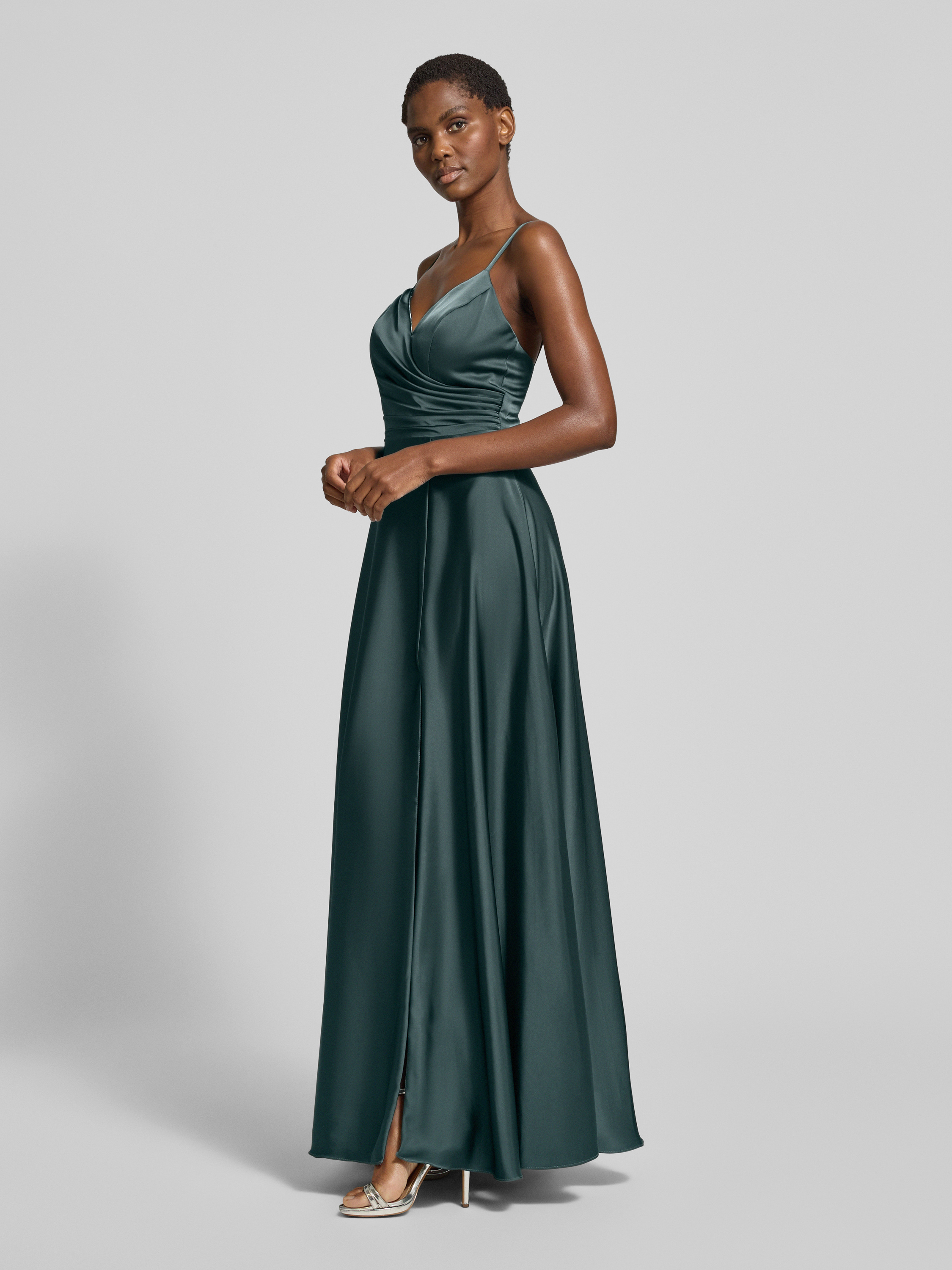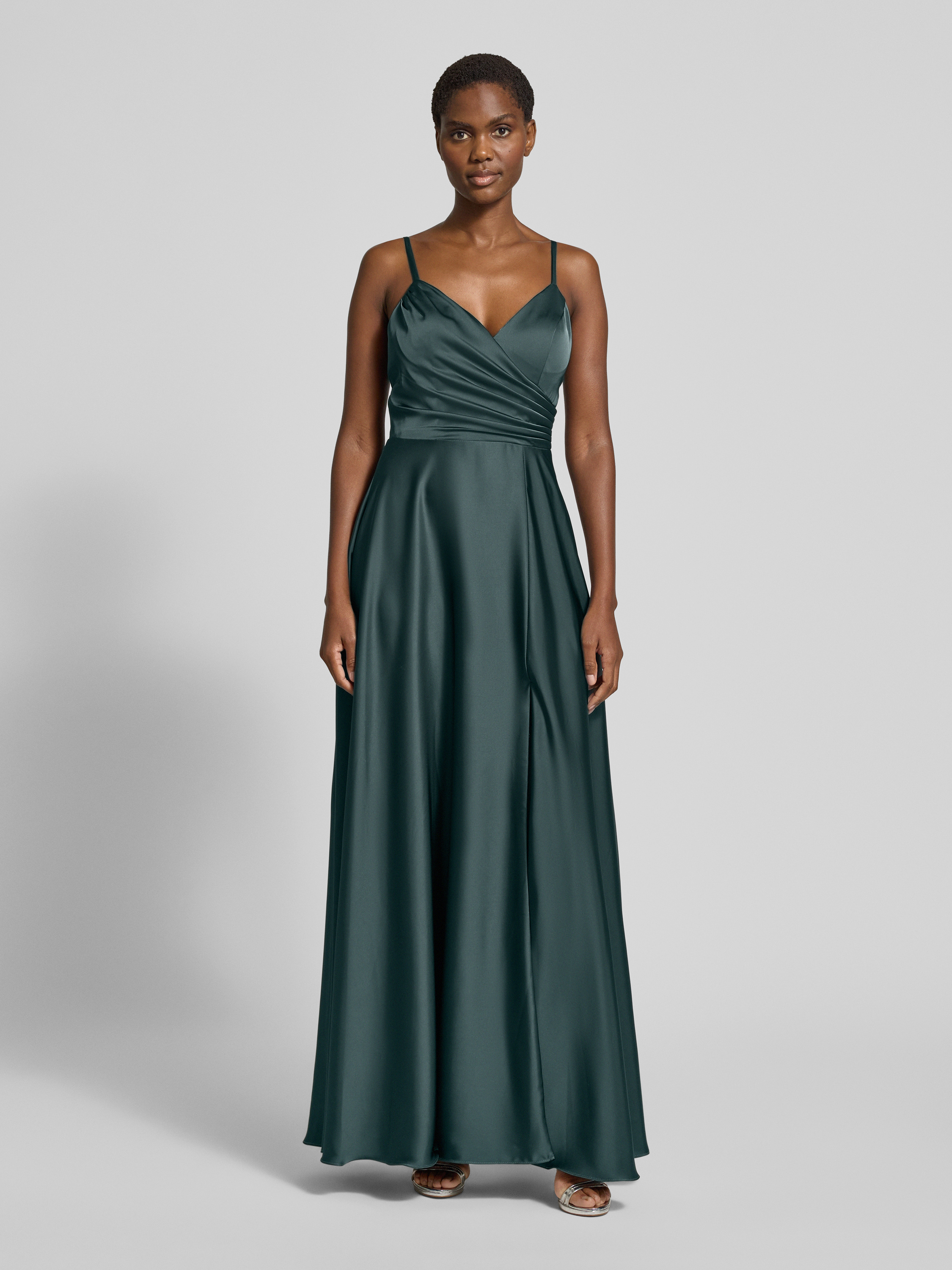Sukienka wieczorowa o kroju regular fit z marszczeniami - petrol