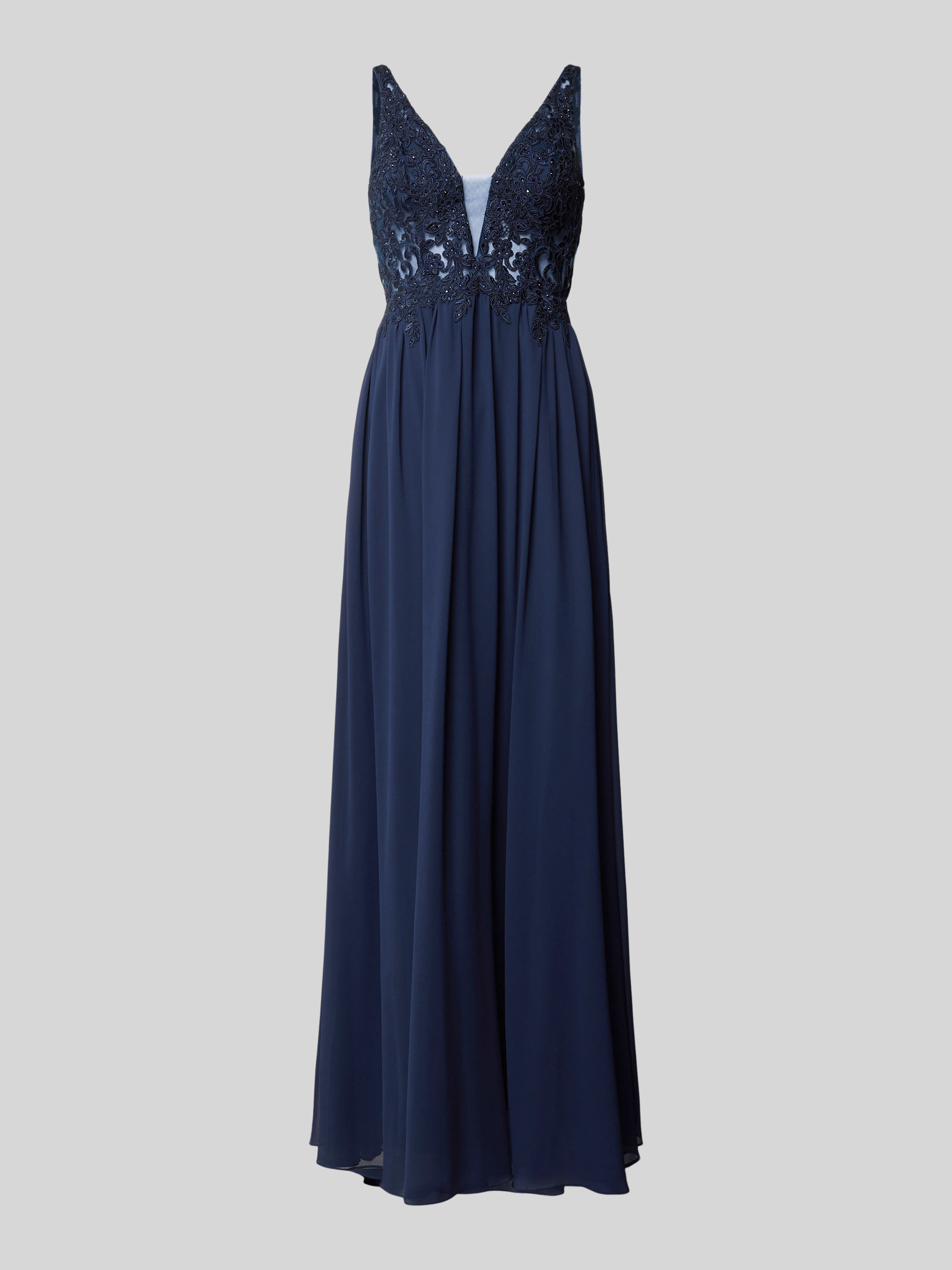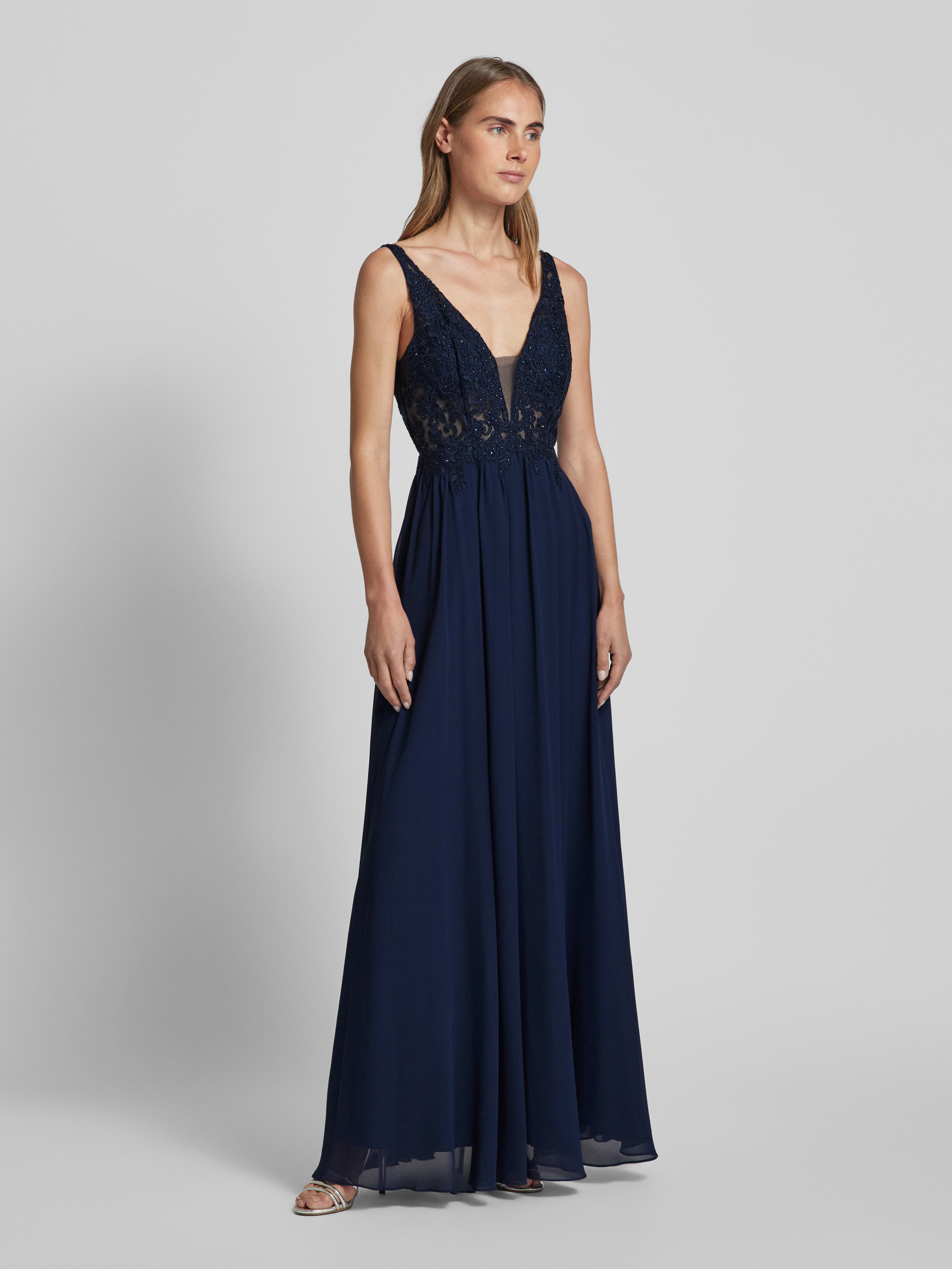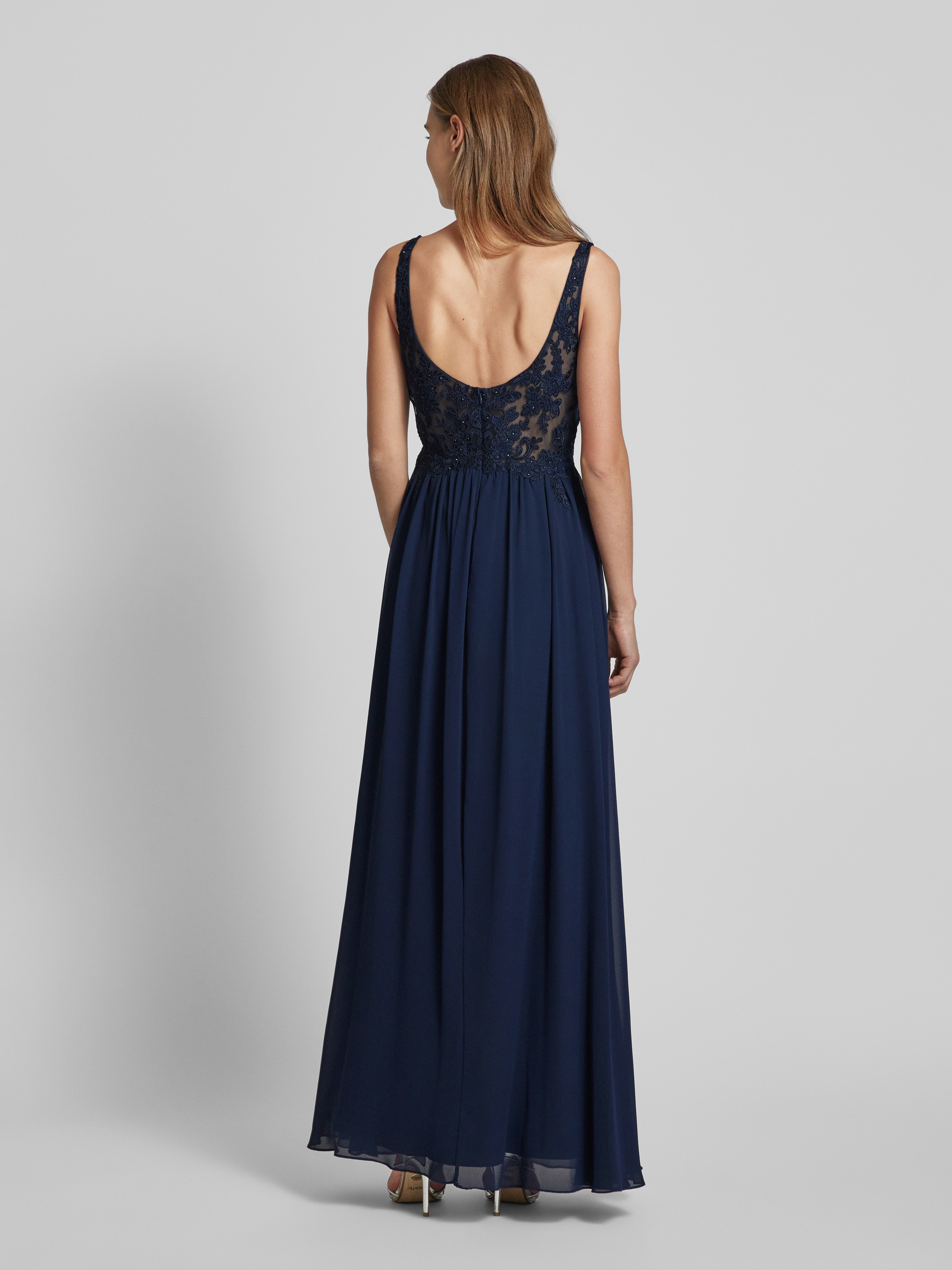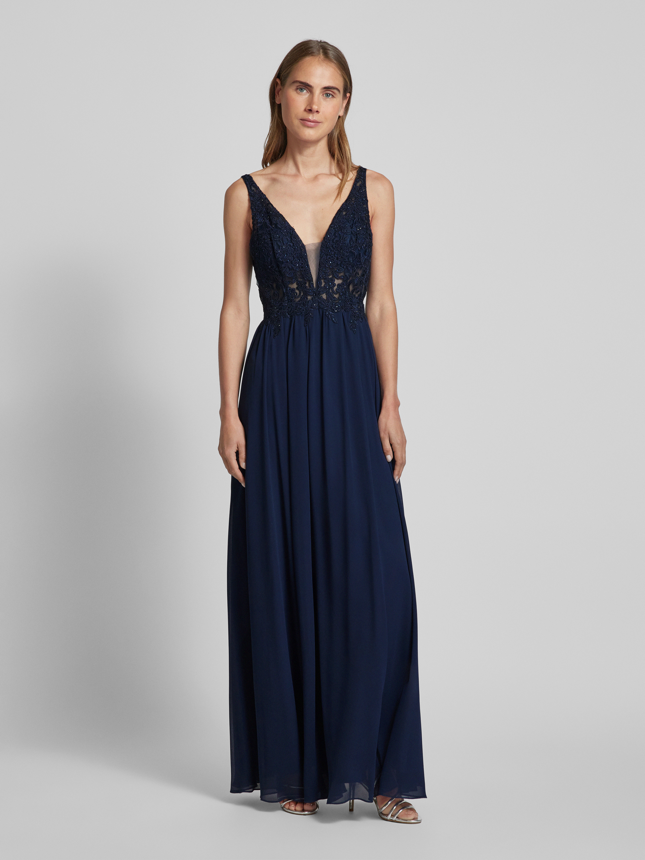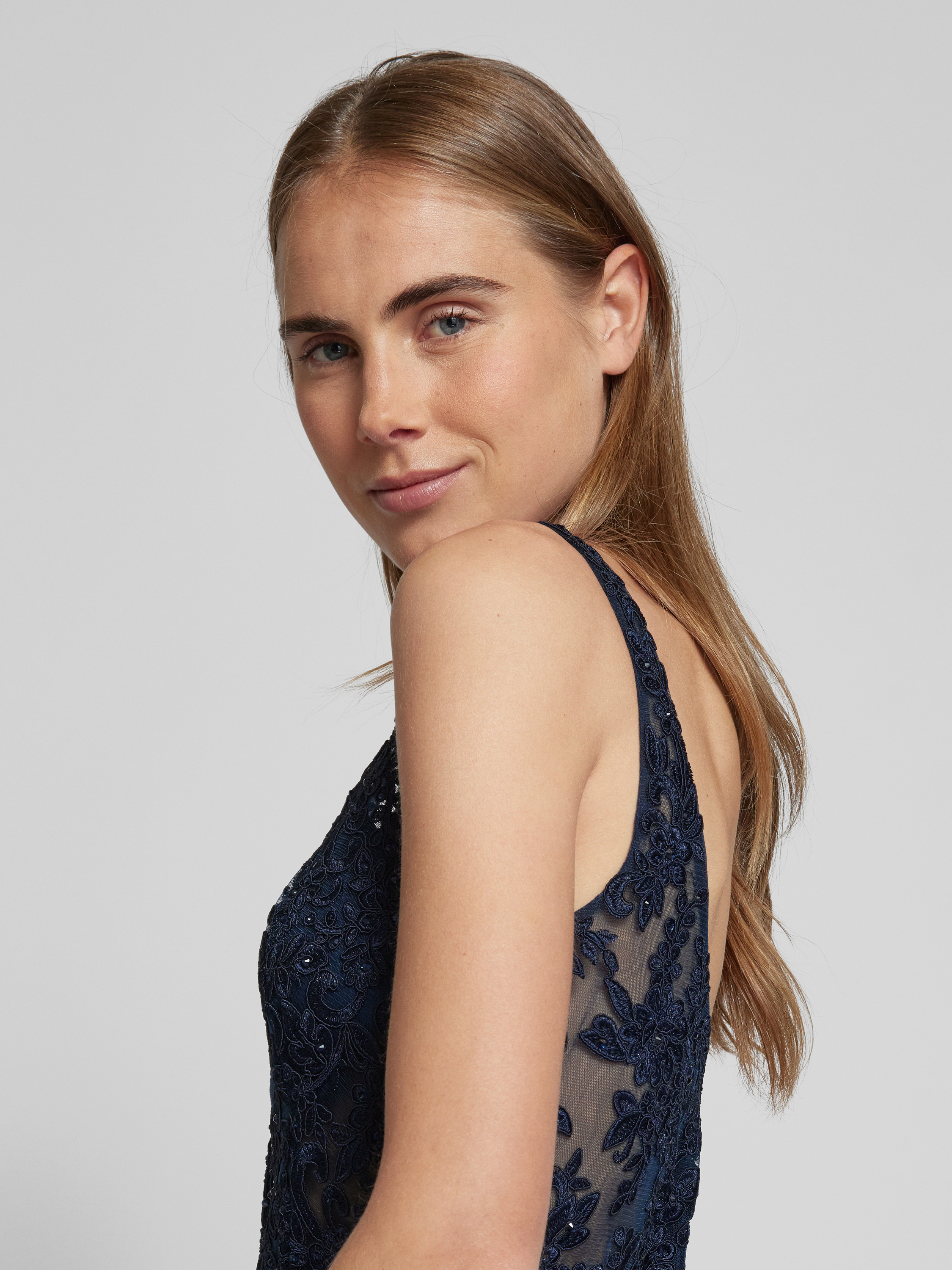 Sukienka wieczorowa obszyta ozdobnymi kamieniami - granatowy