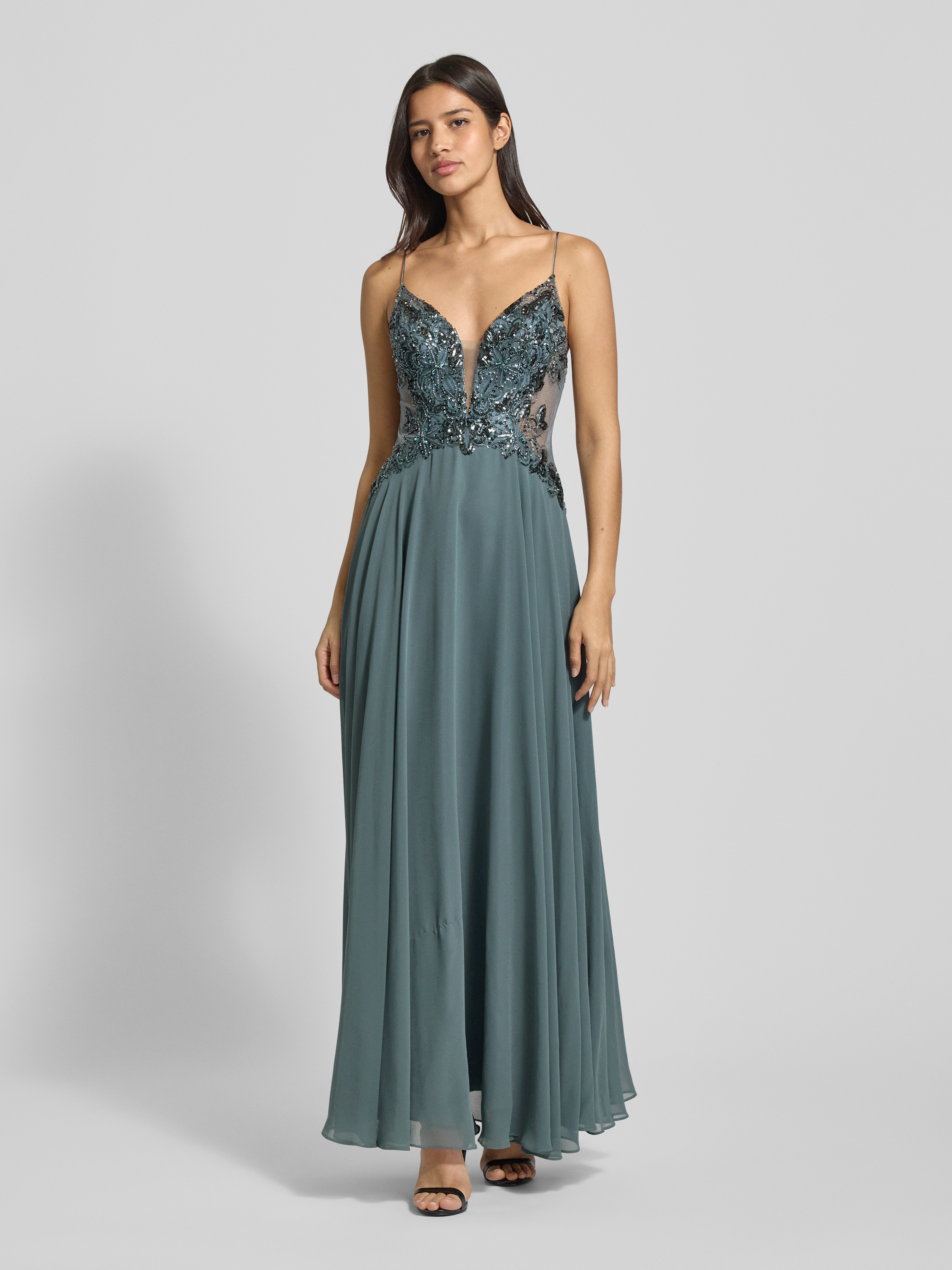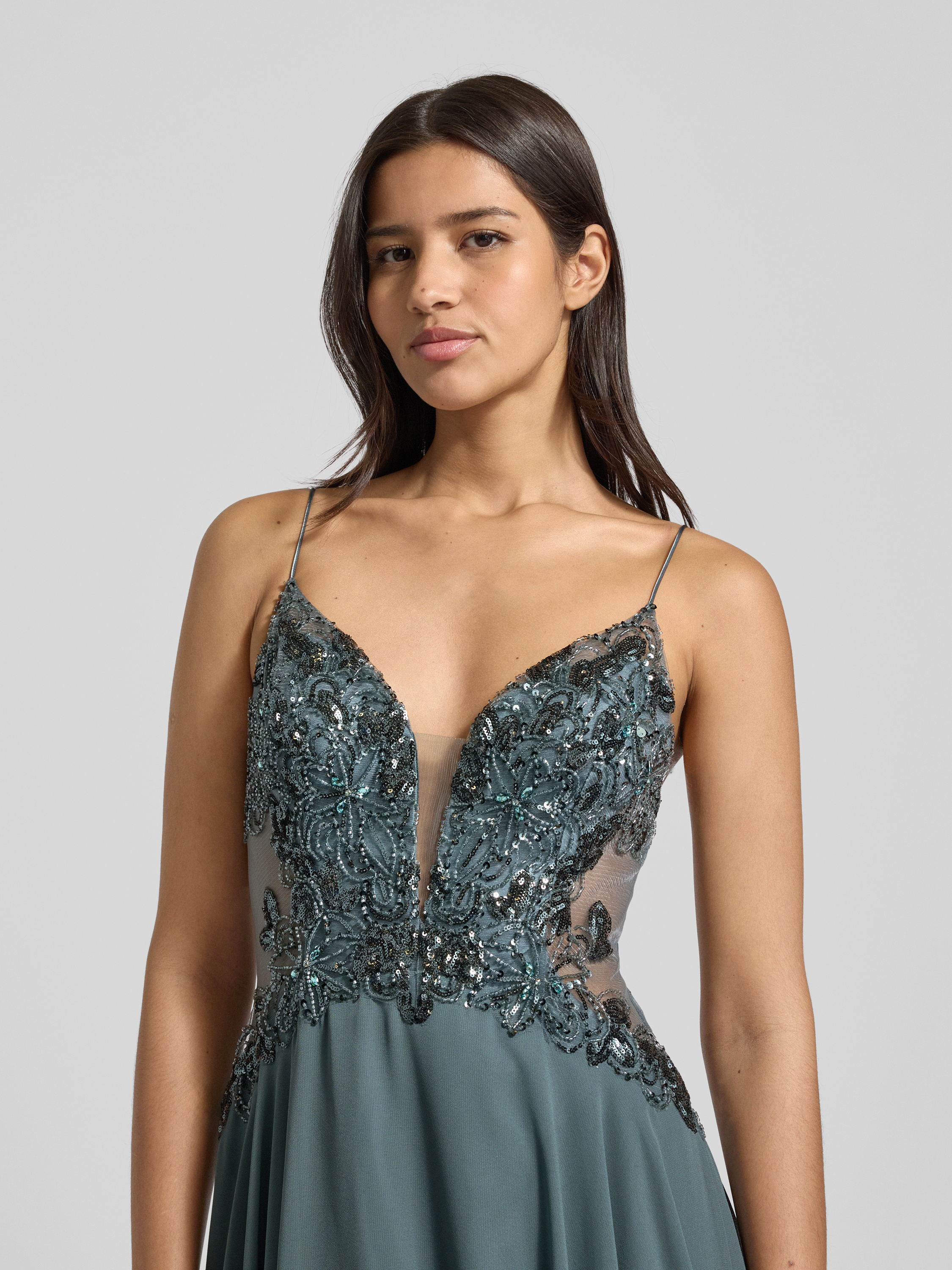 Sukienka wieczorowa z dekoltem w kształcie serca - lodowy błękitny