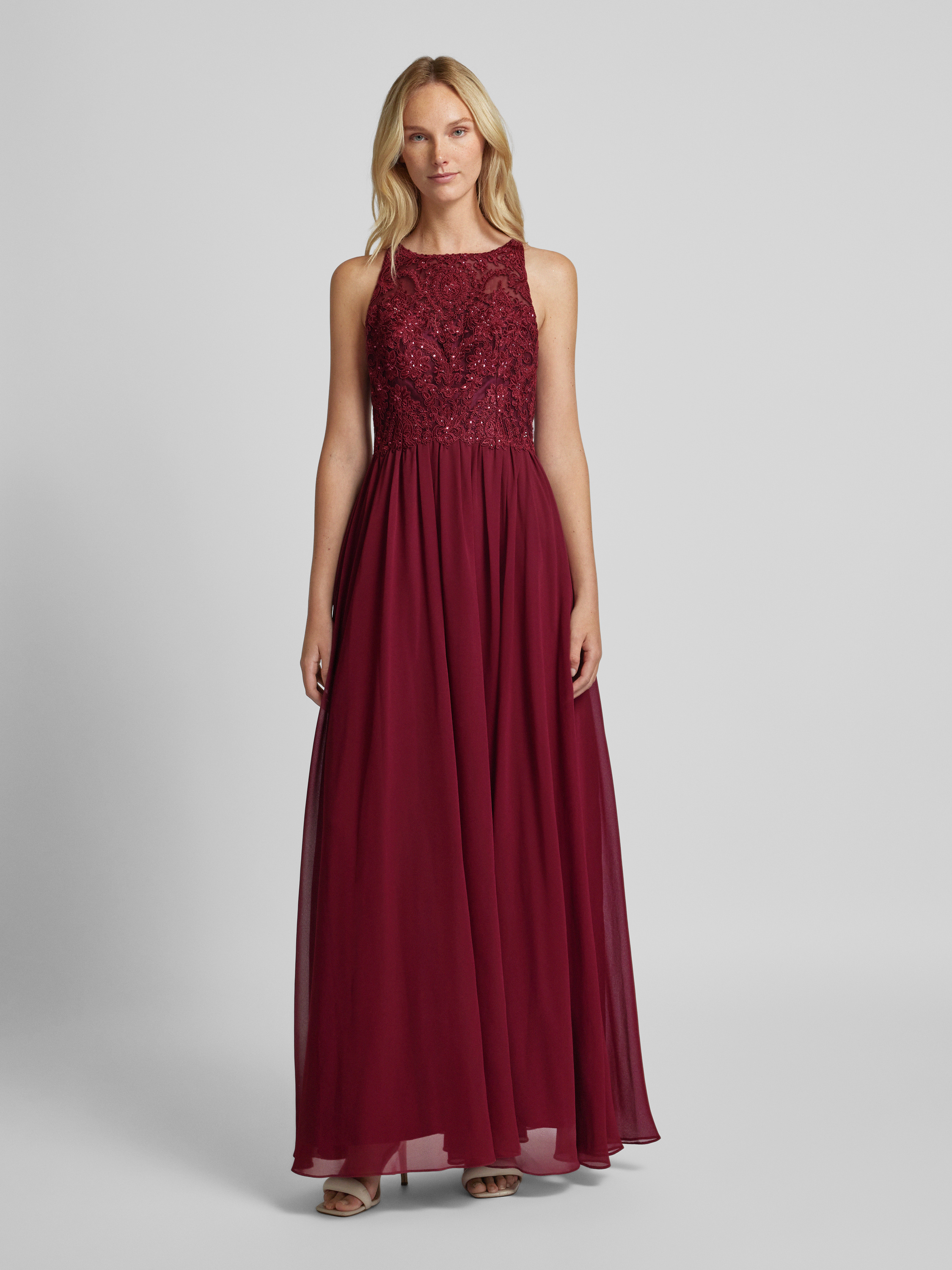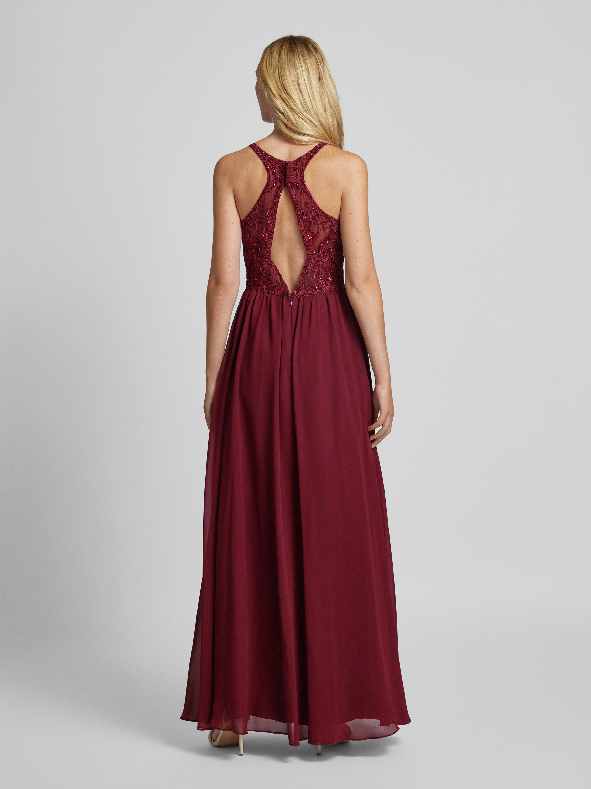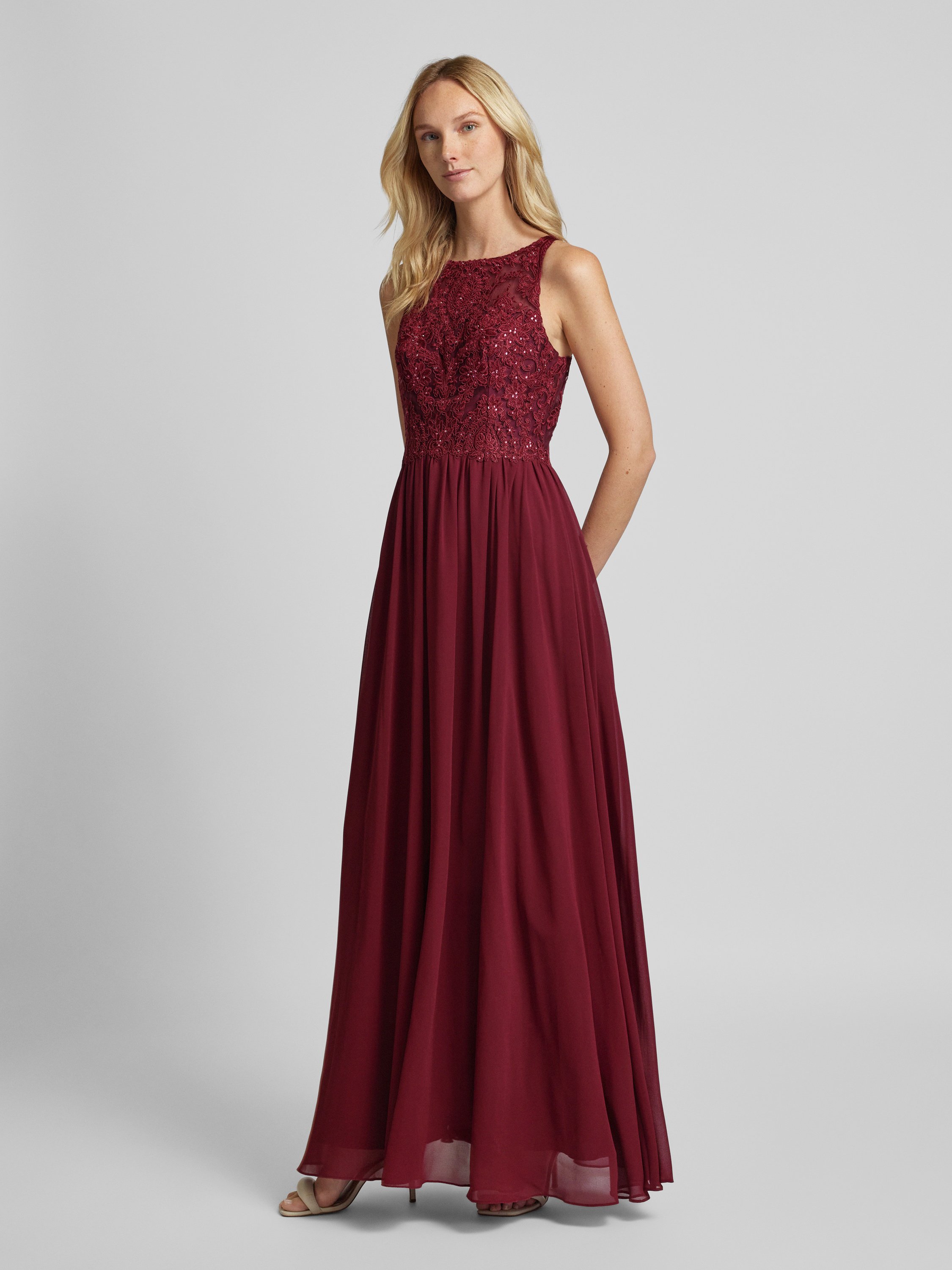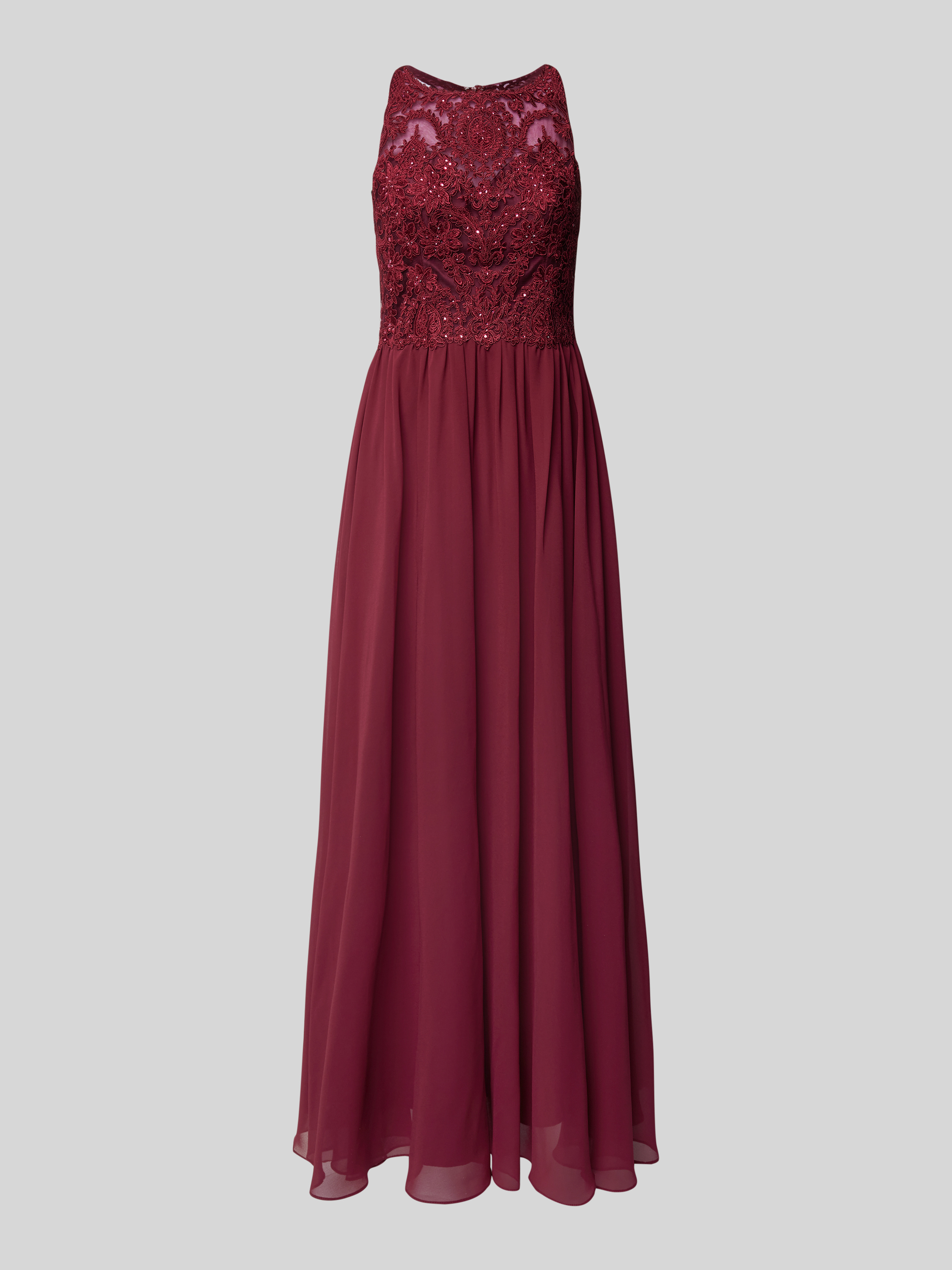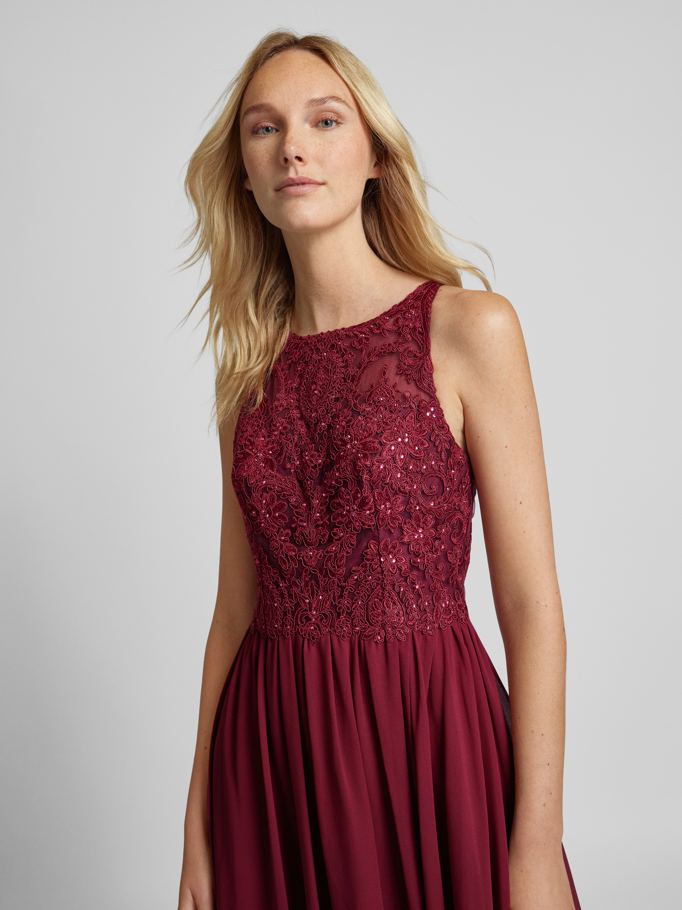 Sukienka wieczorowa z kwiatowym obszyciem z koronki - ciemnoczerwony
