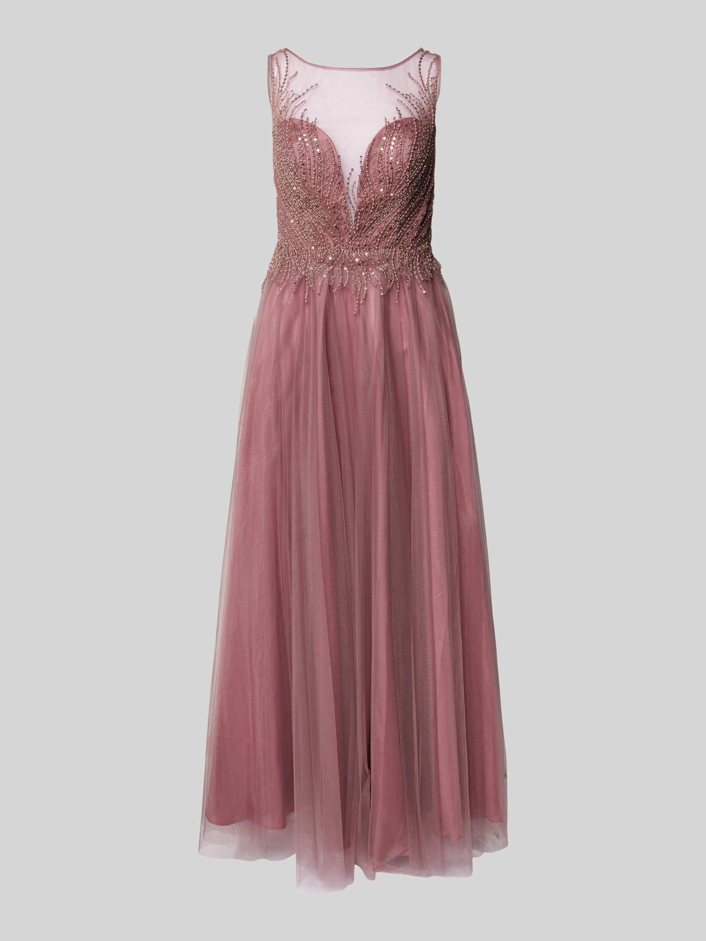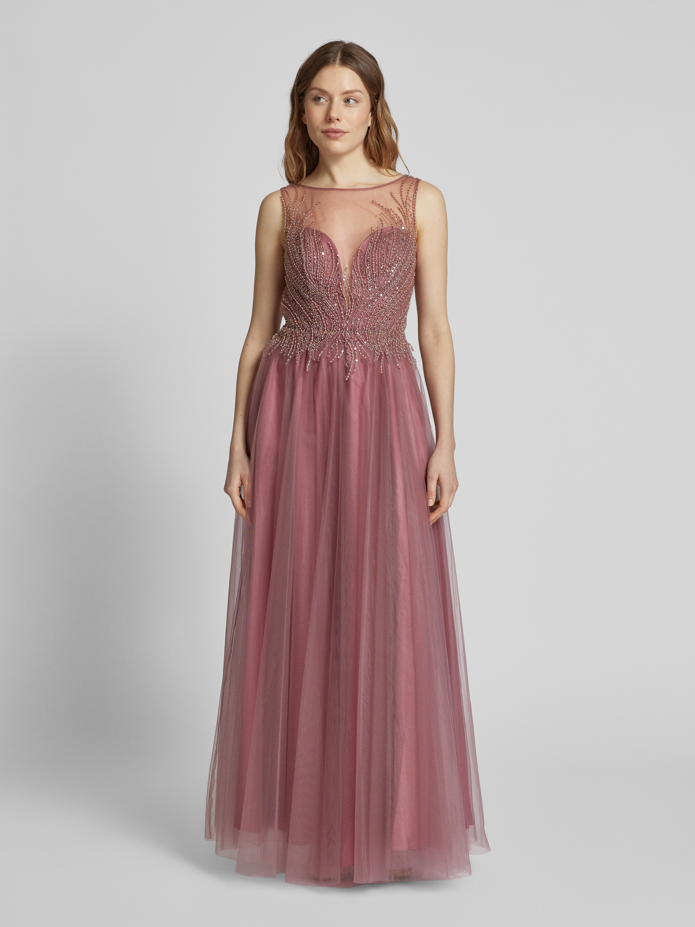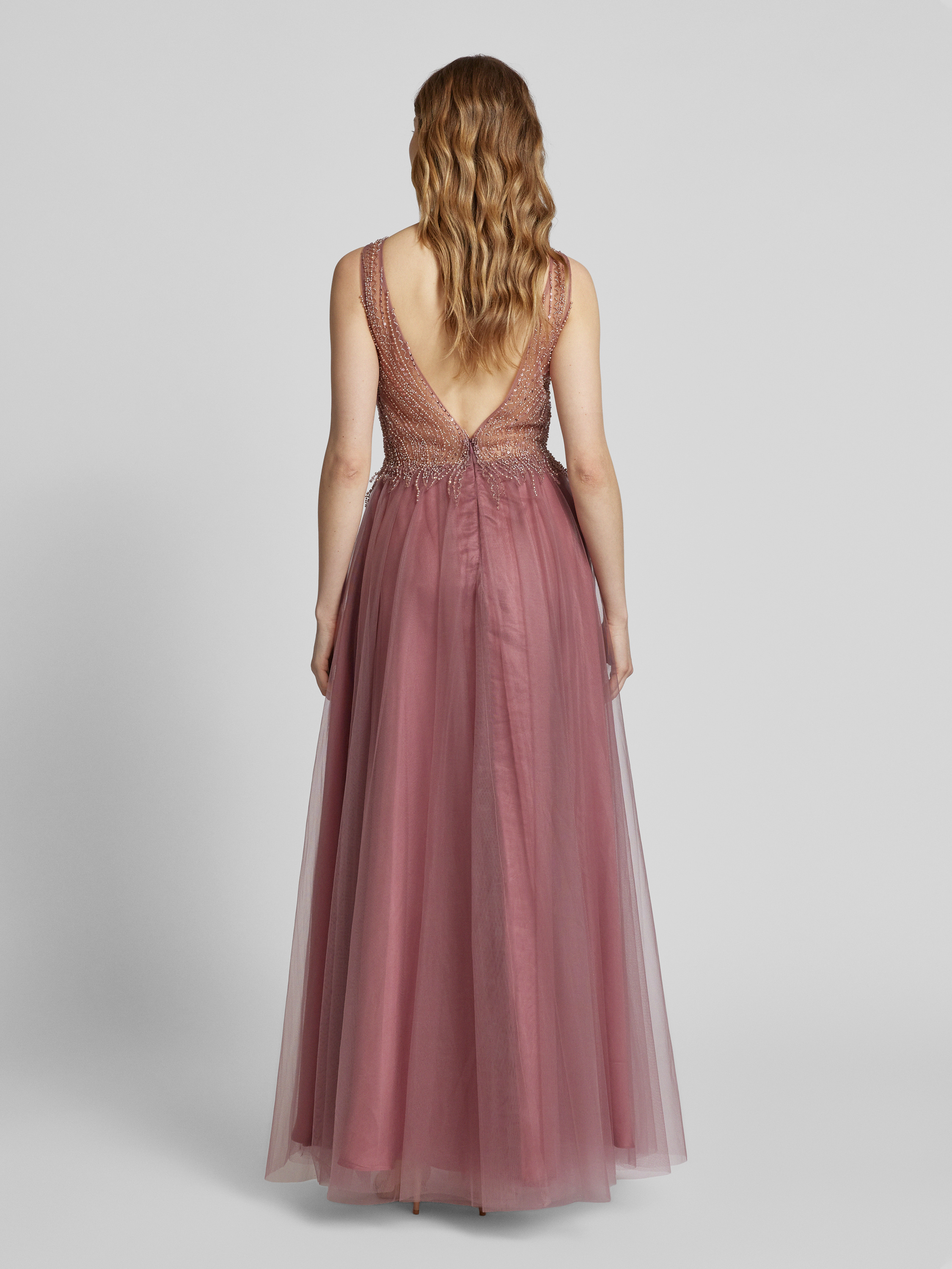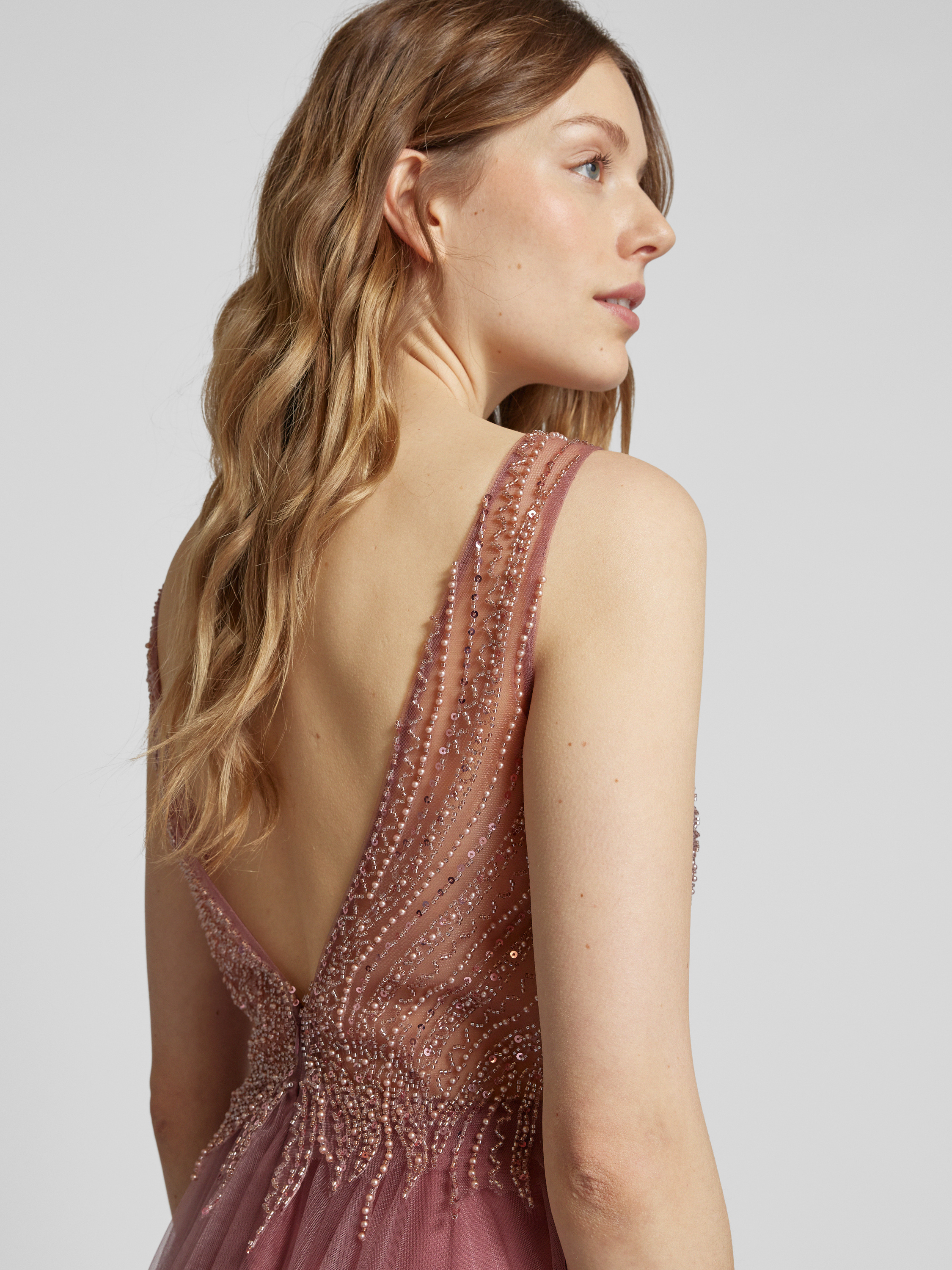 Sukienka wieczorowa z obszyciem ozdobnymi kamieniami i cekinami - brudnoróżowy