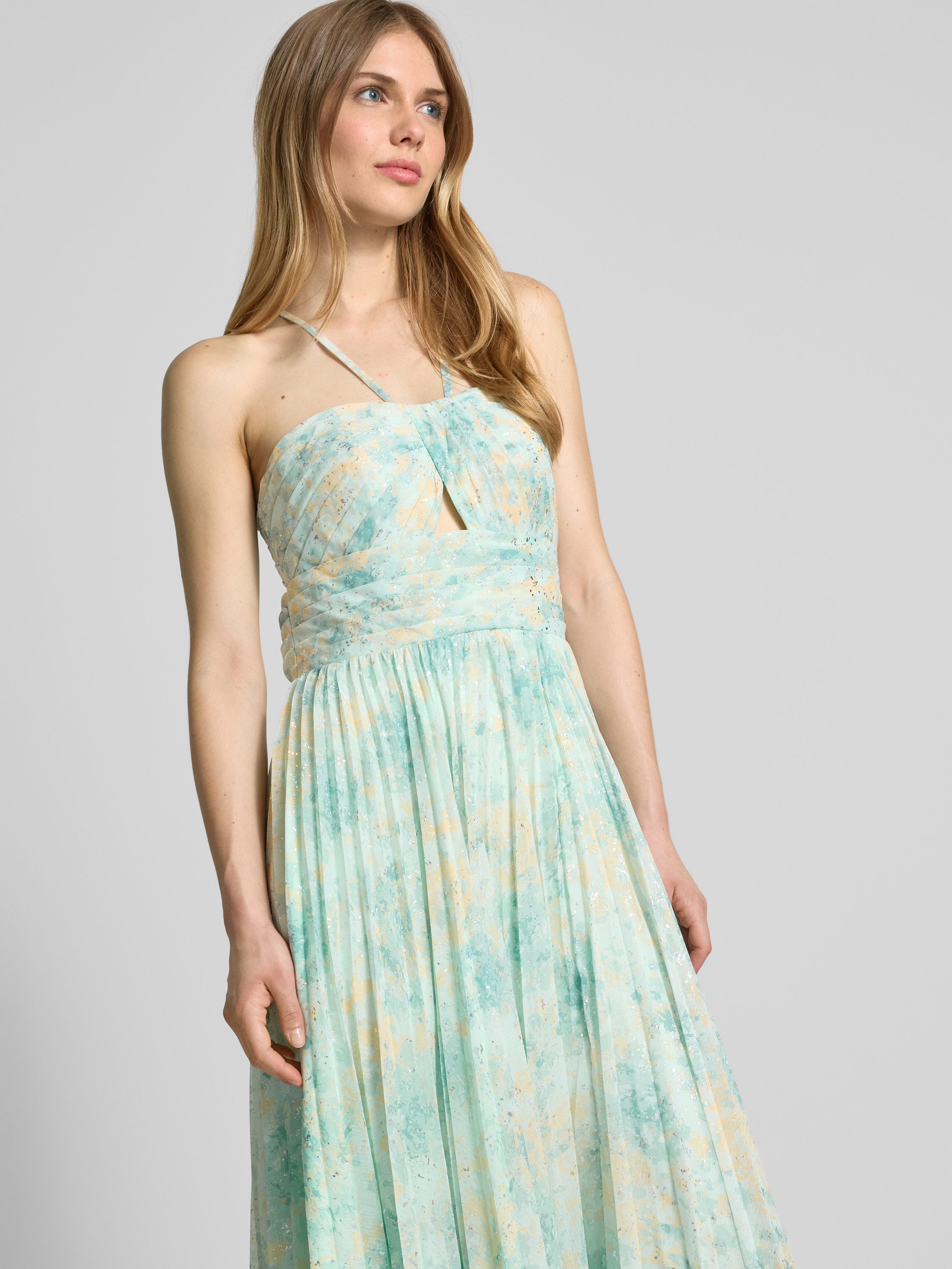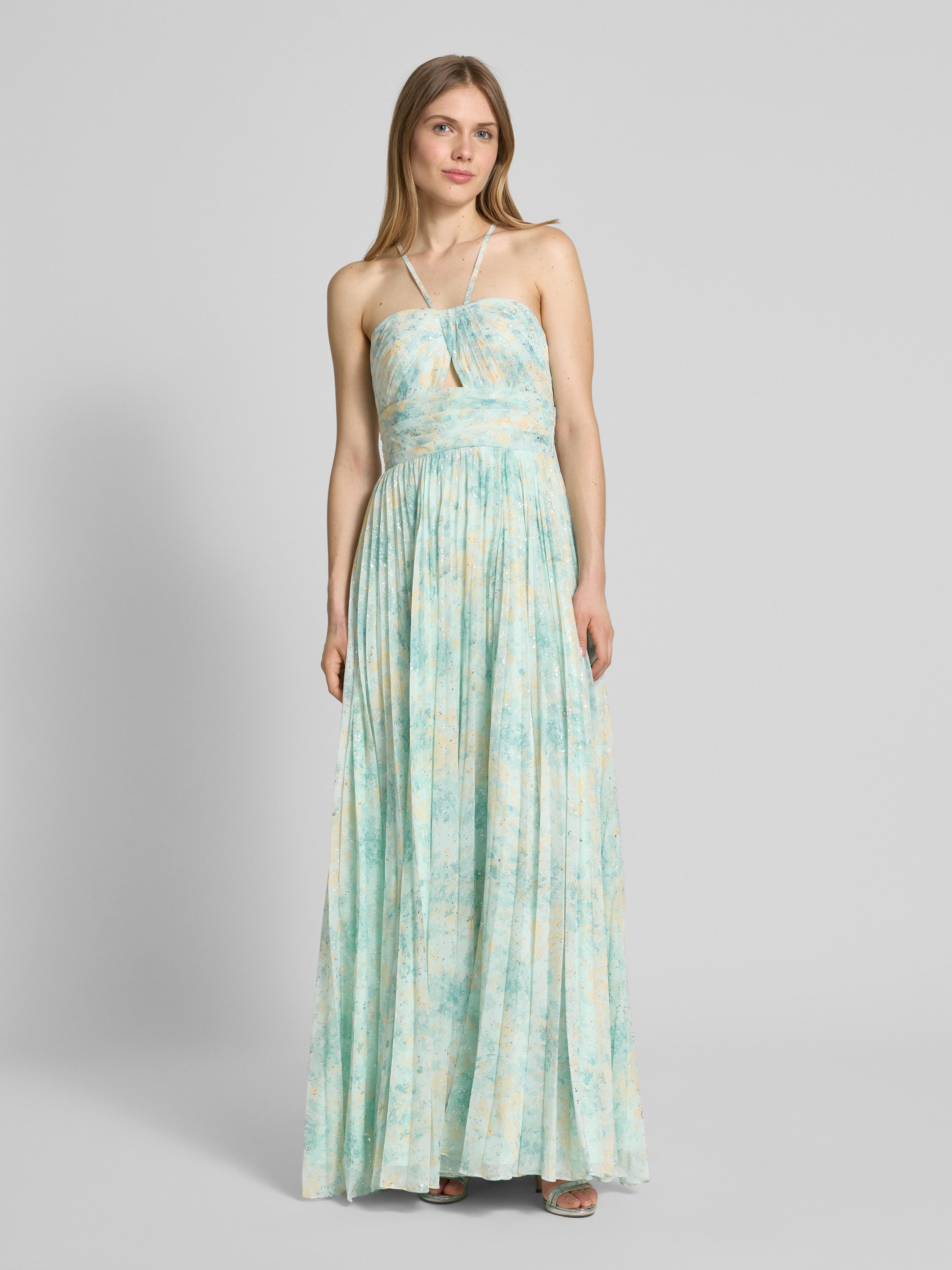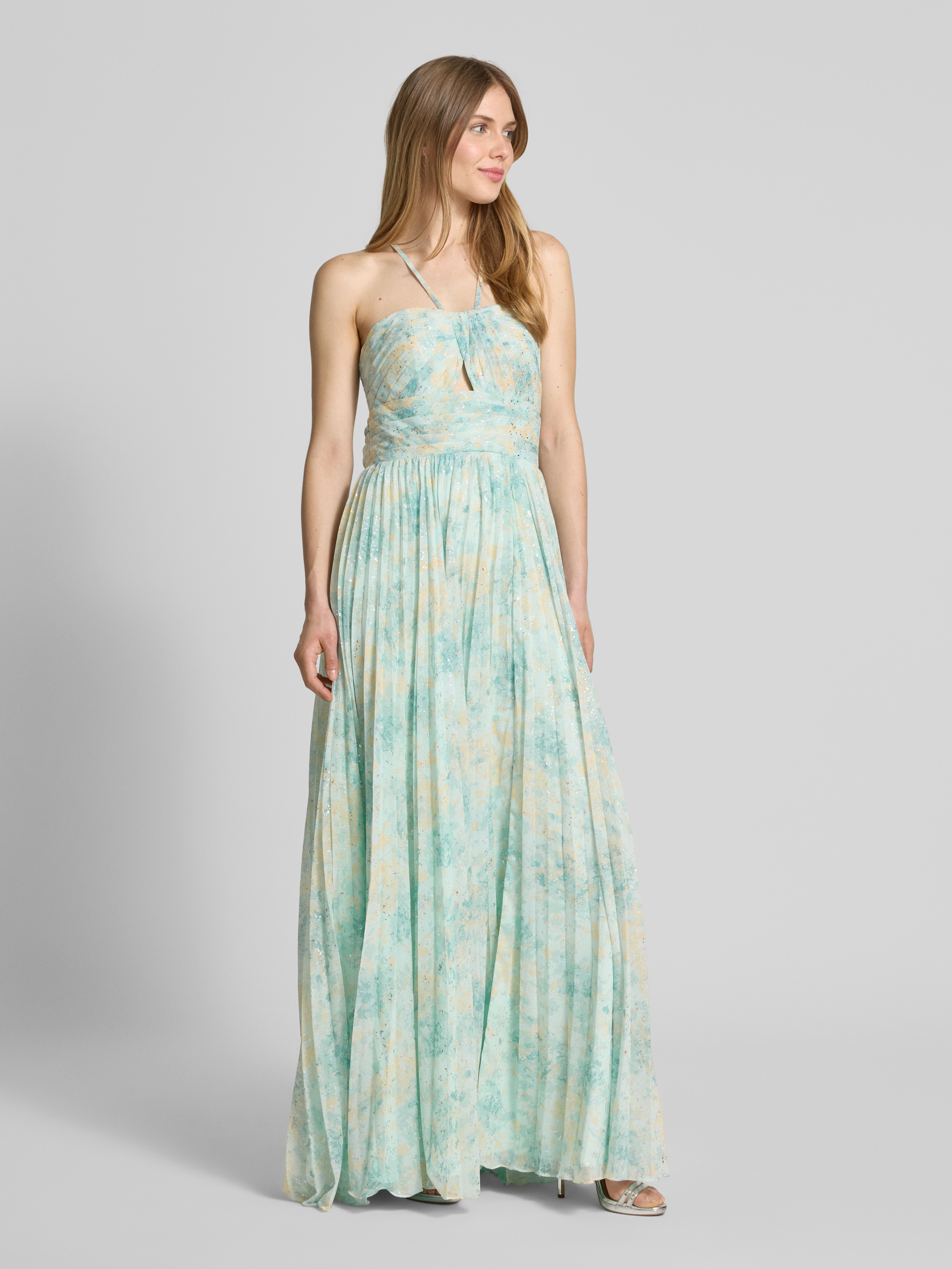 Sukienka wieczorowa z wycięciami i dekoltem w kształcie serca - miętowy